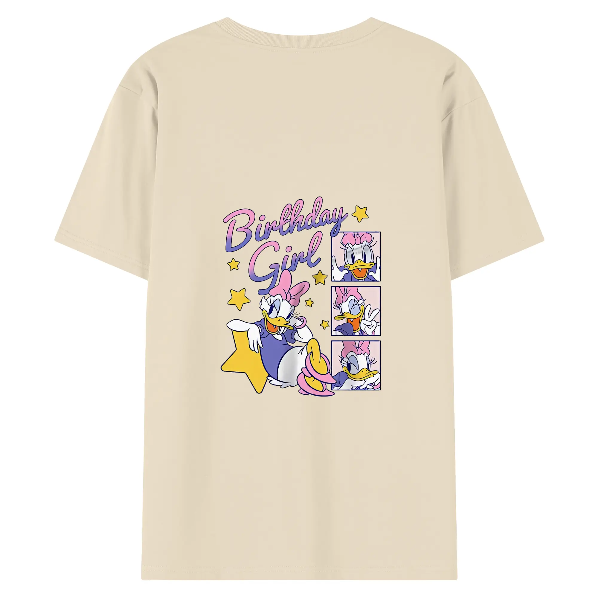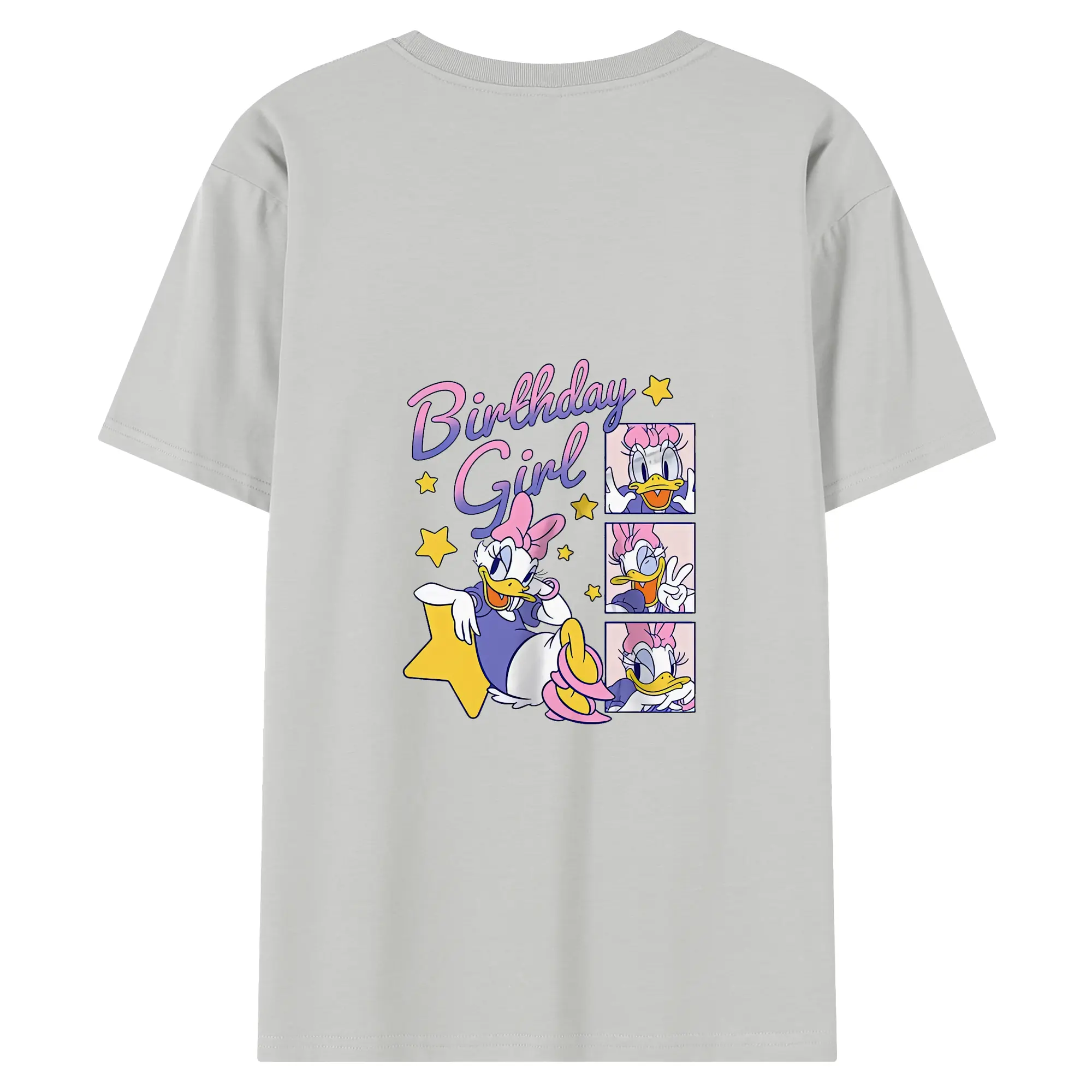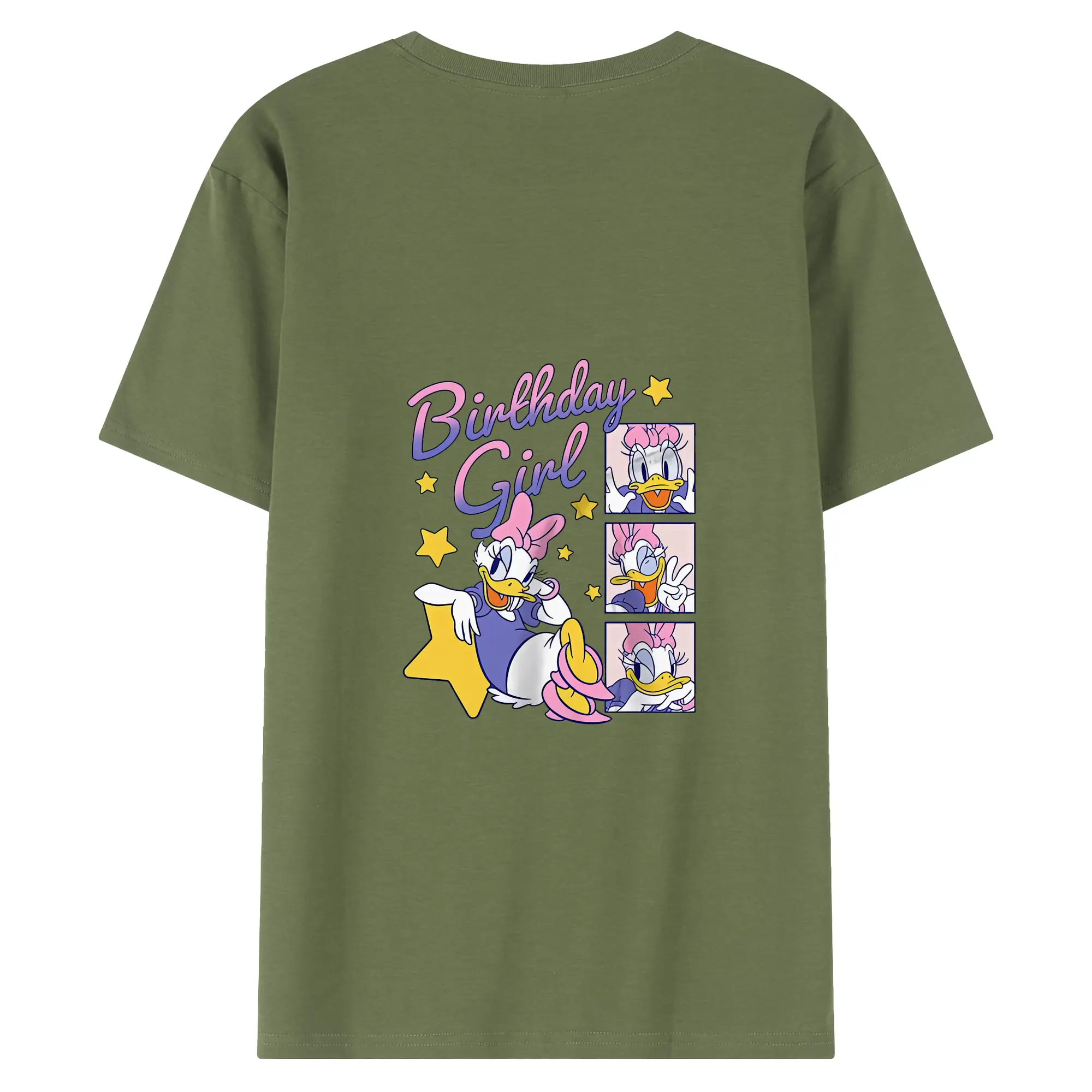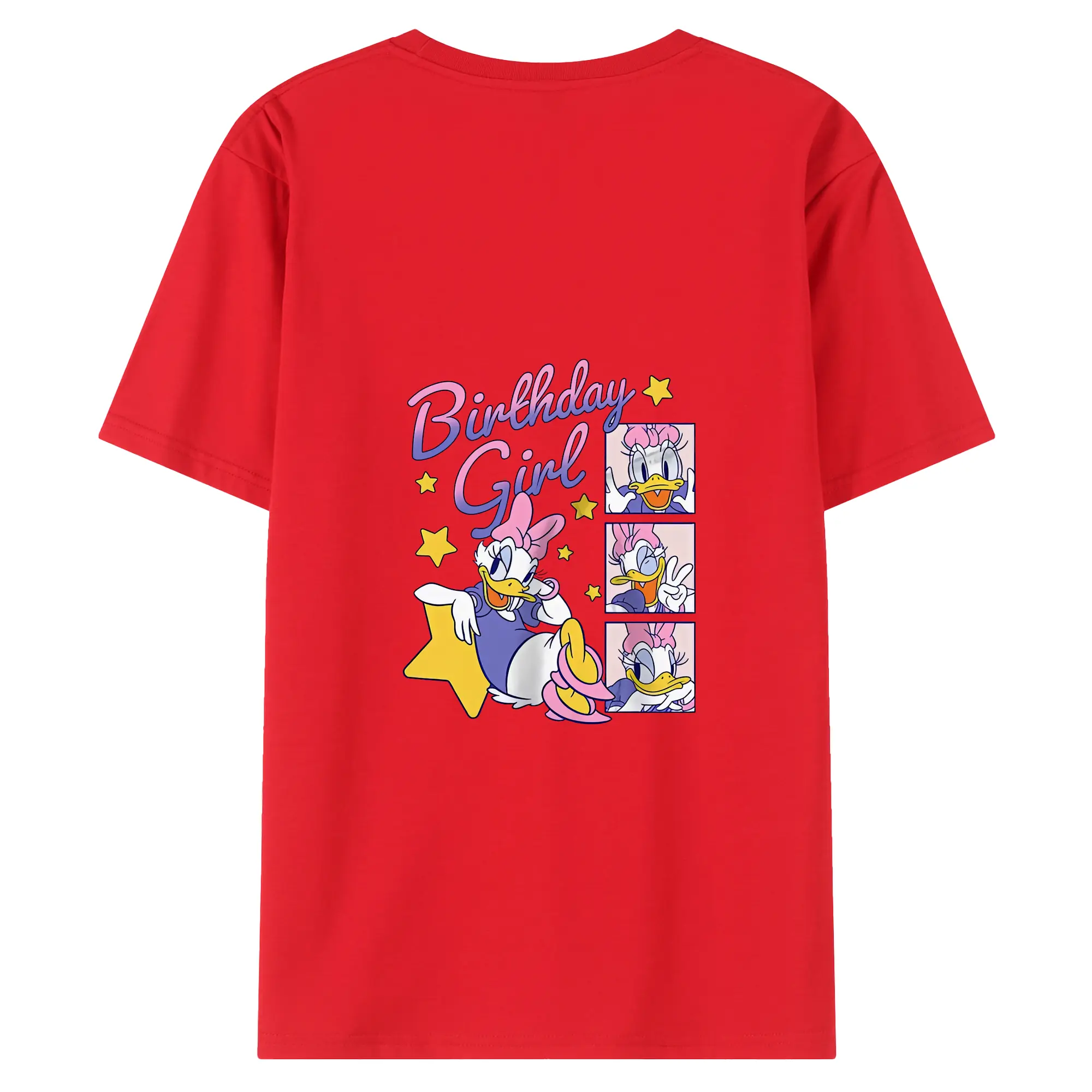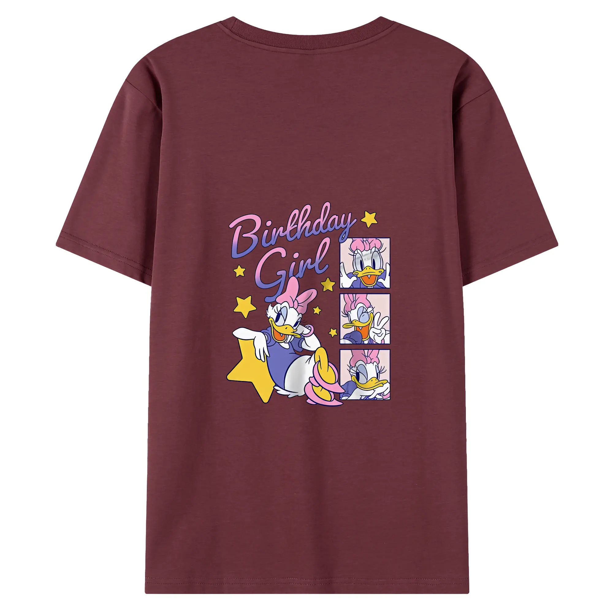 ミッキーマウス(Mickey Mouse) グッズ デイジーダック(Daisy Duck) - 綿100% 半袖Tシャツ ・ フロントプリント ・ 快適 通気性 ・ 日常使い 散歩 スポーツ用