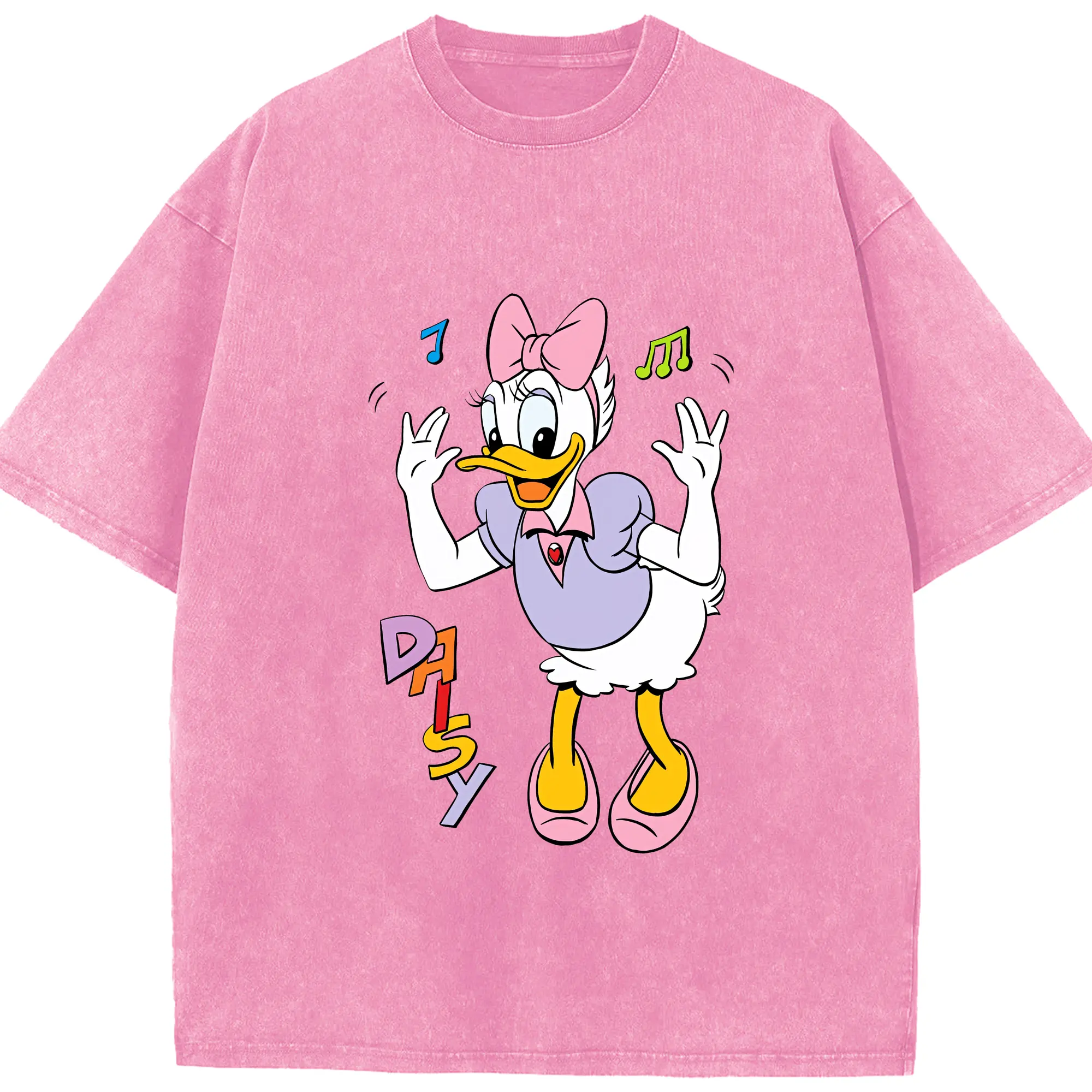 ミッキーマウス(Mickey Mouse) グッズ デイジーダック(Daisy Duck) - 綿100% 半袖Tシャツ ・ フロントプリント ・ 快適 通気性 ・ 日常使い 散歩 スポーツ用