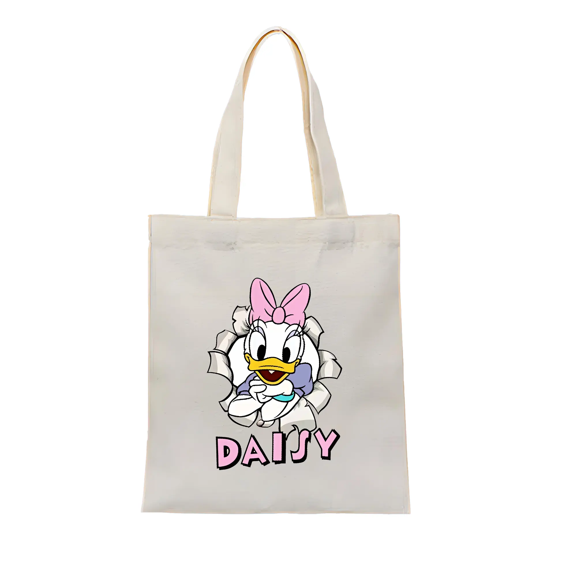 ミッキーマウス(Mickey Mouse) グッズ デイジーダック(Daisy Duck) - 縦型キャンバス手提げバッグ(トートバッグ) ・ キャンバス素材 ・ ショッピング用 ・ 軽量 丈夫 お手入れ簡単