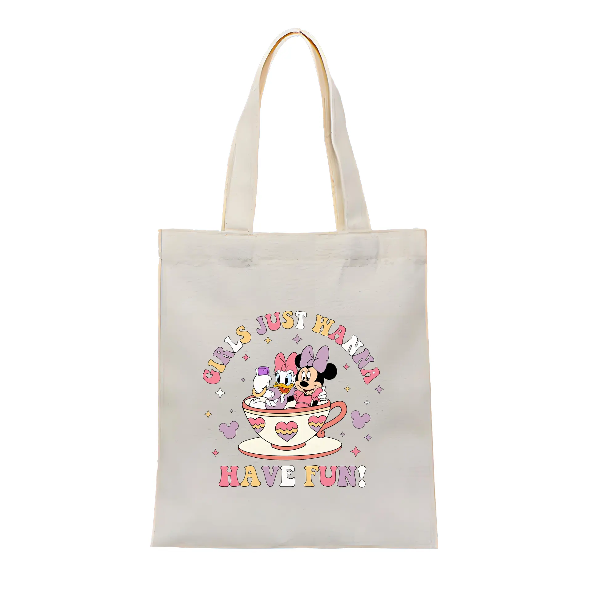 ミッキーマウス(Mickey Mouse) グッズ デイジーダック(Daisy Duck) - 縦型キャンバス手提げバッグ(トートバッグ) ・ キャンバス素材 ・ ショッピング用 ・ 軽量 丈夫 お手入れ簡単