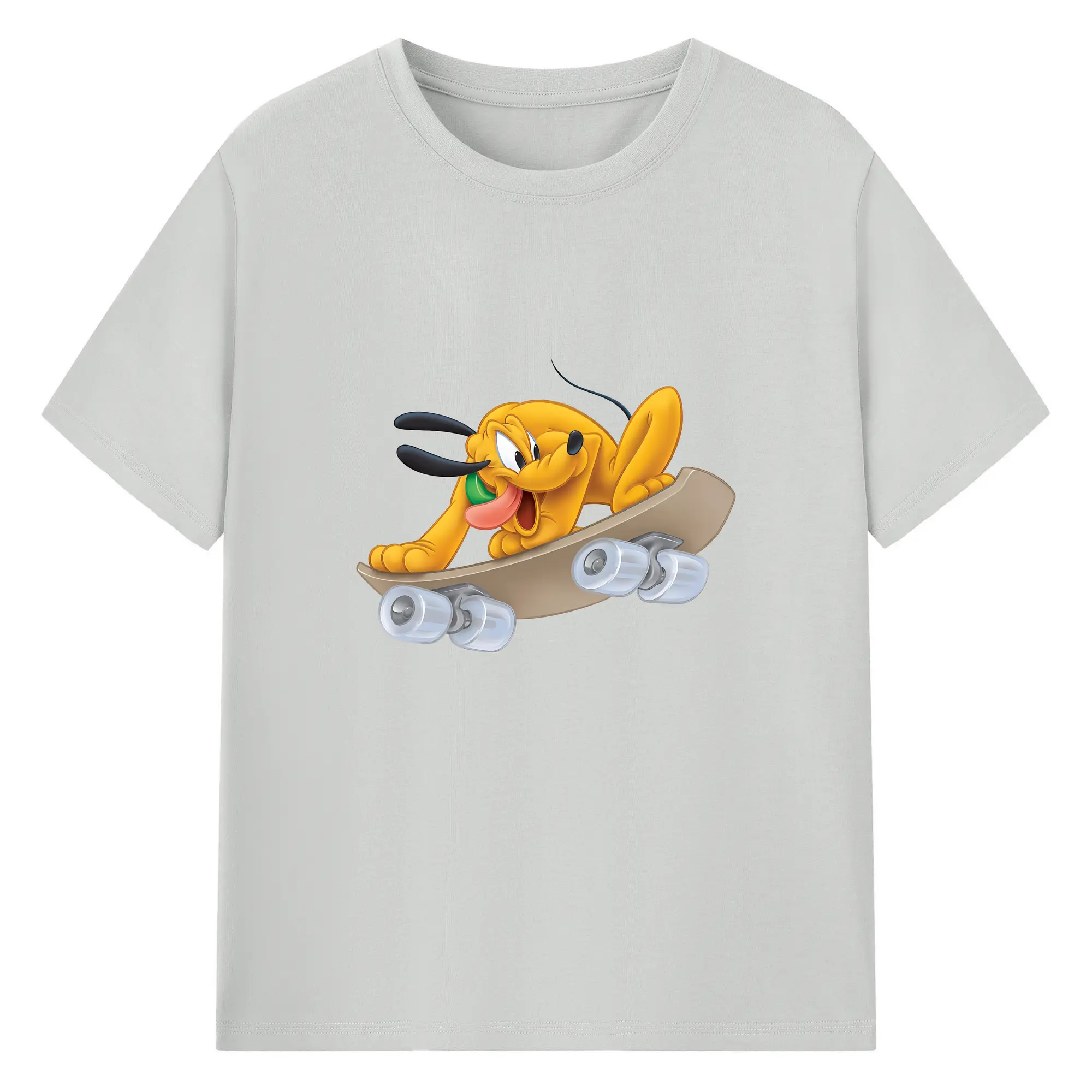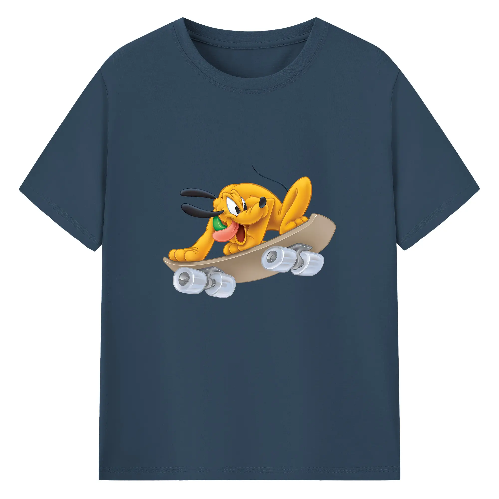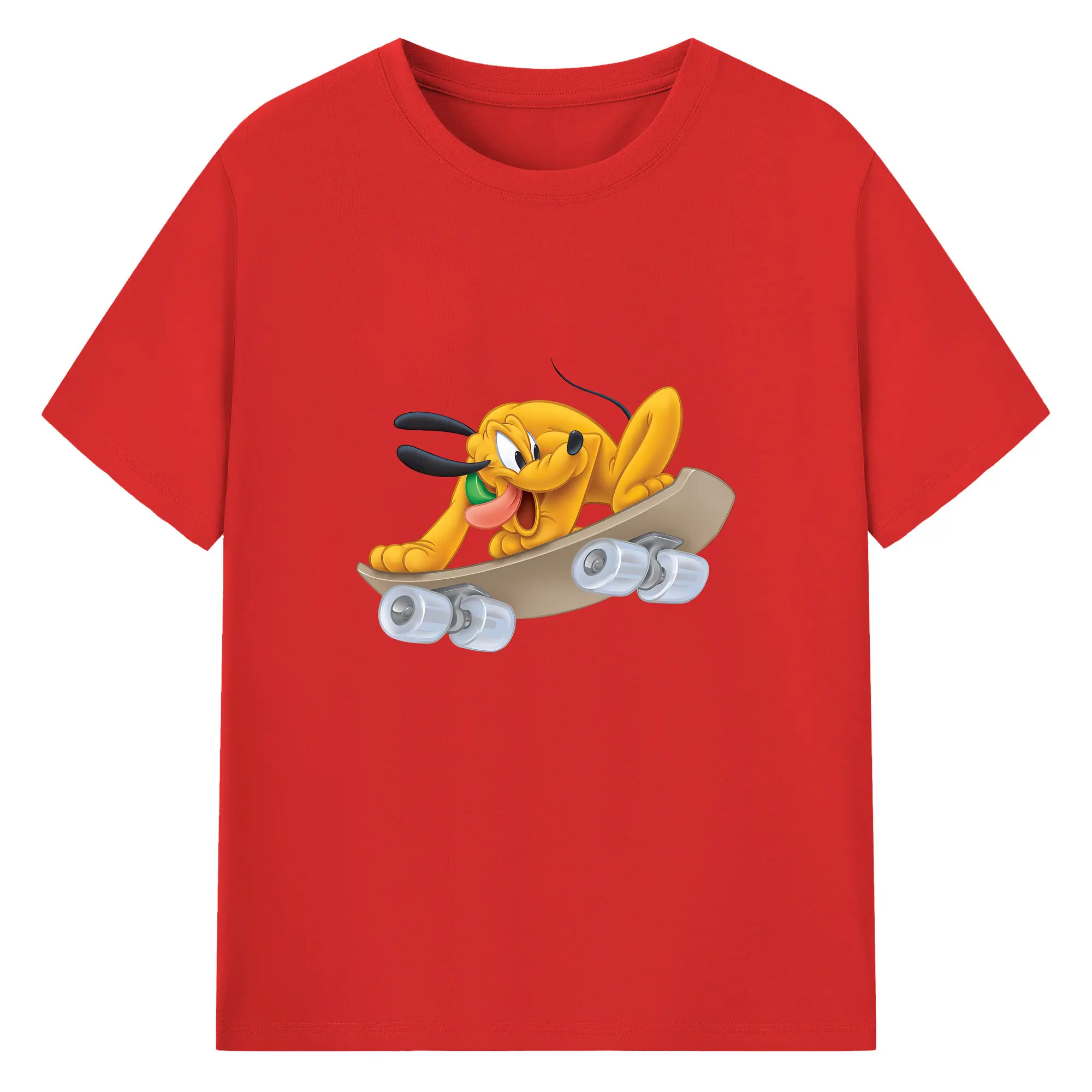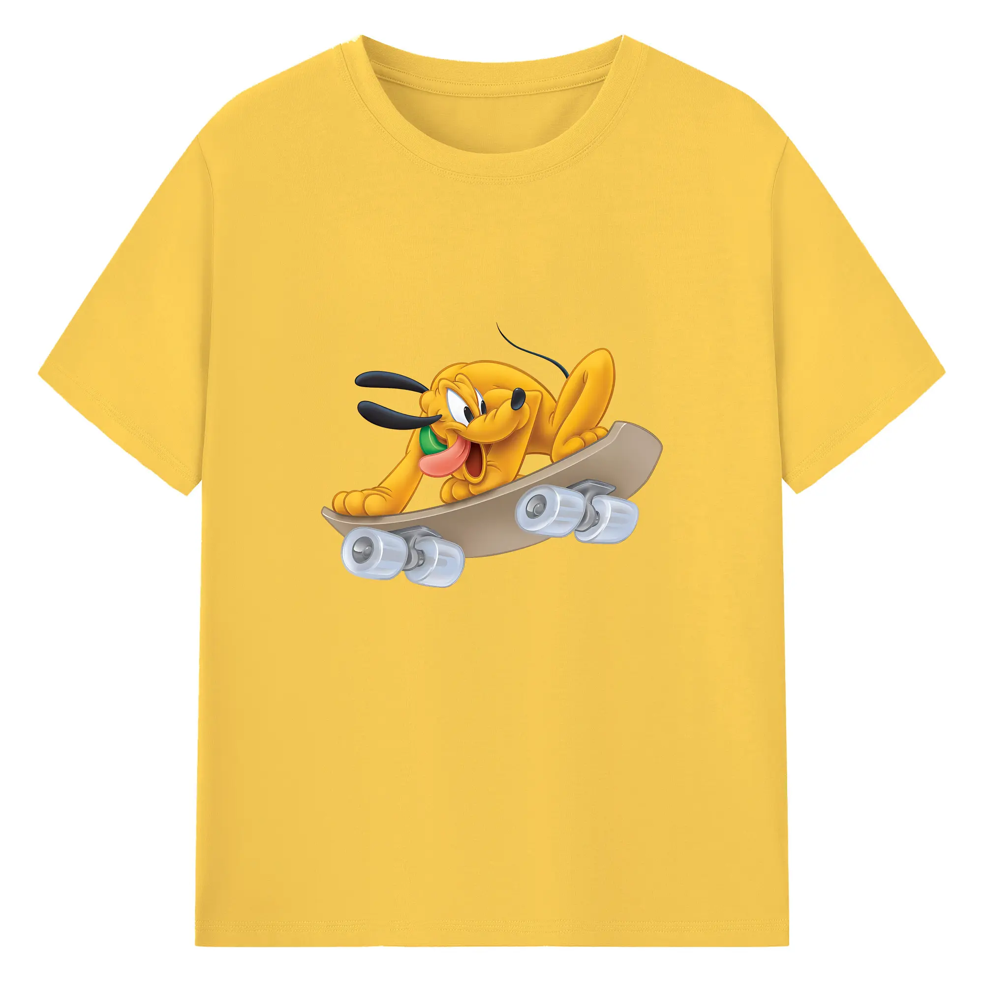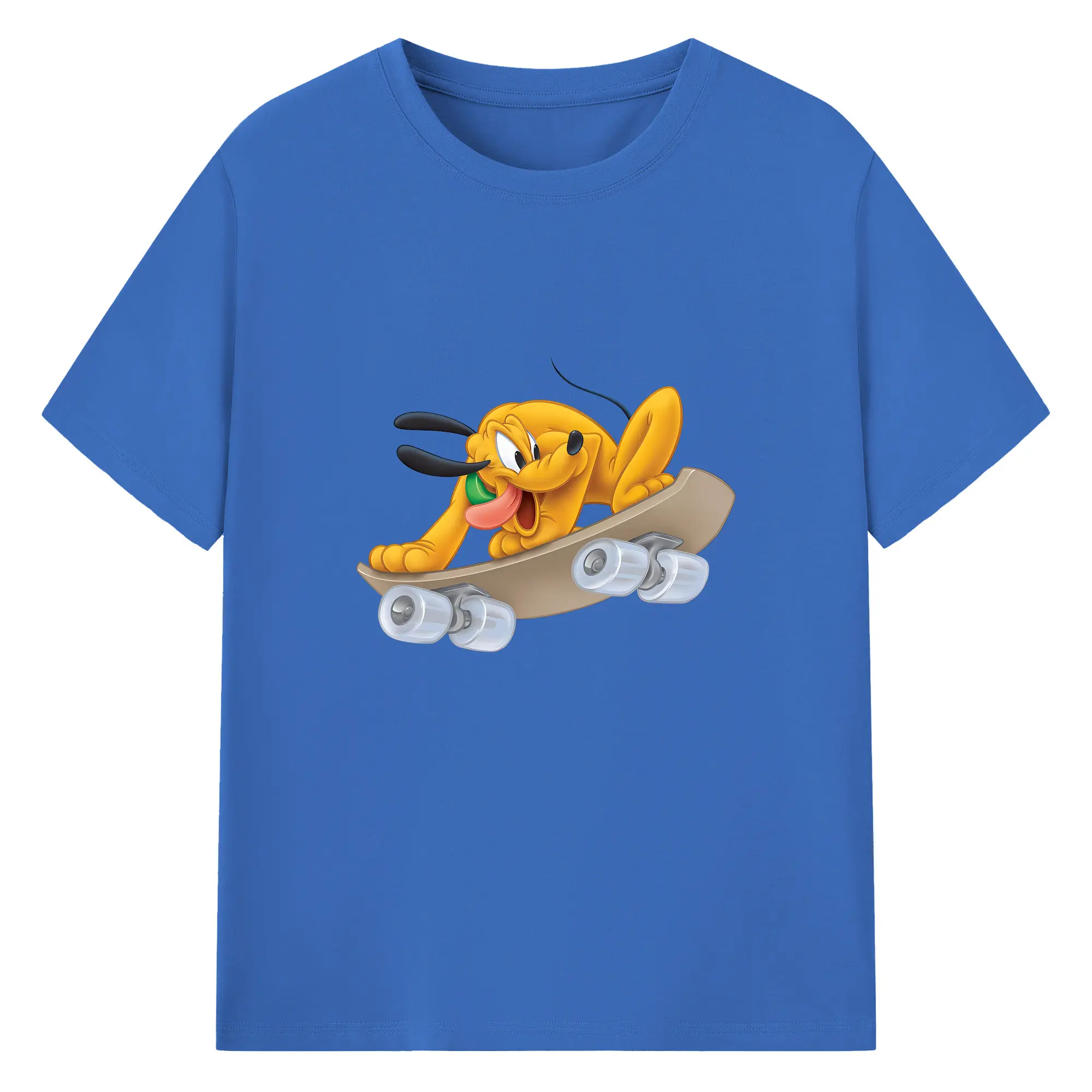 ミッキーマウス(Mickey Mouse) グッズ プルート(Pluto) - 綿100% 半袖Tシャツ ・ バックプリント ・ 快適 通気性 ・ 日常使い 散歩 スポーツ用