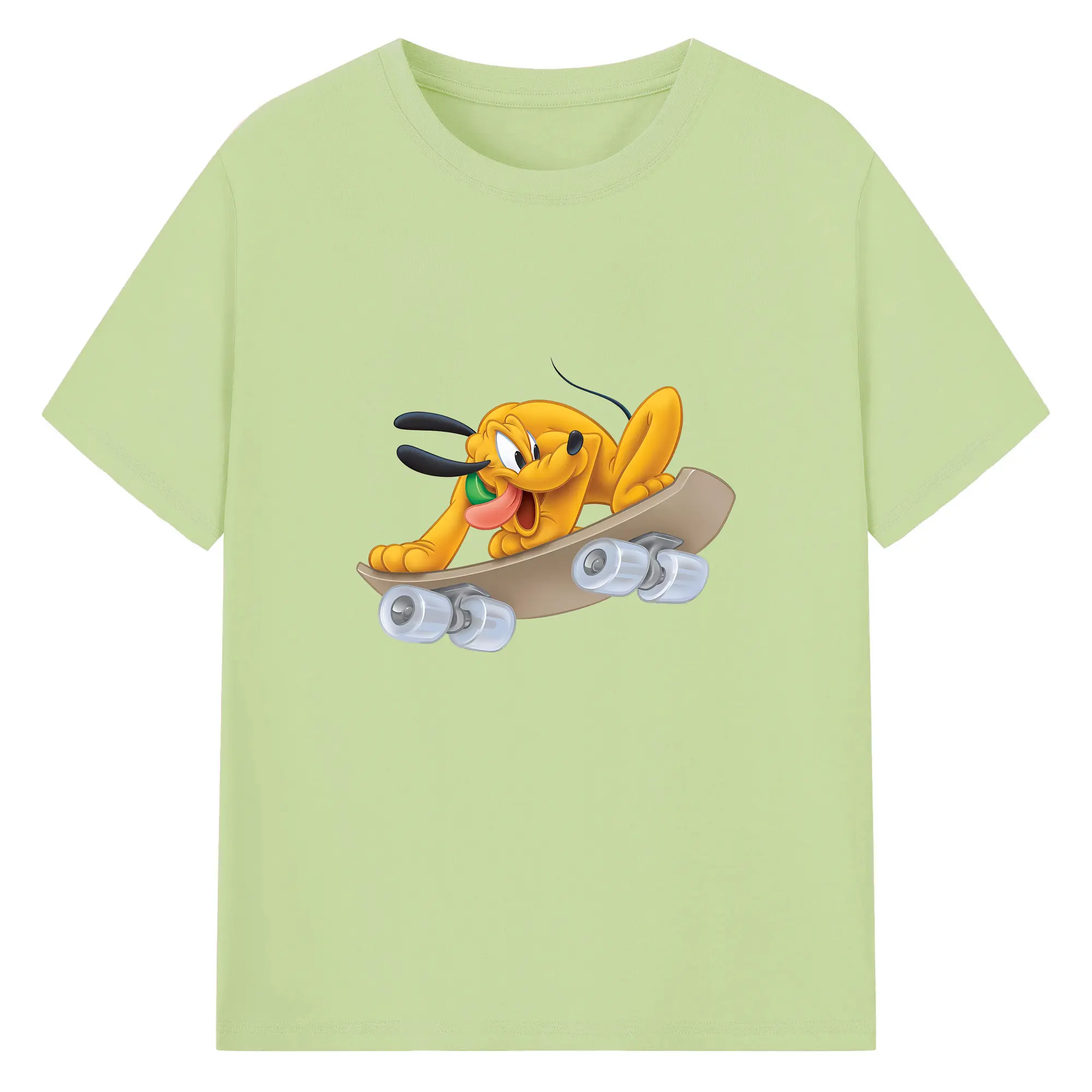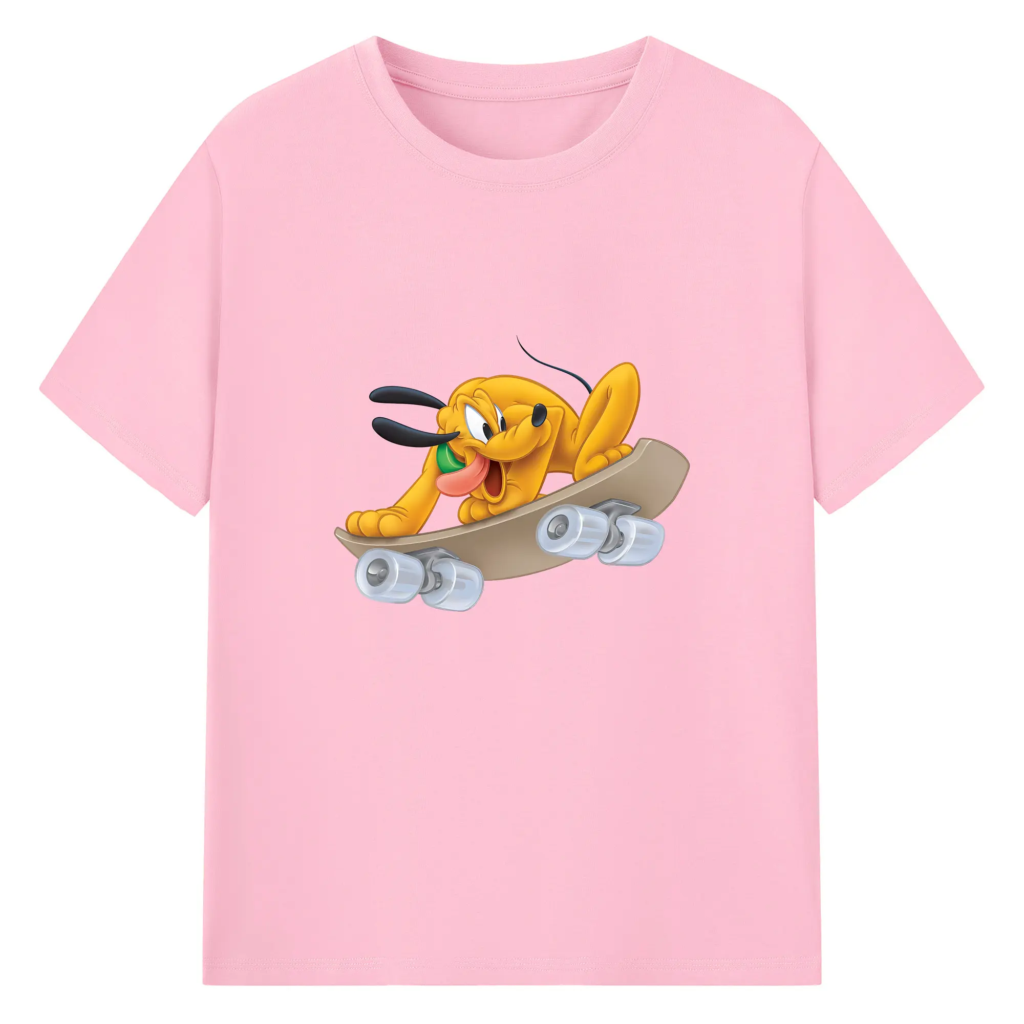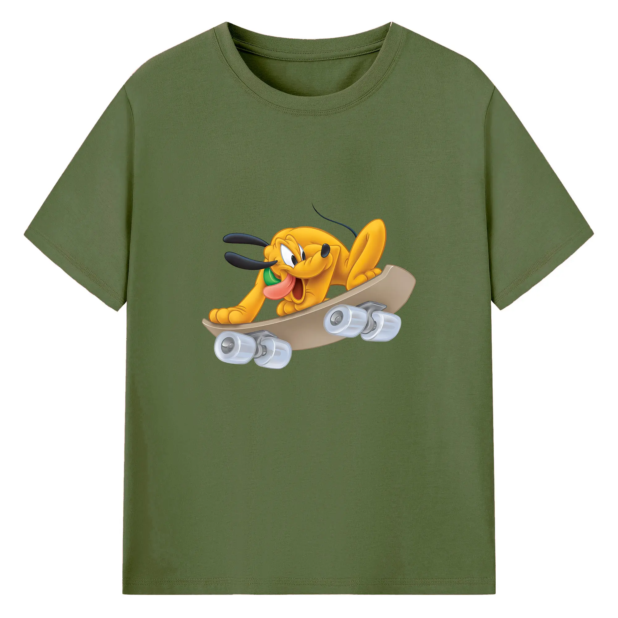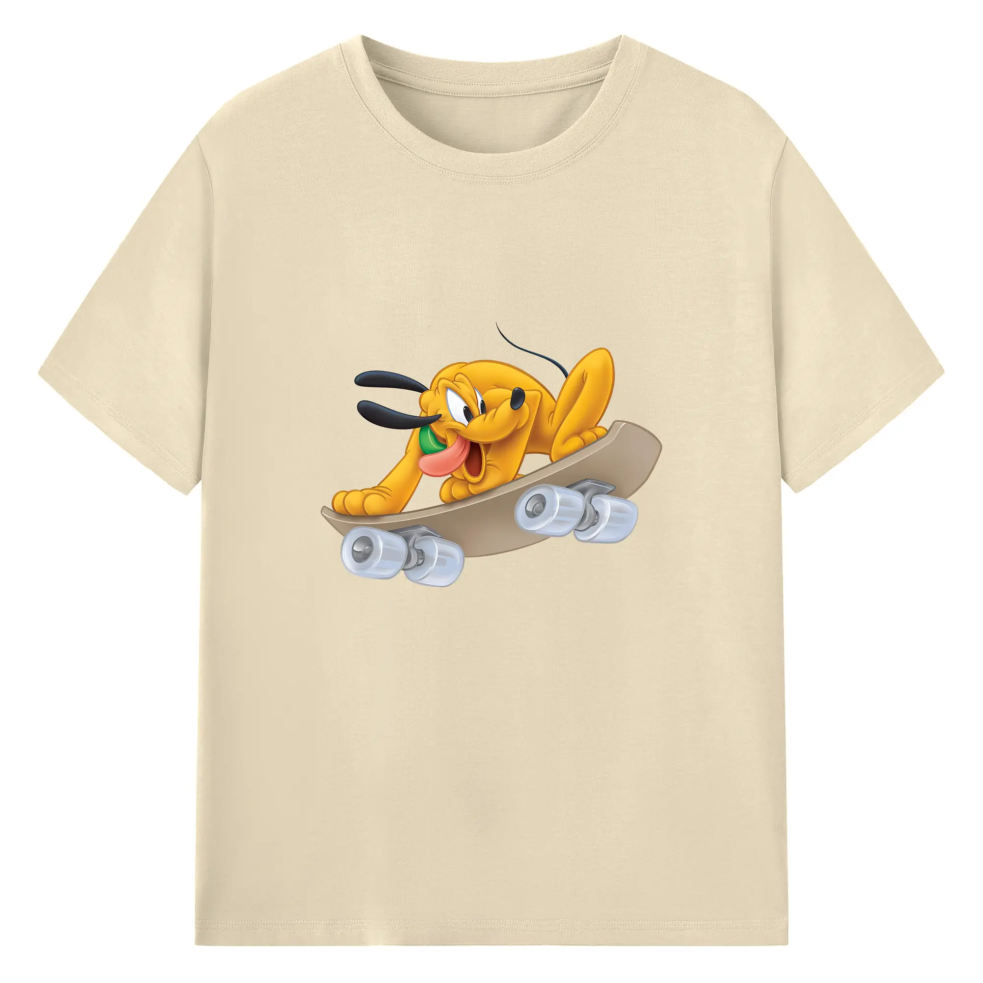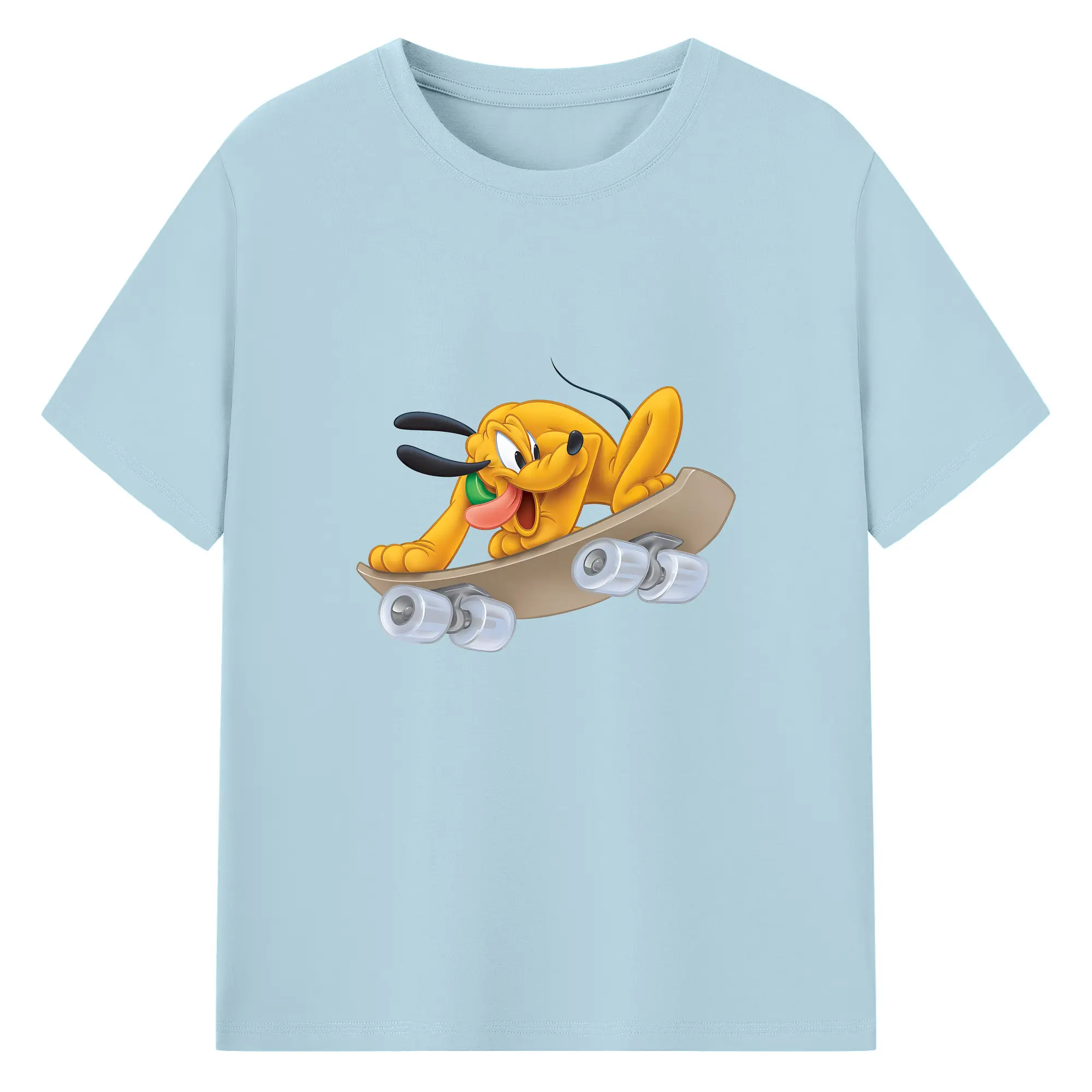 ミッキーマウス(Mickey Mouse) グッズ プルート(Pluto) - 綿100% 半袖Tシャツ ・ バックプリント ・ 快適 通気性 ・ 日常使い 散歩 スポーツ用
