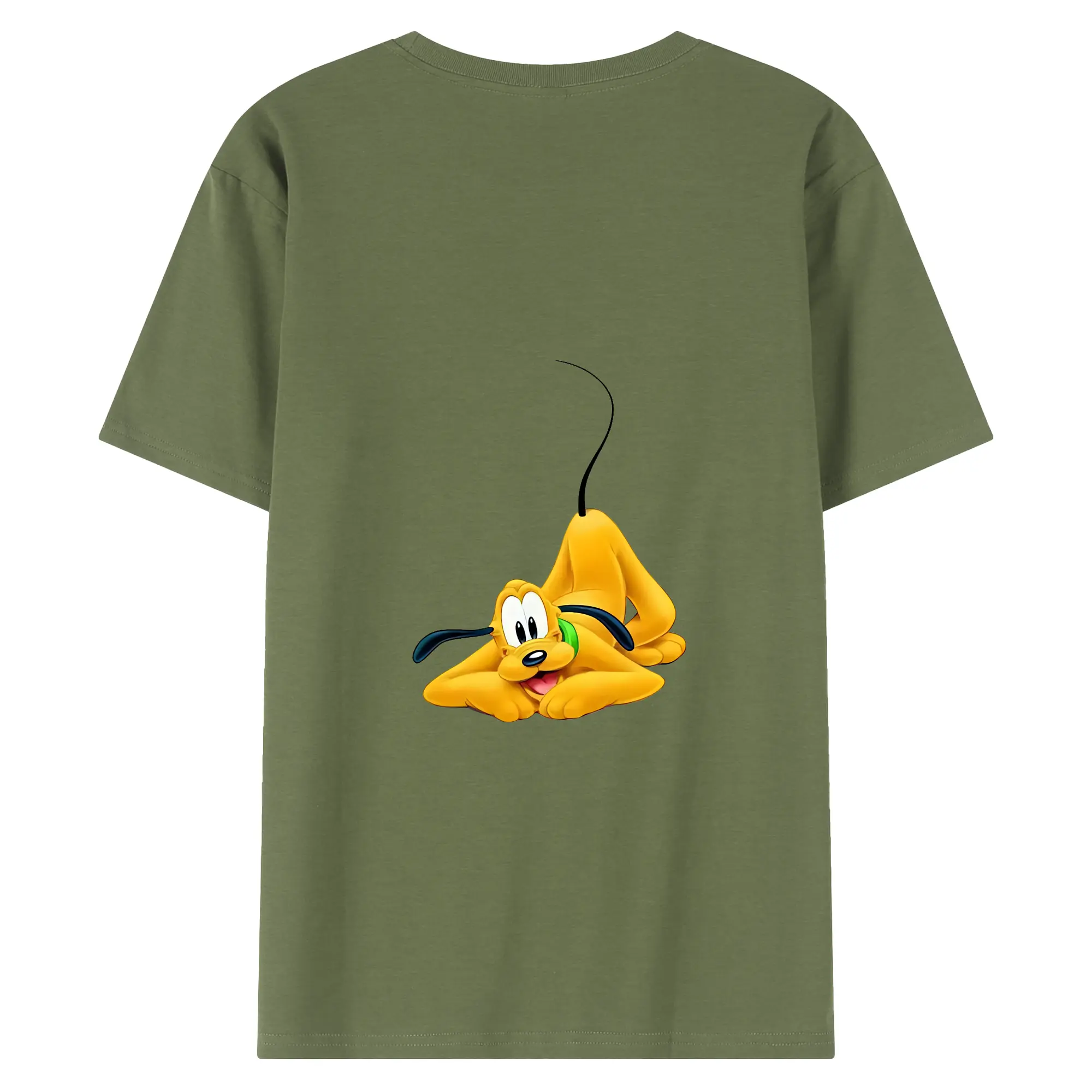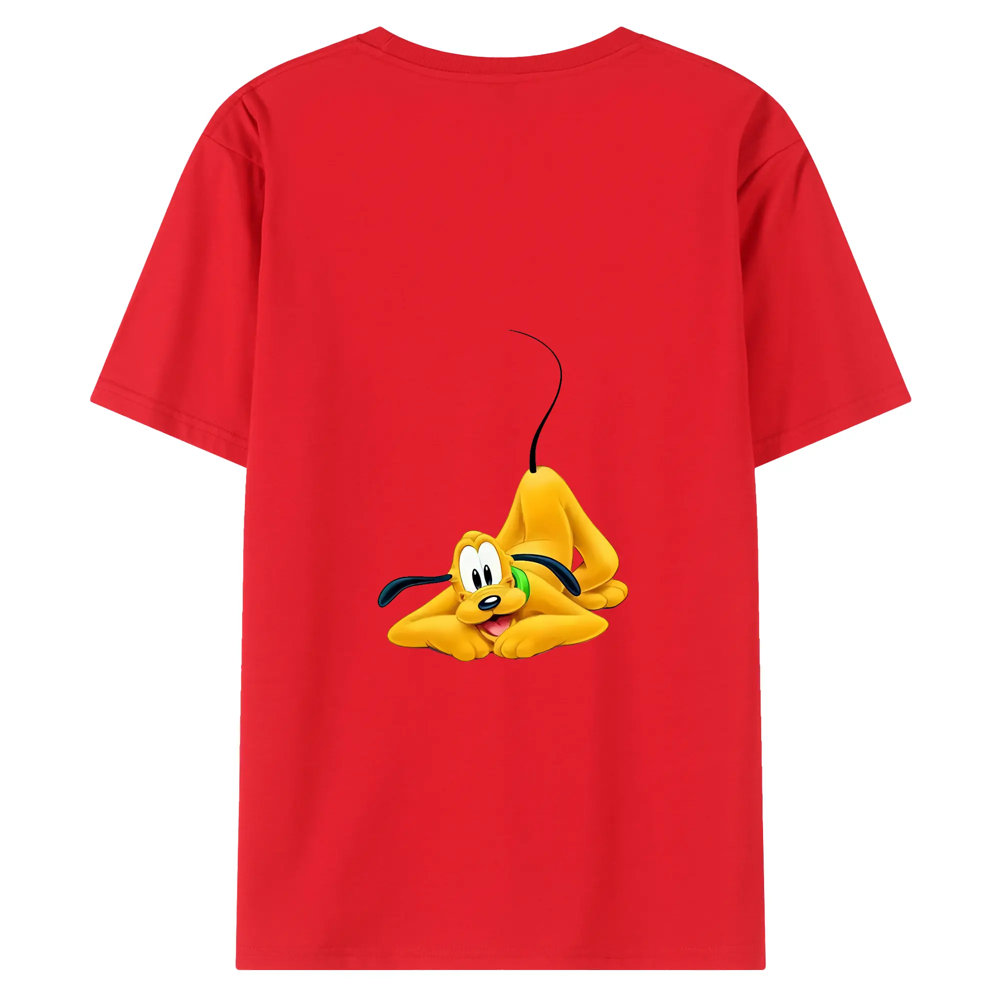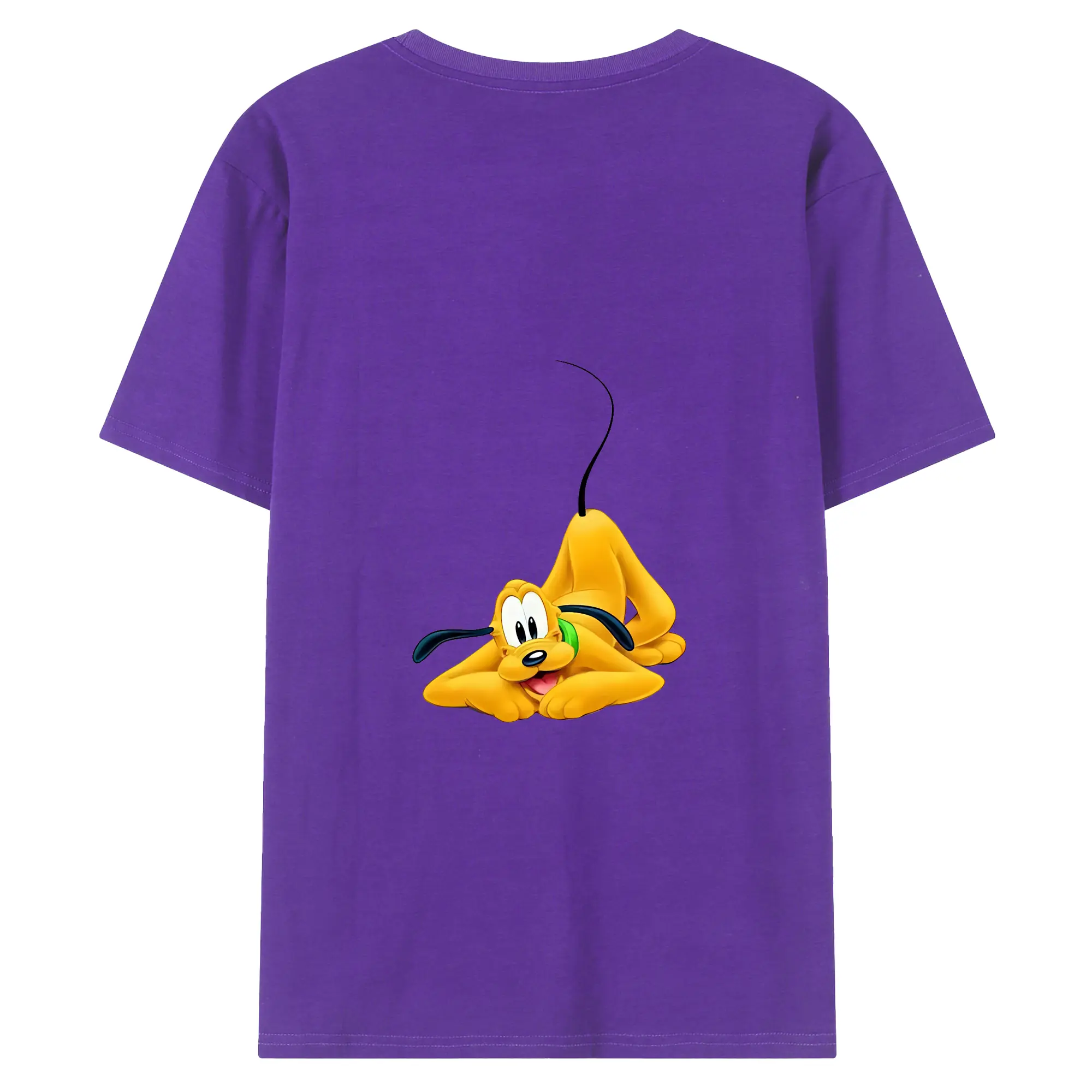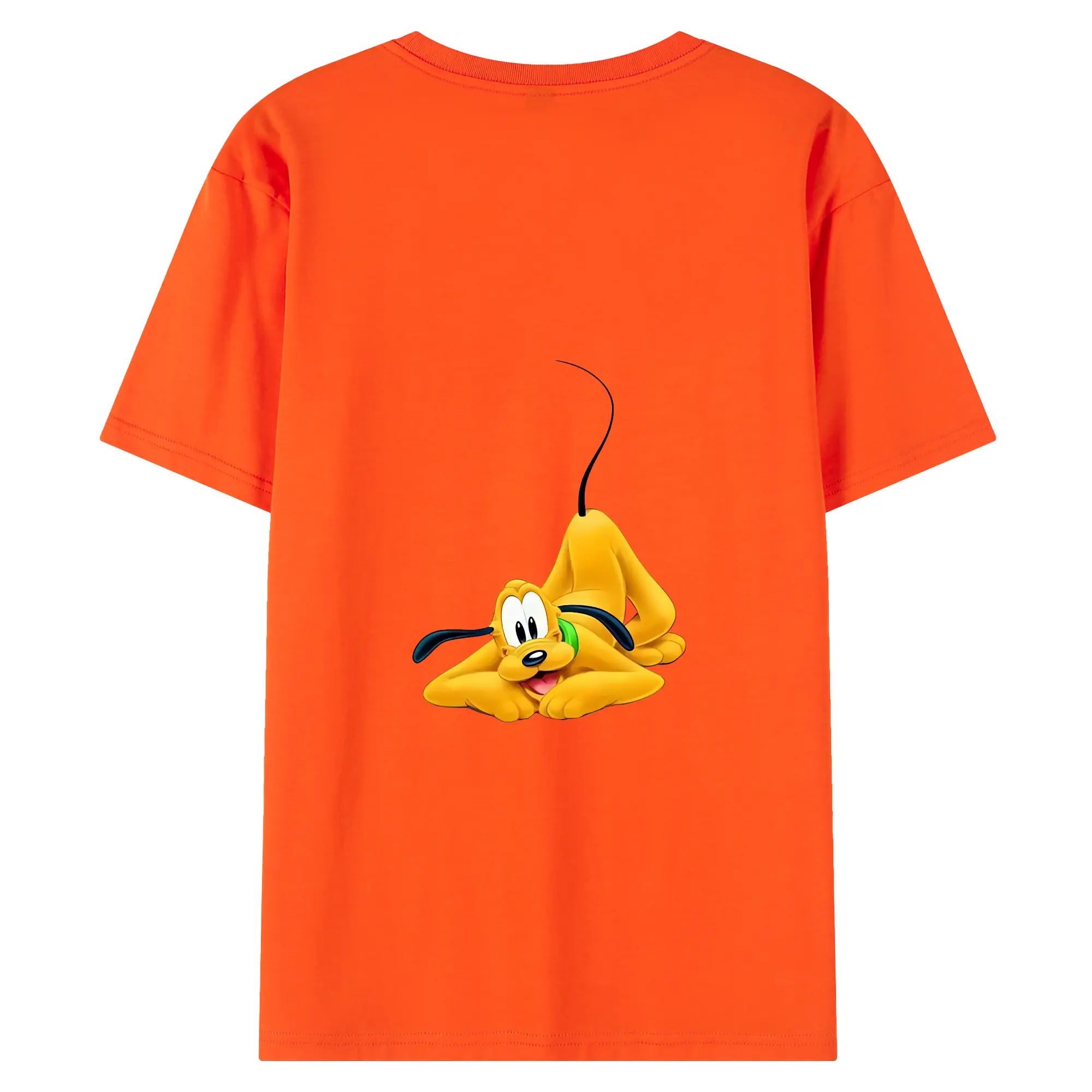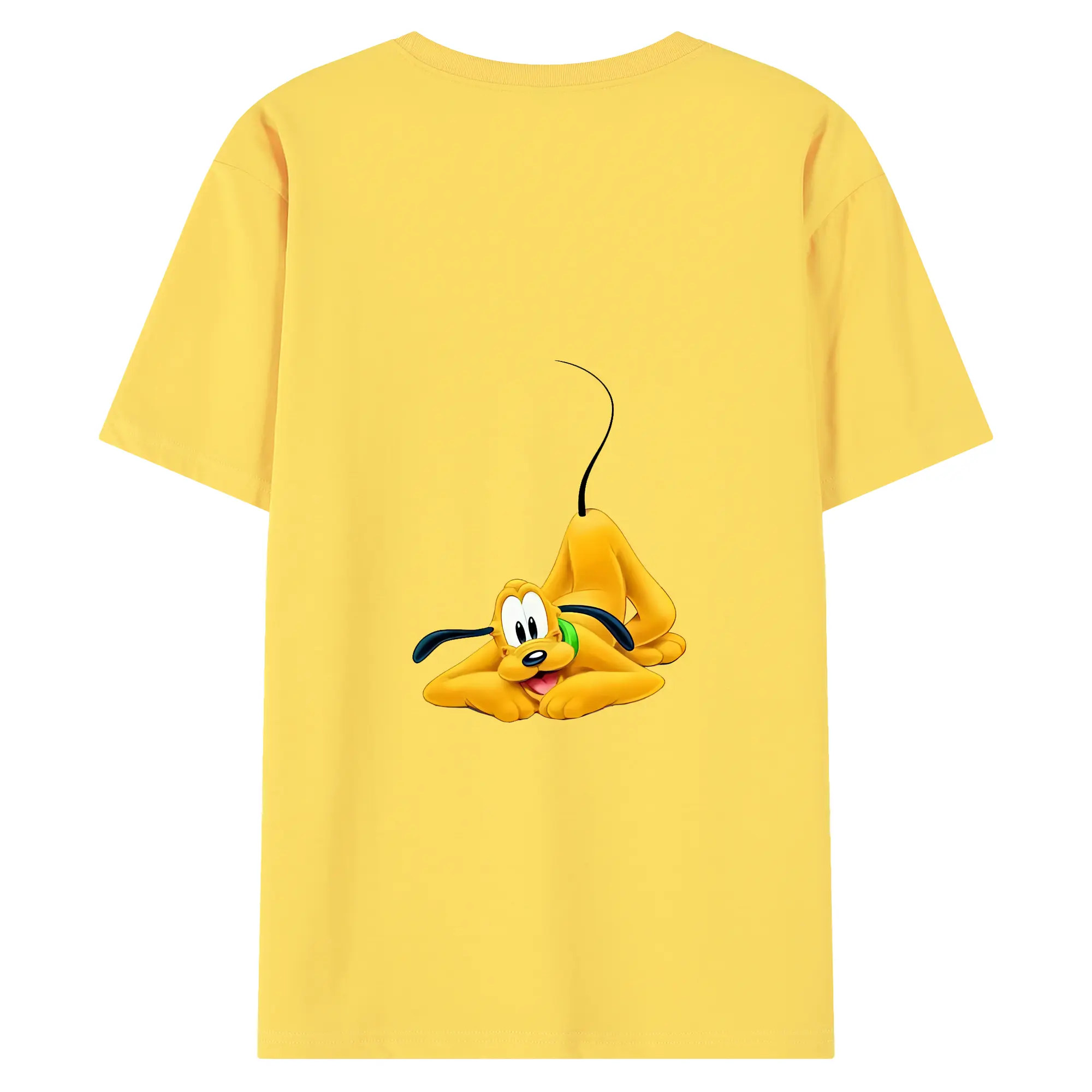 ミッキーマウス(Mickey Mouse) グッズ プルート(Pluto) - 綿100% 半袖Tシャツ ・ フロントプリント ・ 快適 通気性 ・ 日常使い 散歩 スポーツ用