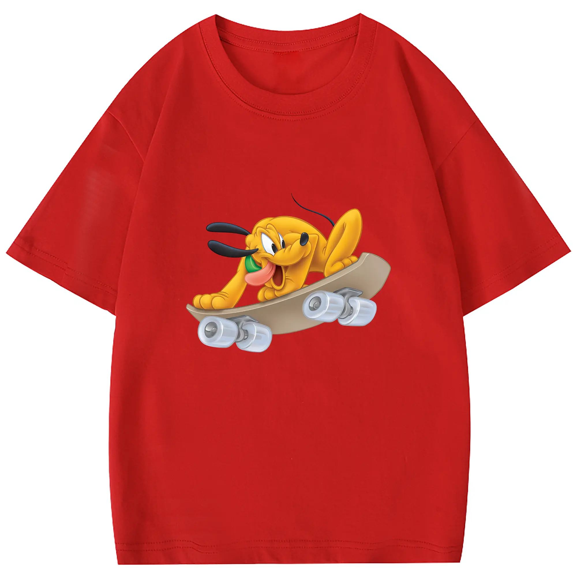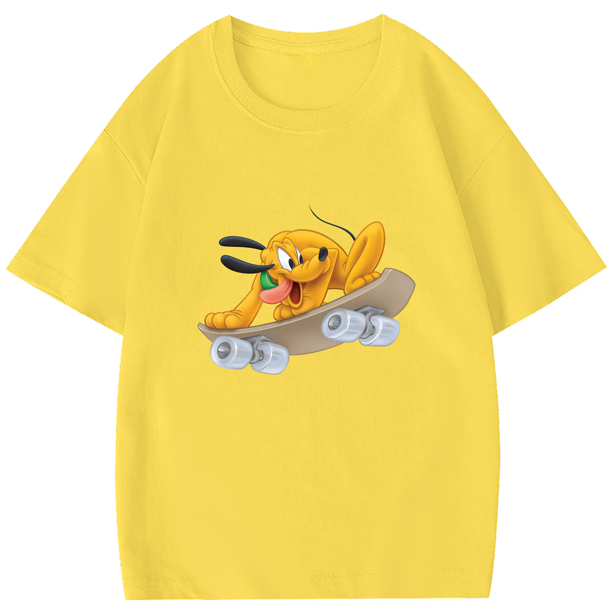 ミッキーマウス(Mickey Mouse) グッズ プルート(Pluto) - 綿100% 半袖Tシャツ ・ フロントプリント ・ 快適 通気性 ・ 日常使い 散歩 スポーツ用