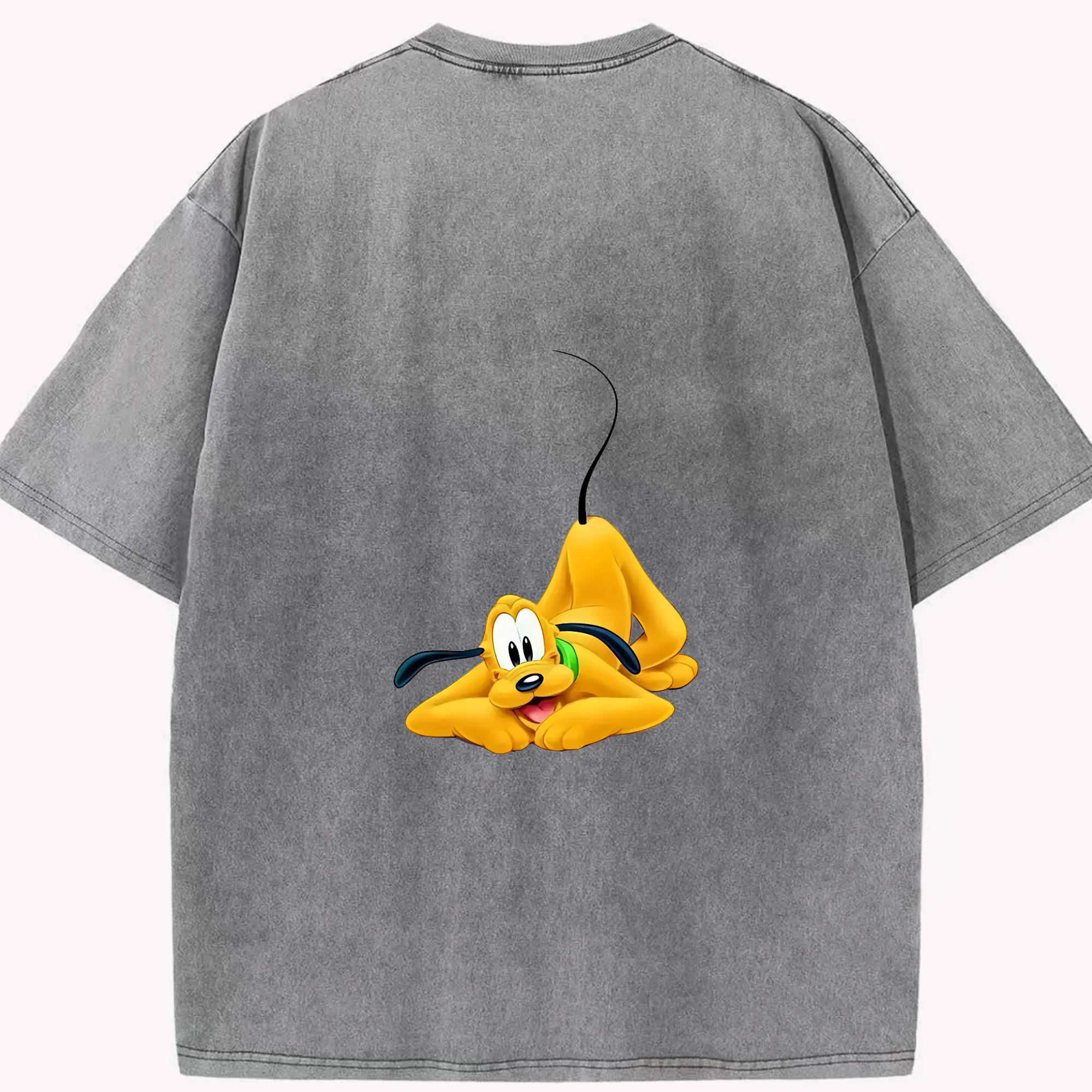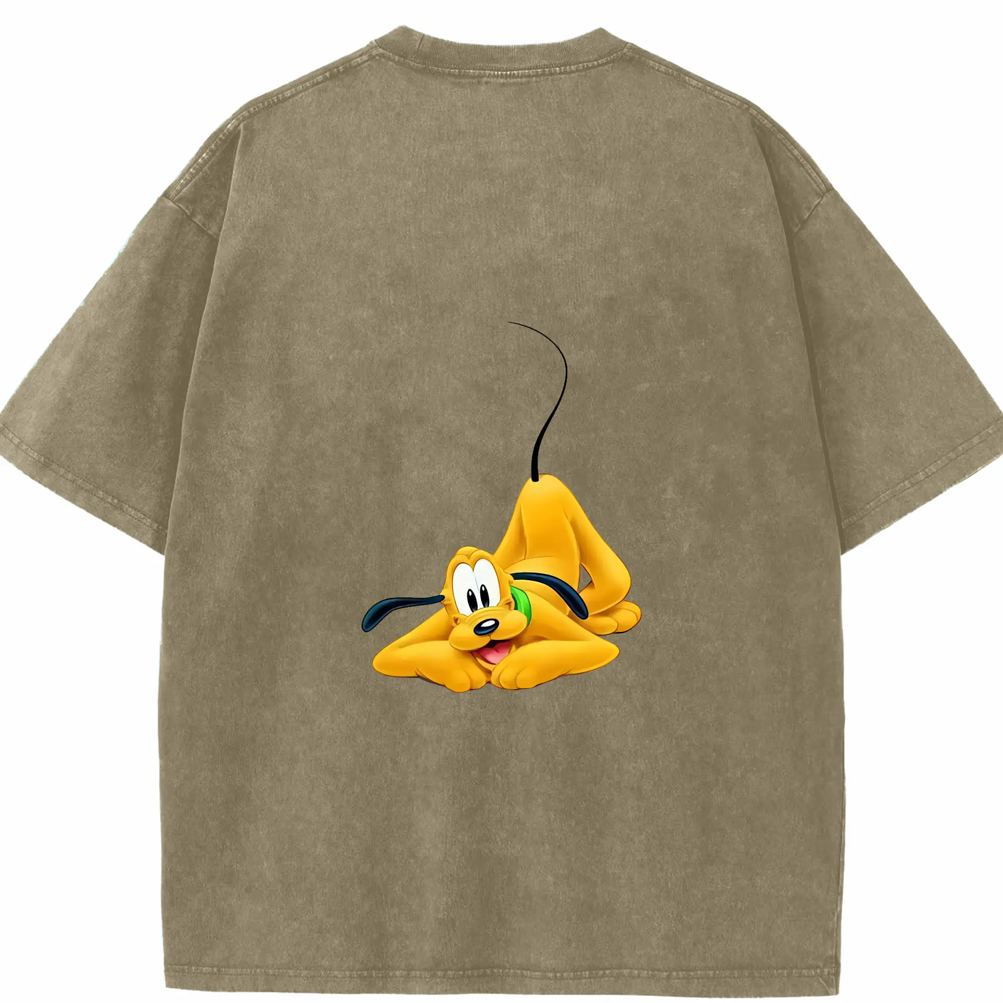 ミッキーマウス(Mickey Mouse) グッズ プルート(Pluto) - 綿100% ヴィンテージ風 半袖Tシャツ ・ フロントプリント ・ 柔らか肌触り ・ 通気性 快適 ・ スポーツ カジュアル 外出用