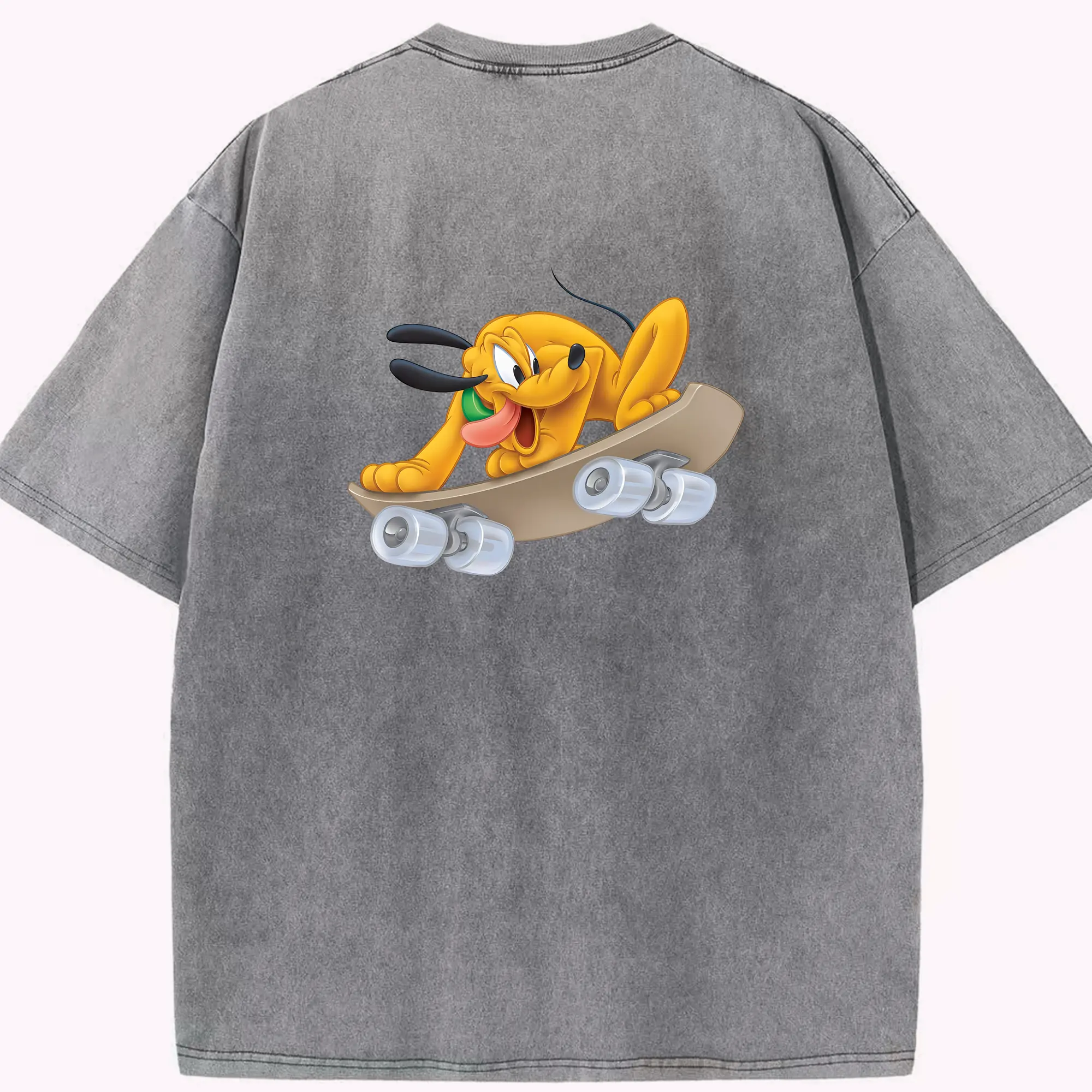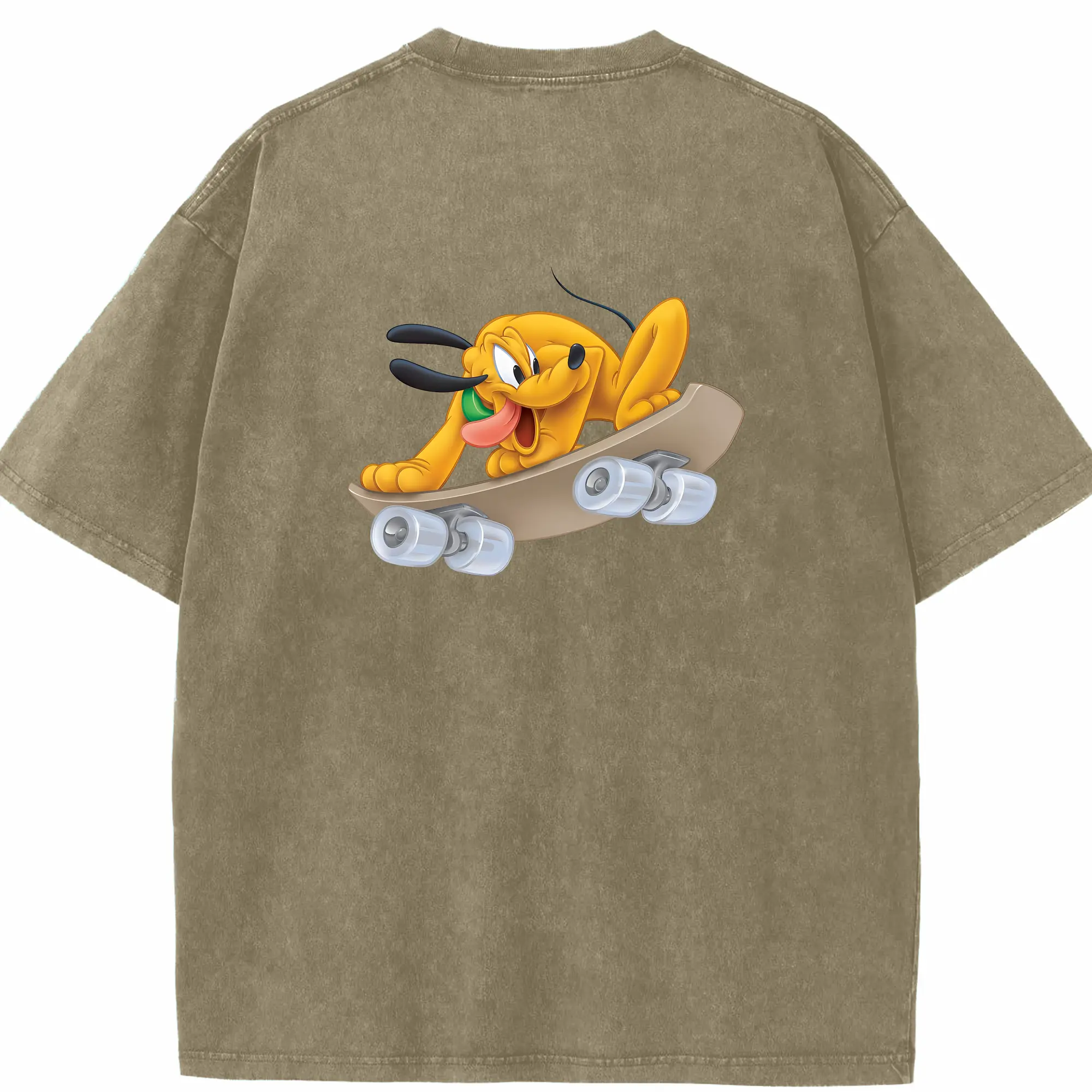 ミッキーマウス(Mickey Mouse) グッズ プルート(Pluto) - 綿100% ヴィンテージ風 半袖Tシャツ ・ フロントプリント ・ 柔らか肌触り ・ 通気性 快適 ・ スポーツ カジュアル 外出用