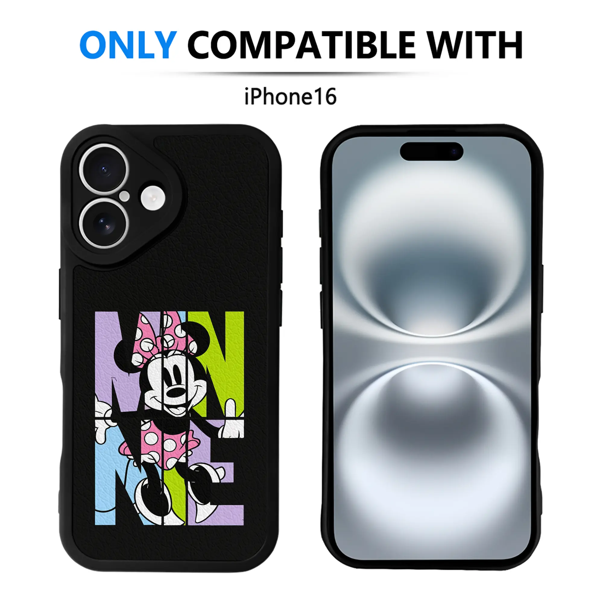 ミッキーマウス(Mickey Mouse) グッズ ミニーマウス(Minnie Mouse) - IPhone 16シリーズ対応 ・ シリコンスマホケース ・ レザー調 ・ 高精度フィット ・ 耐衝撃 ・ ワイヤレス充電対応 ・ 精密カット