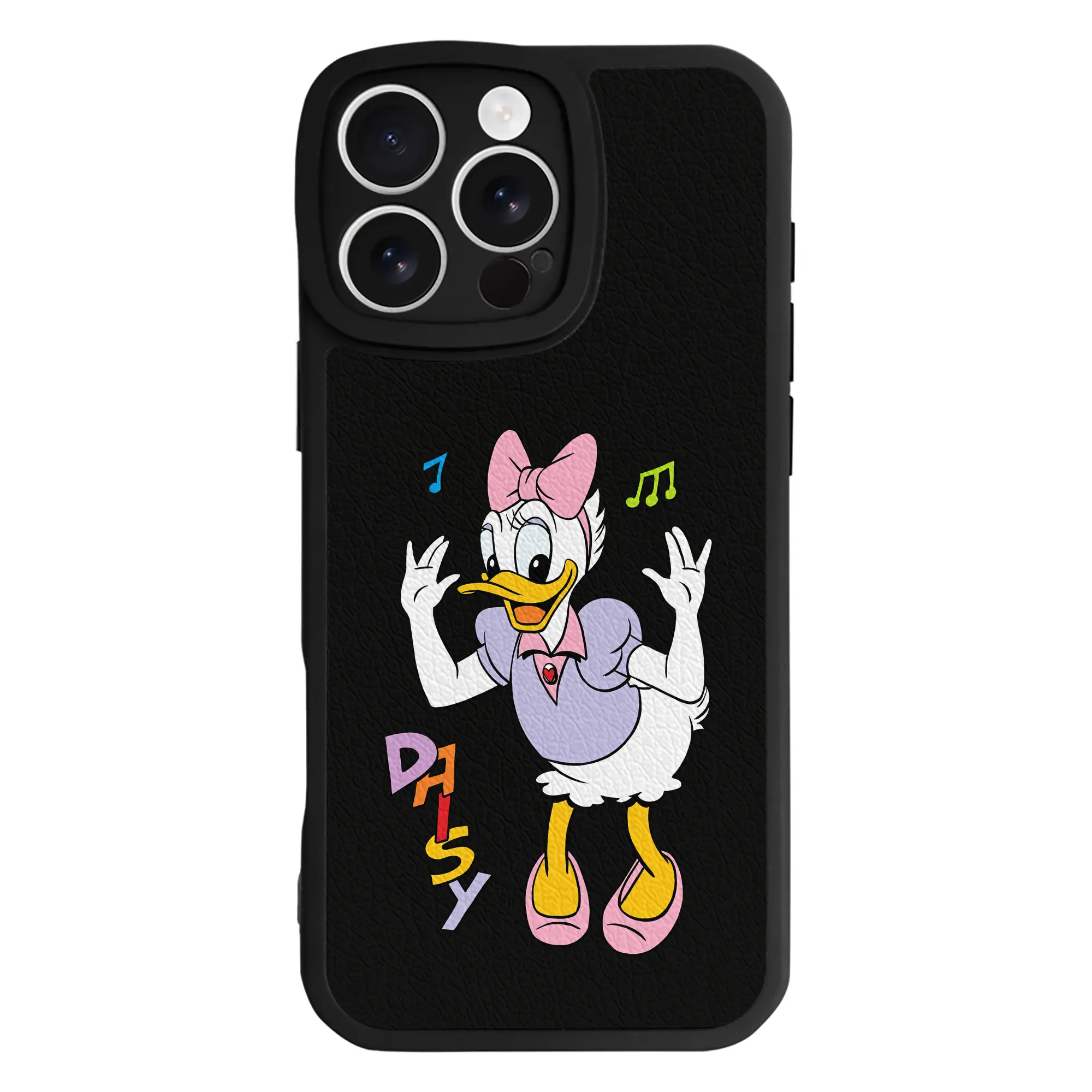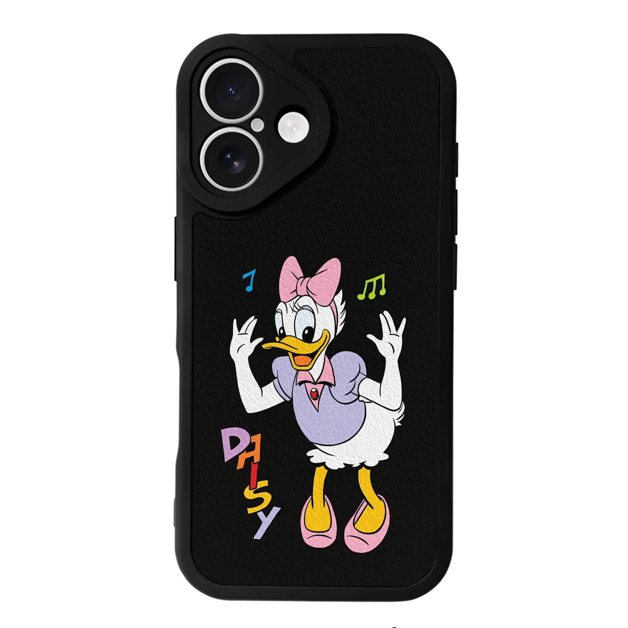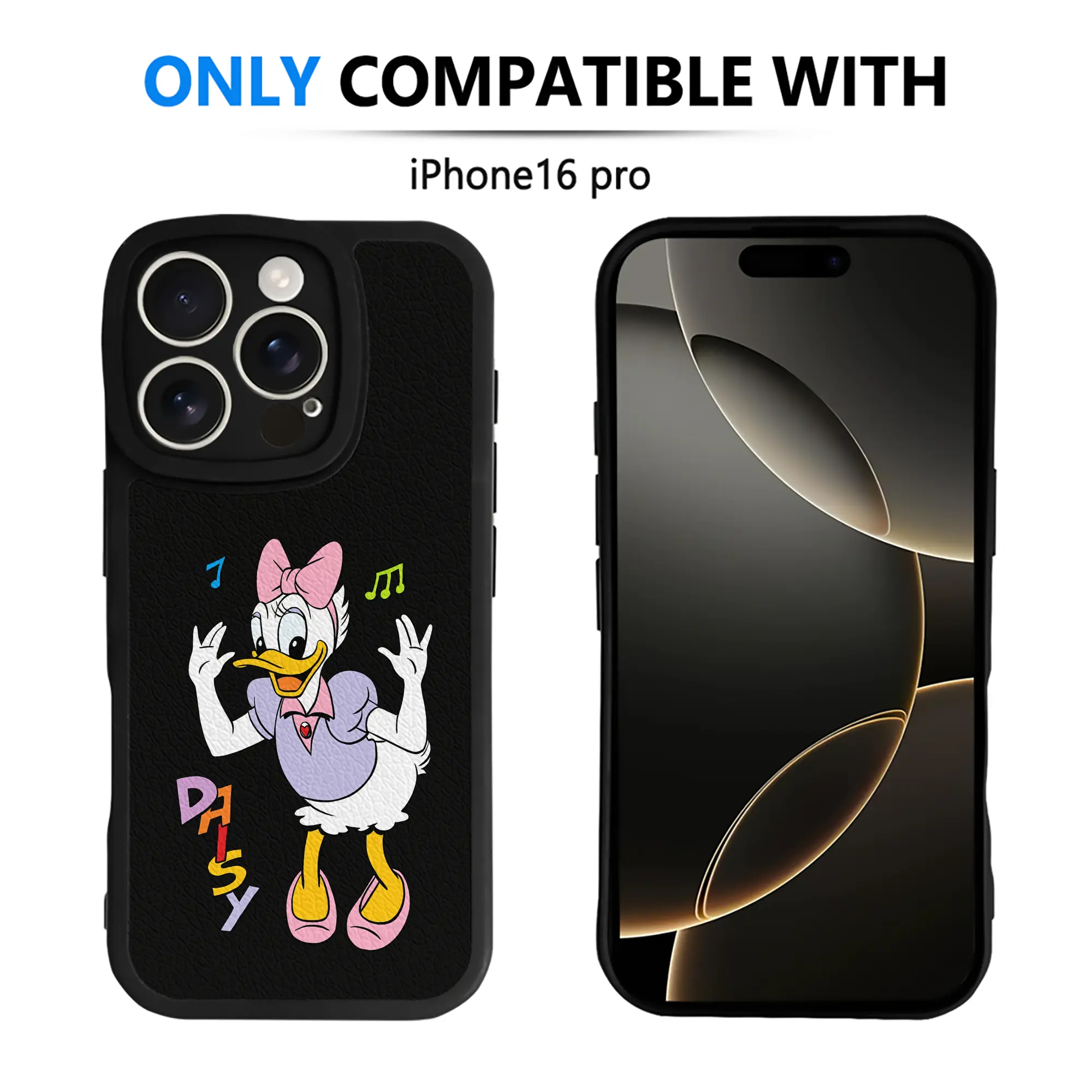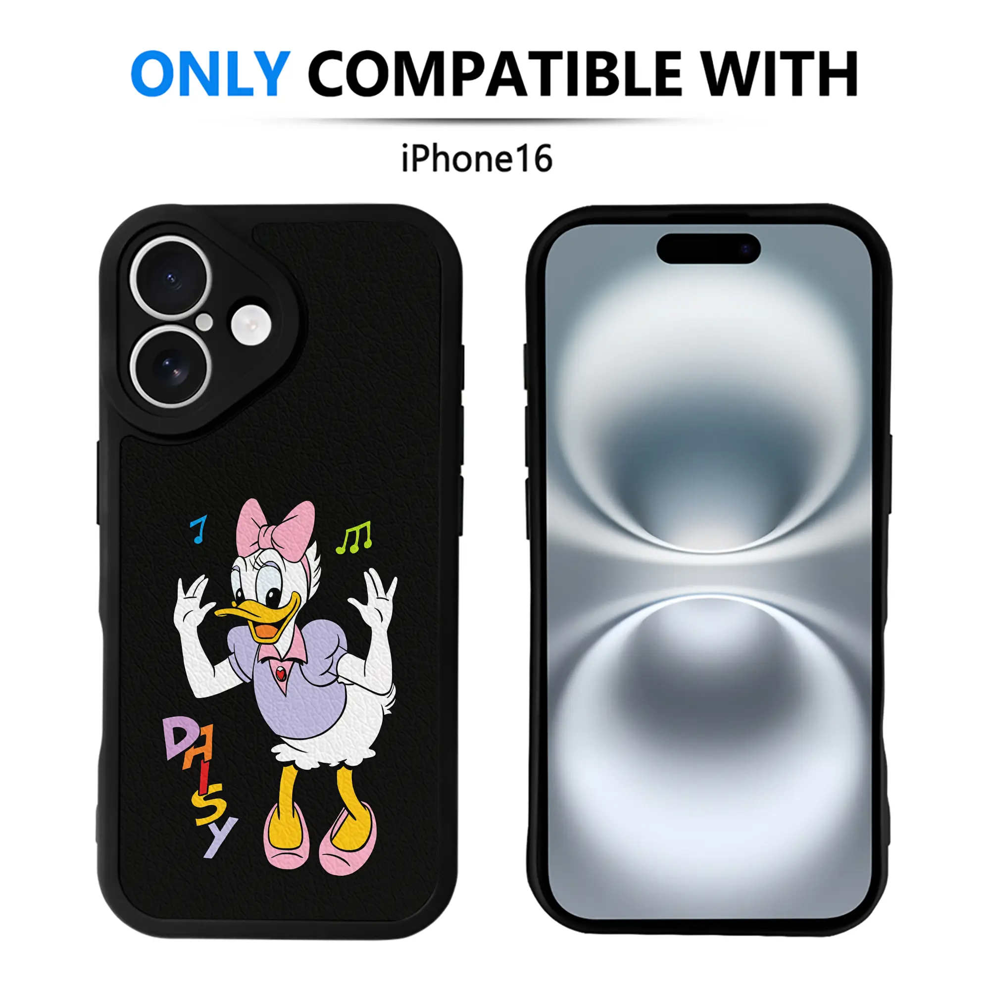 ミッキーマウス(Mickey Mouse) グッズ デイジーダック(Daisy Duck) - IPhone 16シリーズ対応 ・ シリコンスマホケース ・ レザー調 ・ 高精度フィット ・ 耐衝撃 ・ ワイヤレス充電対応 ・ 精密カット