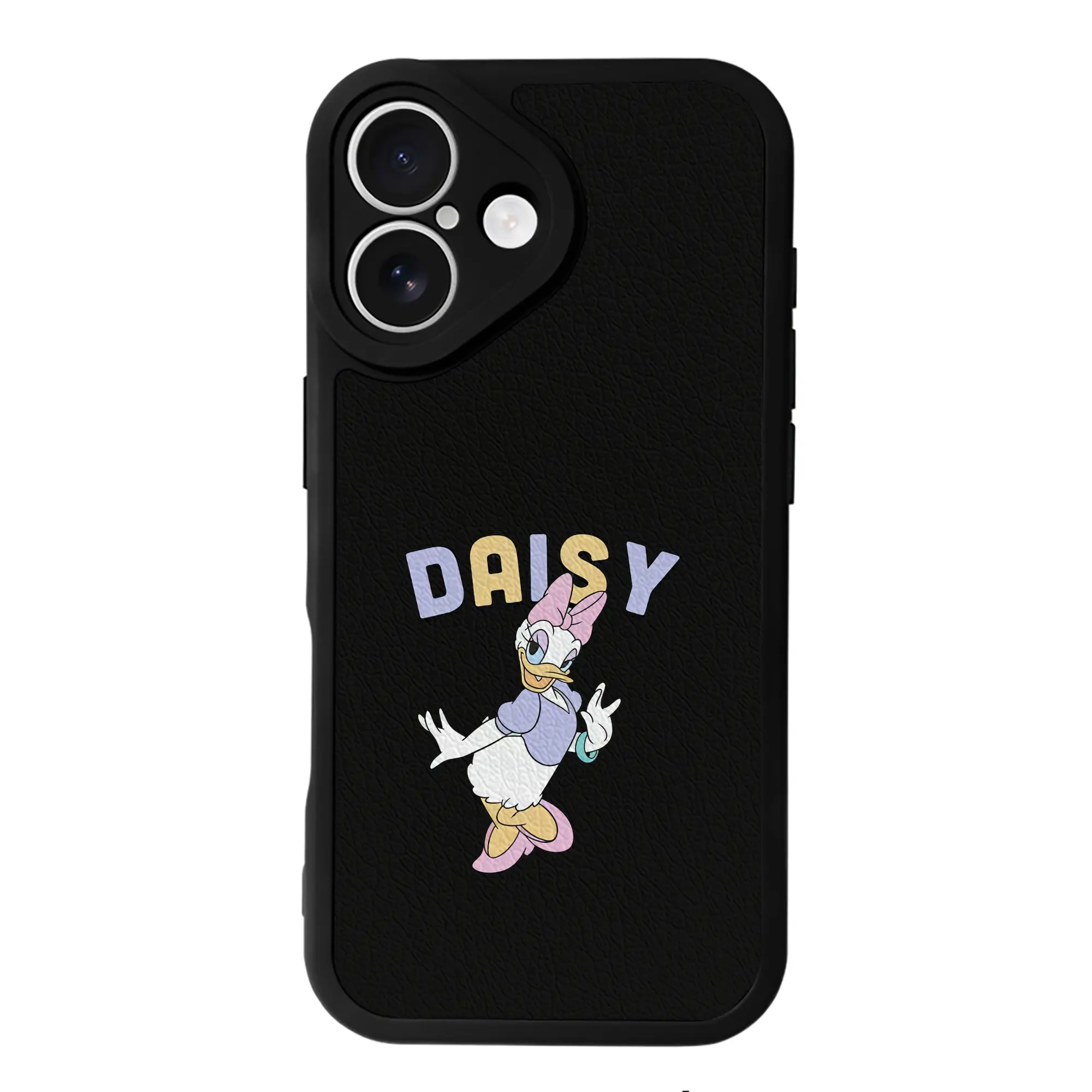 ミッキーマウス(Mickey Mouse) グッズ デイジーダック(Daisy Duck) - IPhone 16シリーズ対応 ・ シリコンスマホケース ・ レザー調 ・ 高精度フィット ・ 耐衝撃 ・ ワイヤレス充電対応 ・ 精密カット