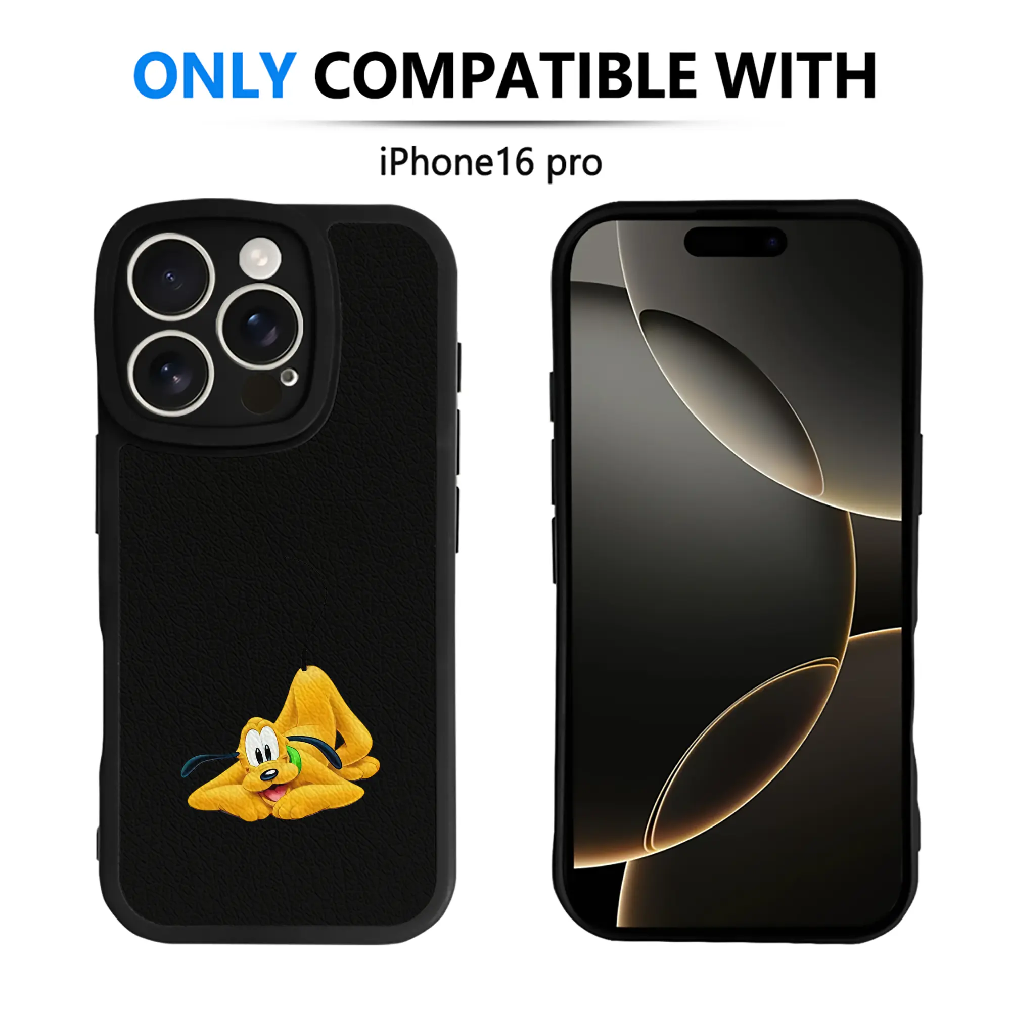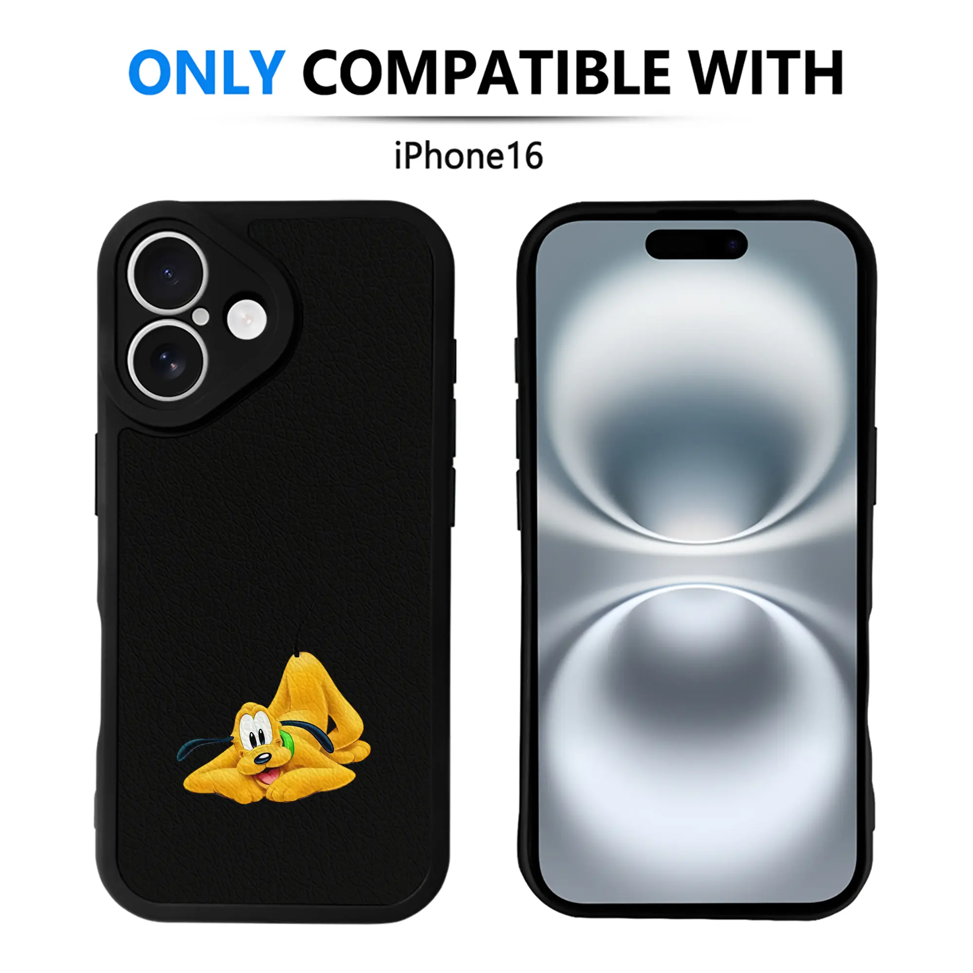 ミッキーマウス(Mickey Mouse) グッズ プルート(Pluto) - IPhone 16シリーズ対応 ・ シリコンスマホケース ・ レザー調 ・ 高精度フィット ・ 耐衝撃 ・ ワイヤレス充電対応 ・ 精密カット