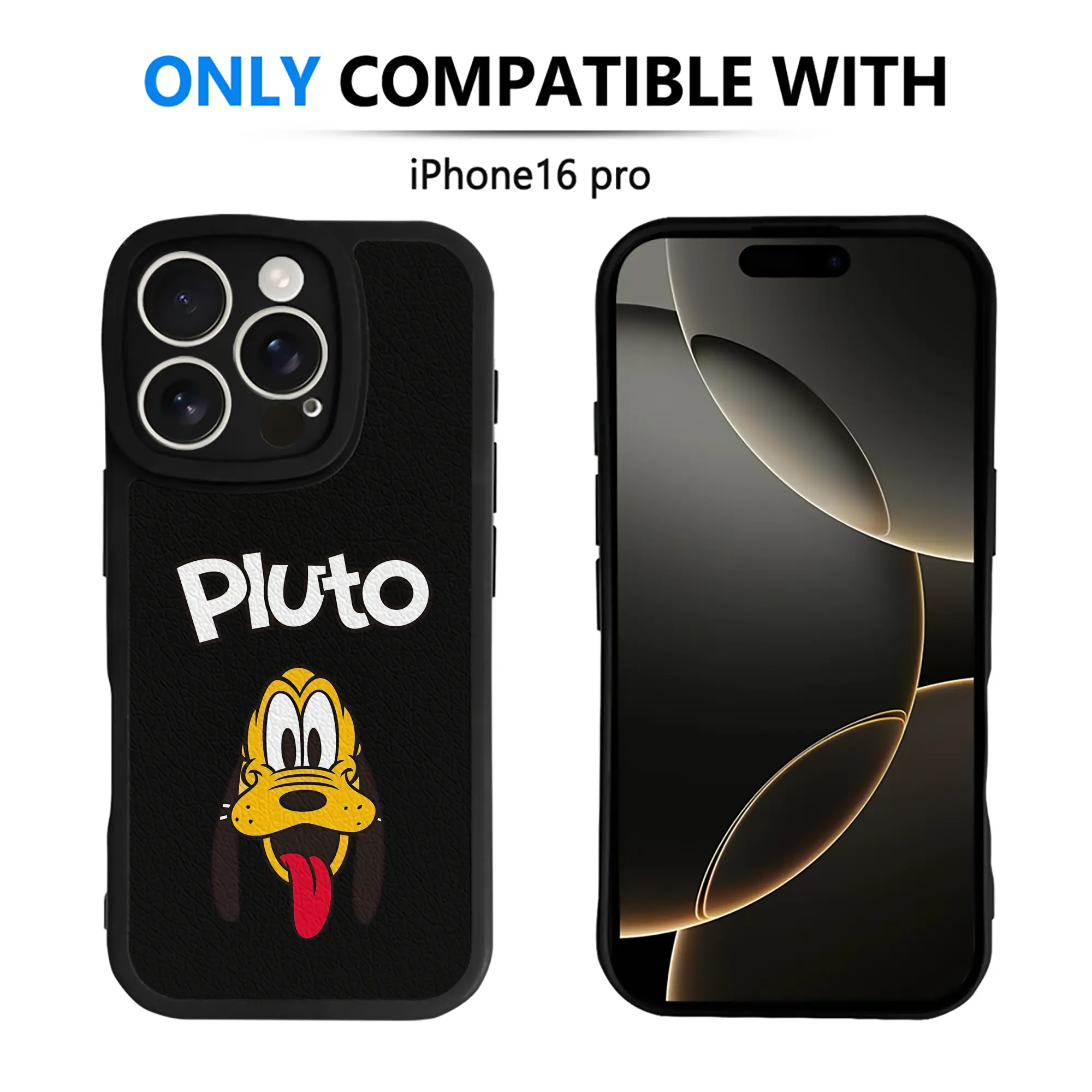 ミッキーマウス(Mickey Mouse) グッズ プルート(Pluto) - IPhone 16シリーズ対応 ・ シリコンスマホケース ・ レザー調 ・ 高精度フィット ・ 耐衝撃 ・ ワイヤレス充電対応 ・ 精密カット