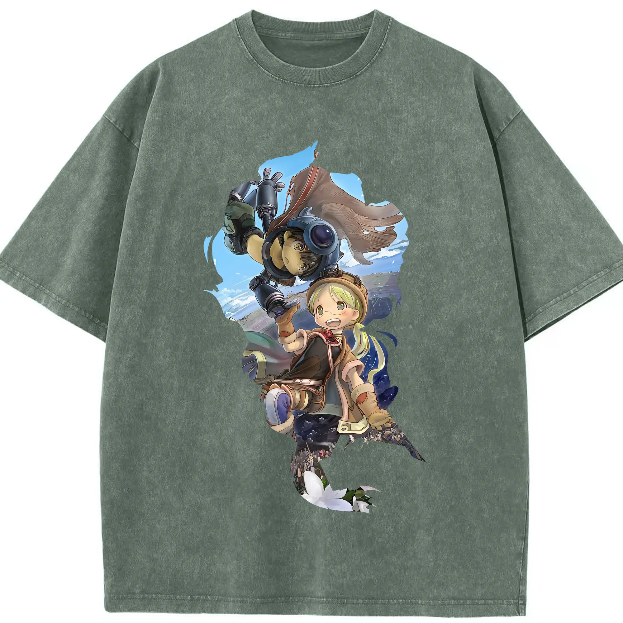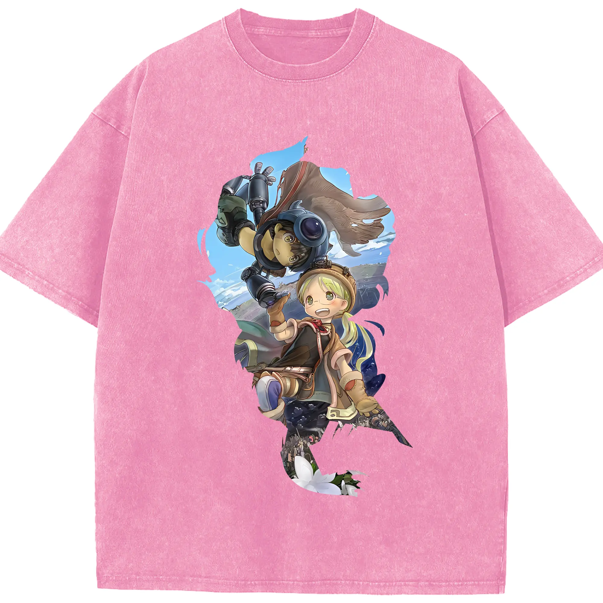 メイドインアビス グッズ,リコ - 綿100% ヴィンテージ風 半袖Tシャツ ・ 背面プリント ・ 柔らか肌触り ・ 通気性 快適 ・ スポーツ カジュアル 外出用