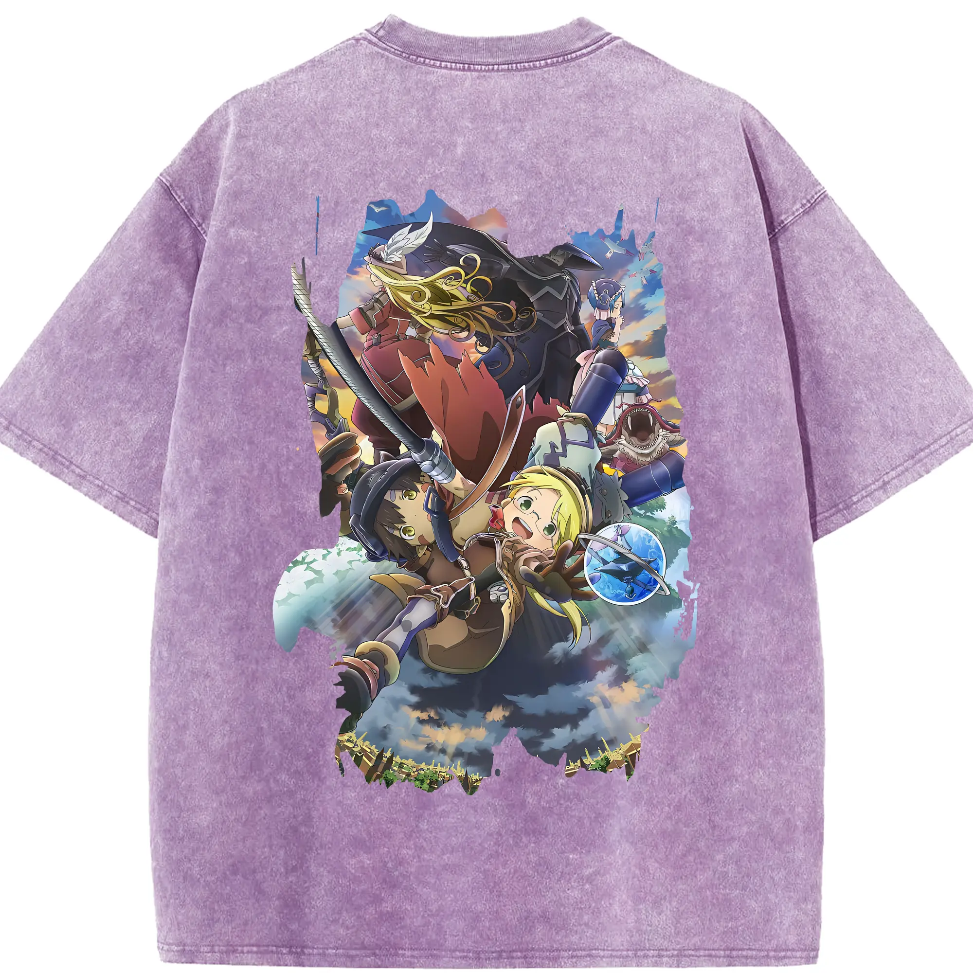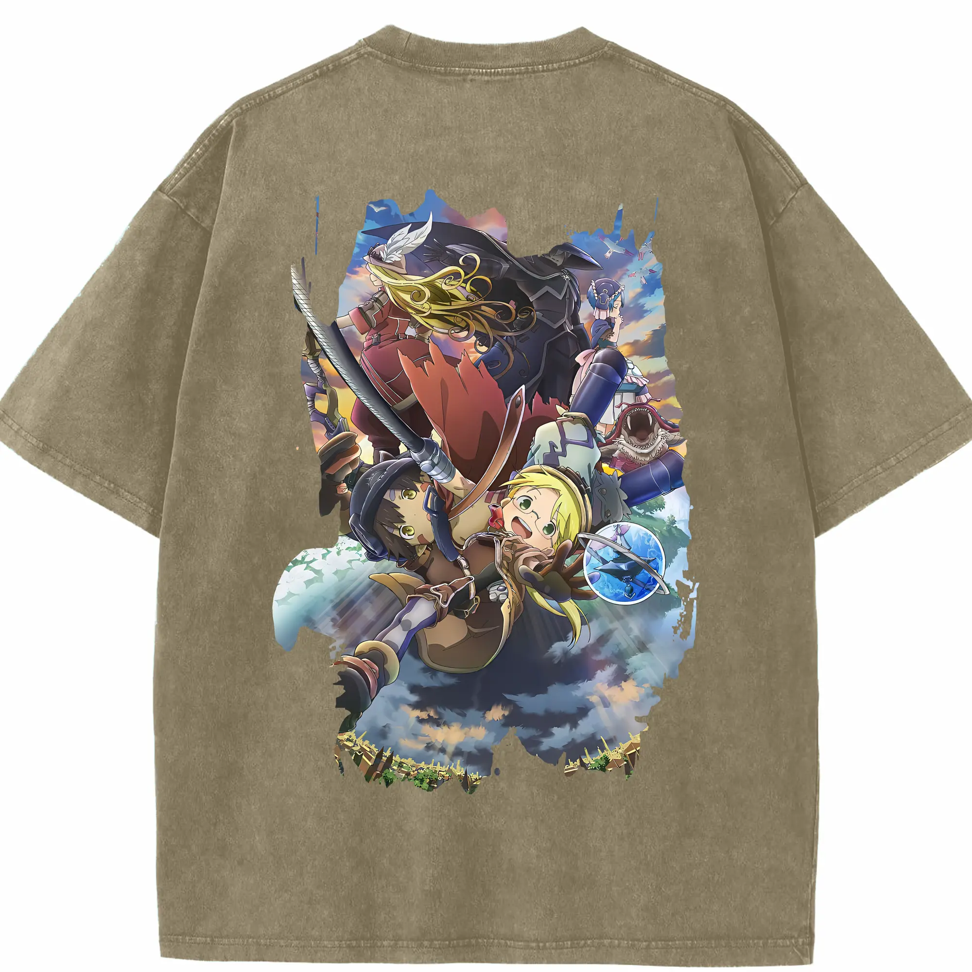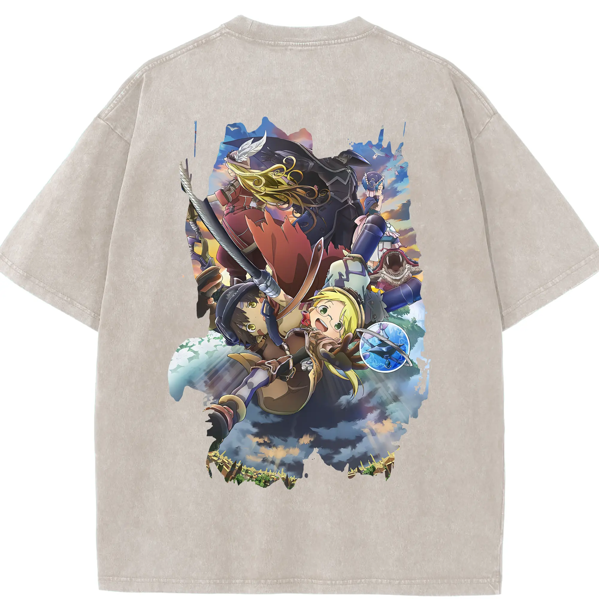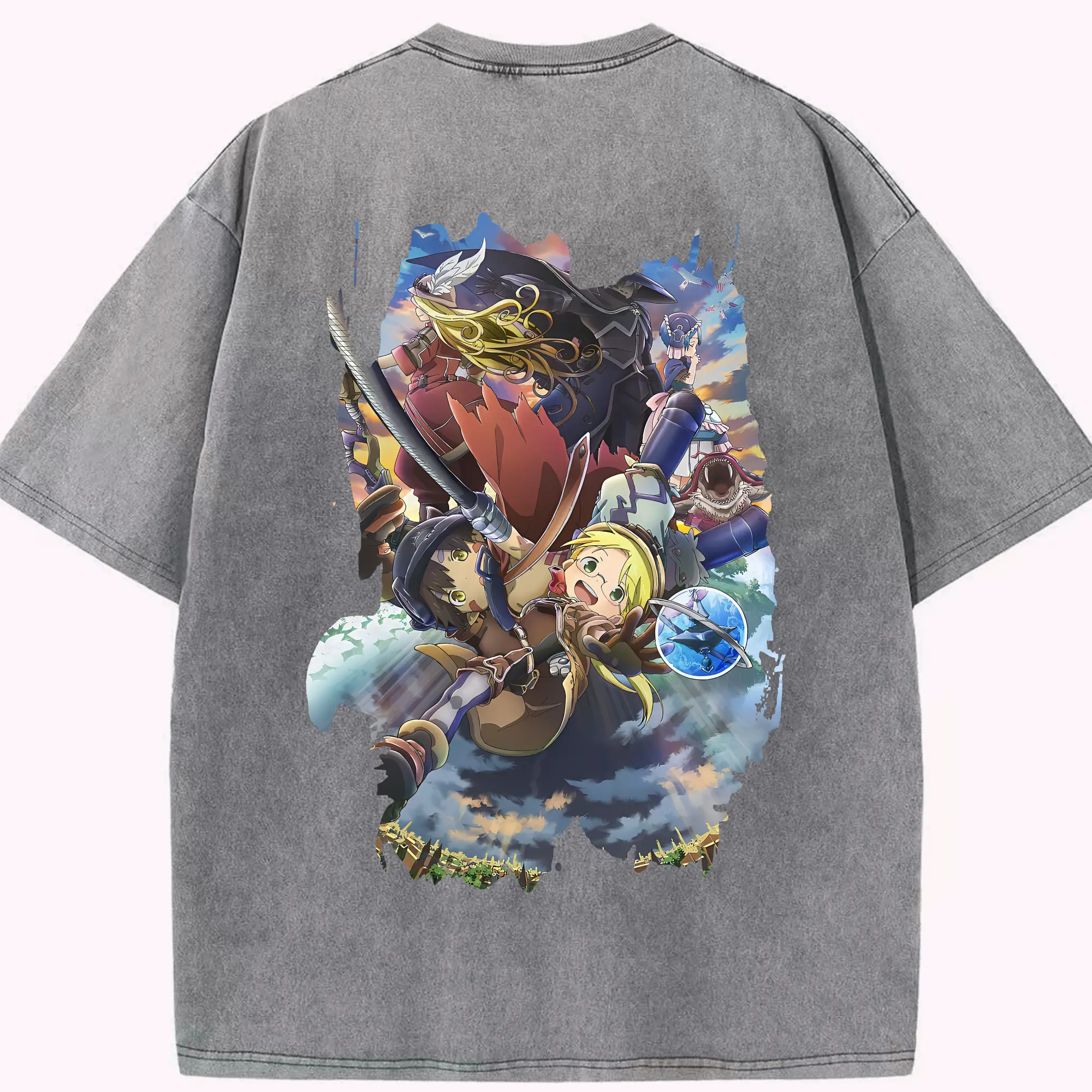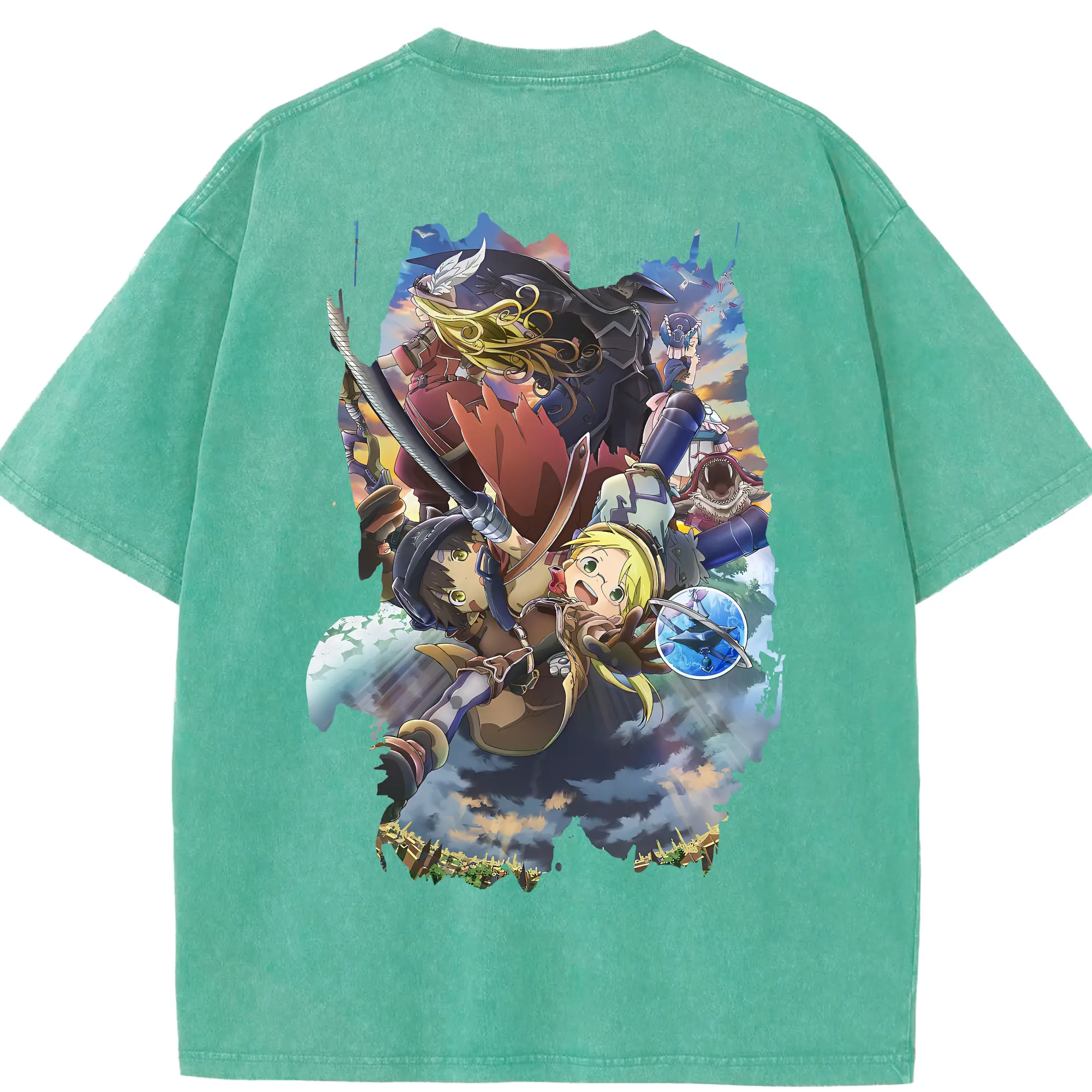 メイドインアビス グッズ,リコ - 綿100% ヴィンテージ風 半袖Tシャツ ・ フロントプリント ・ 柔らか肌触り ・ 通気性 快適 ・ スポーツ カジュアル 外出用