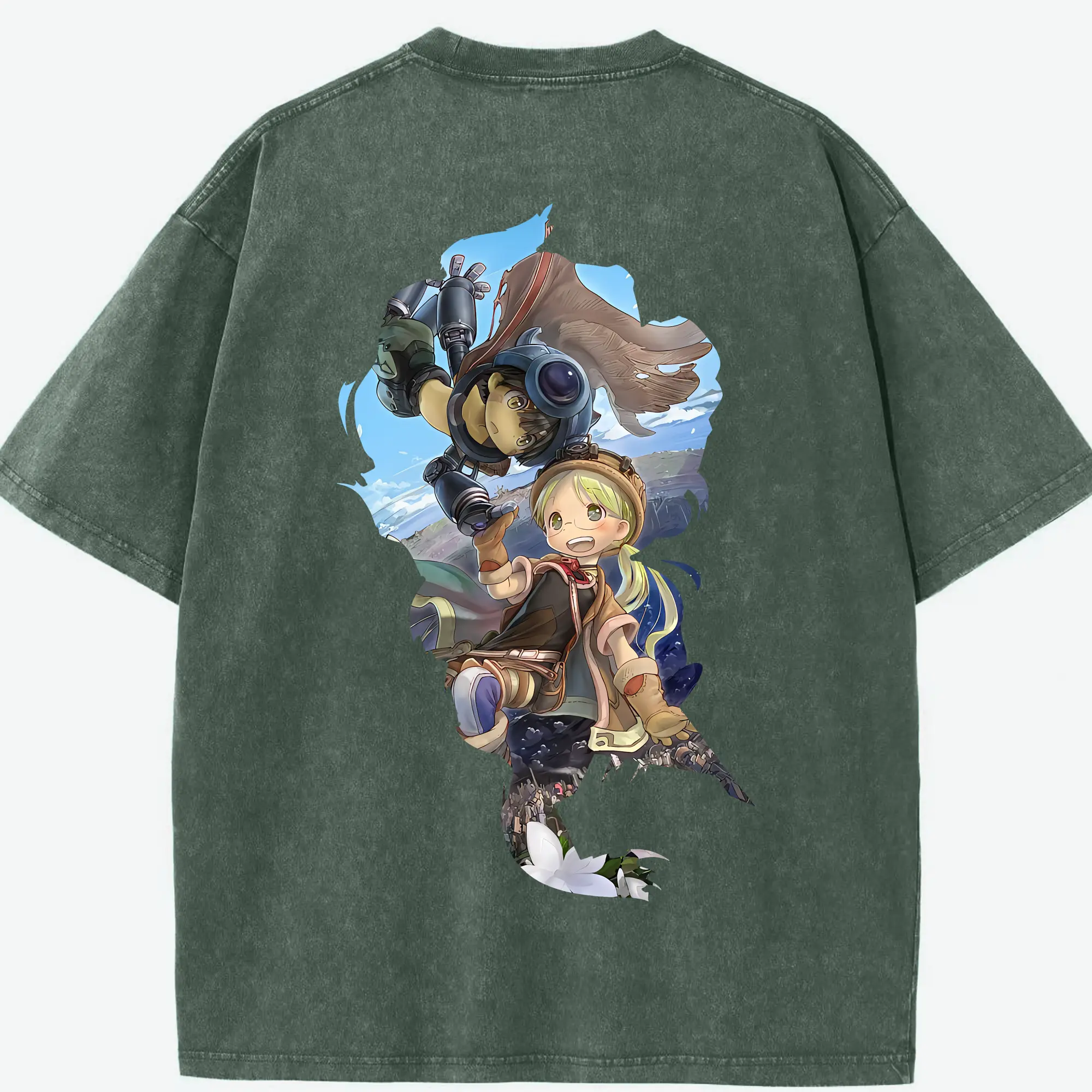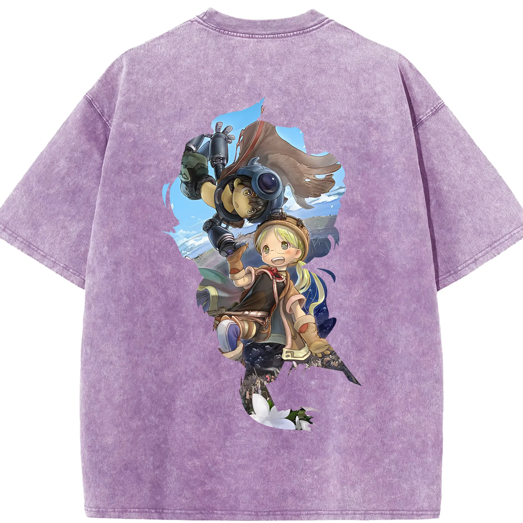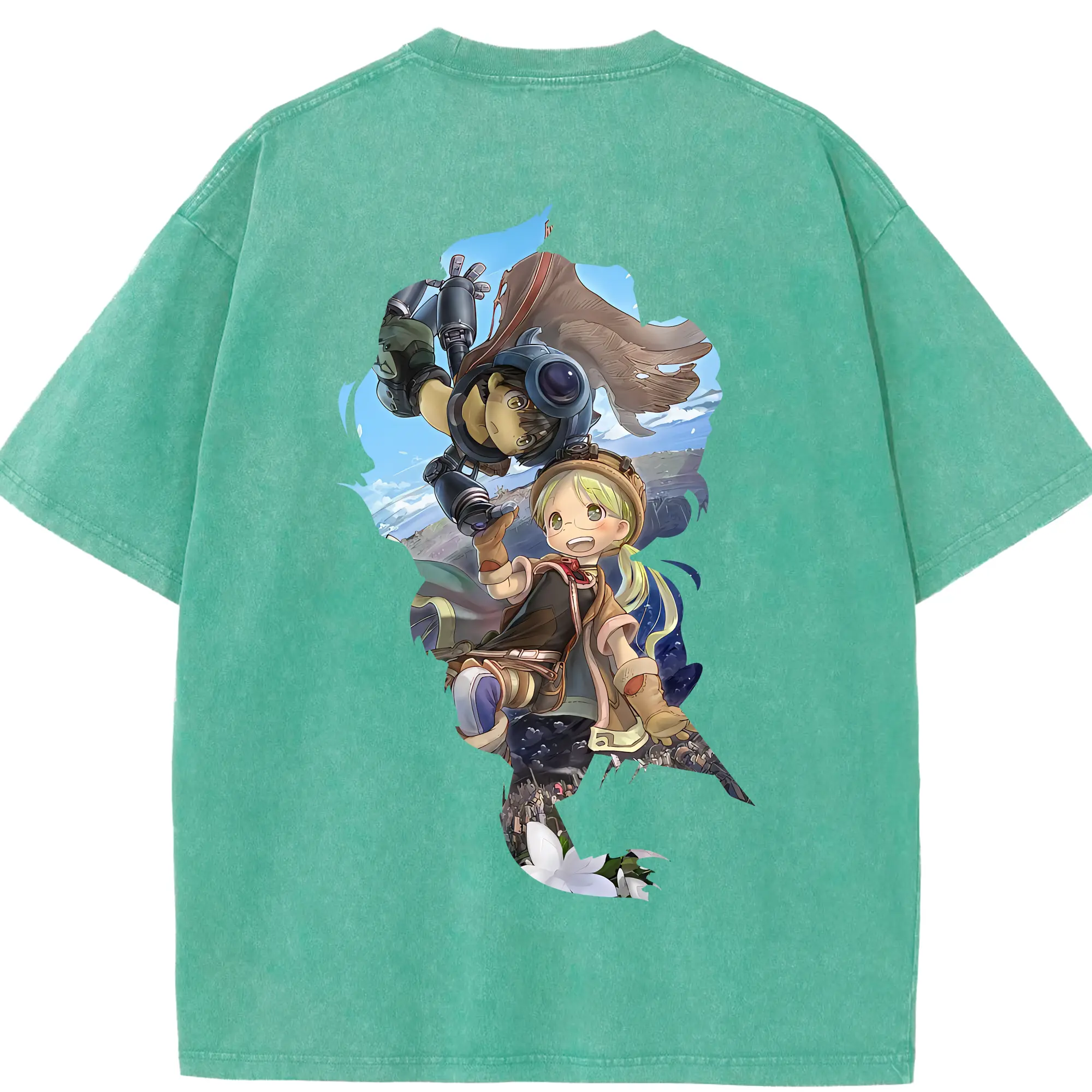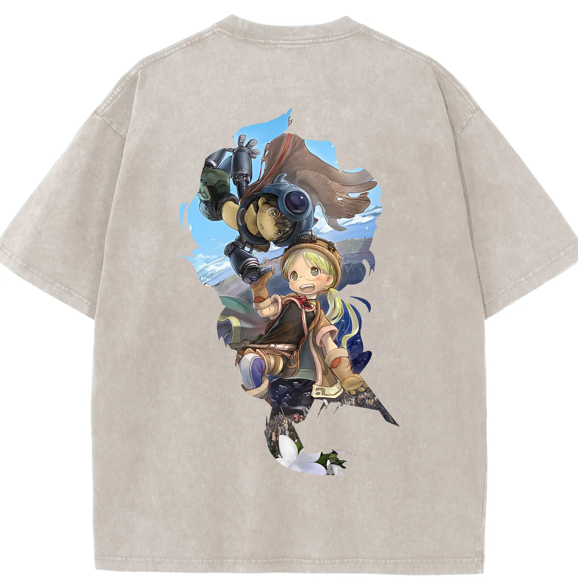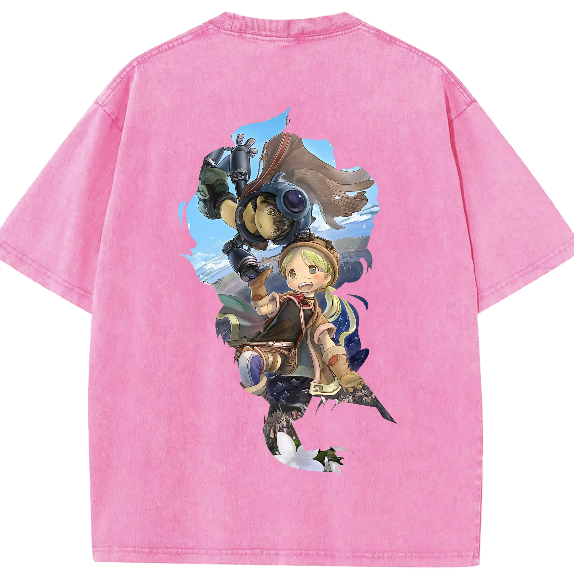 メイドインアビス グッズ,リコ - 綿100% ヴィンテージ風 半袖Tシャツ ・ フロントプリント ・ 柔らか肌触り ・ 通気性 快適 ・ スポーツ カジュアル 外出用