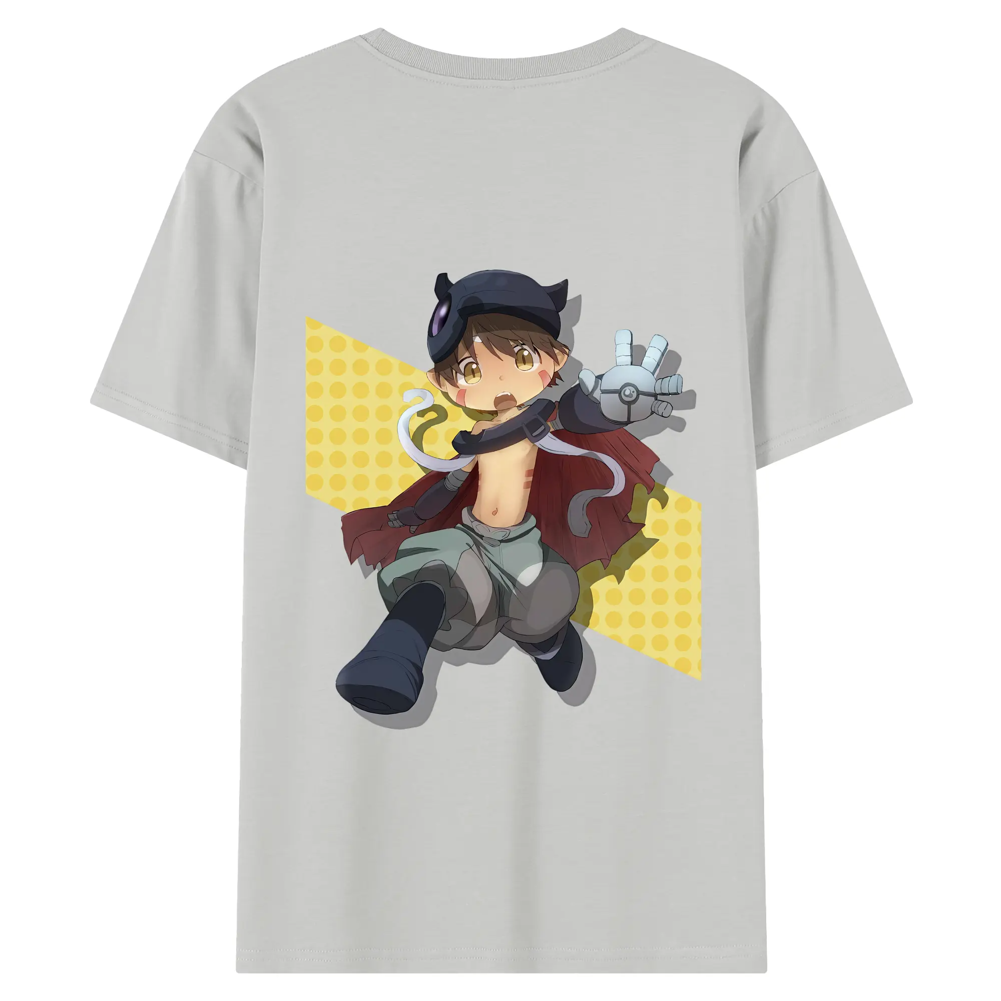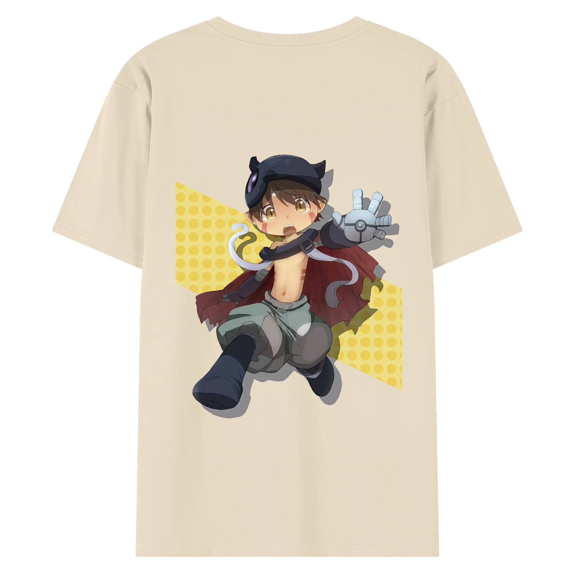 メイドインアビス グッズ,レグ - 綿100% ヴィンテージ風 半袖Tシャツ ・ 背面プリント ・ 柔らか肌触り ・ 通気性 快適 ・ スポーツ カジュアル 外出用