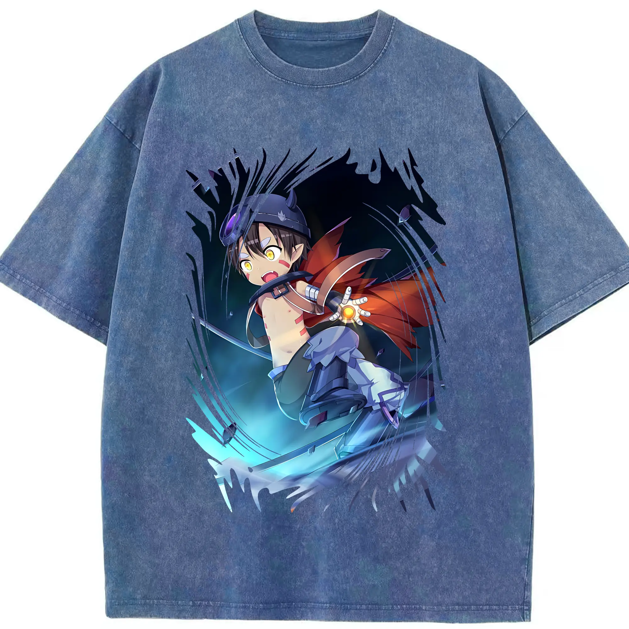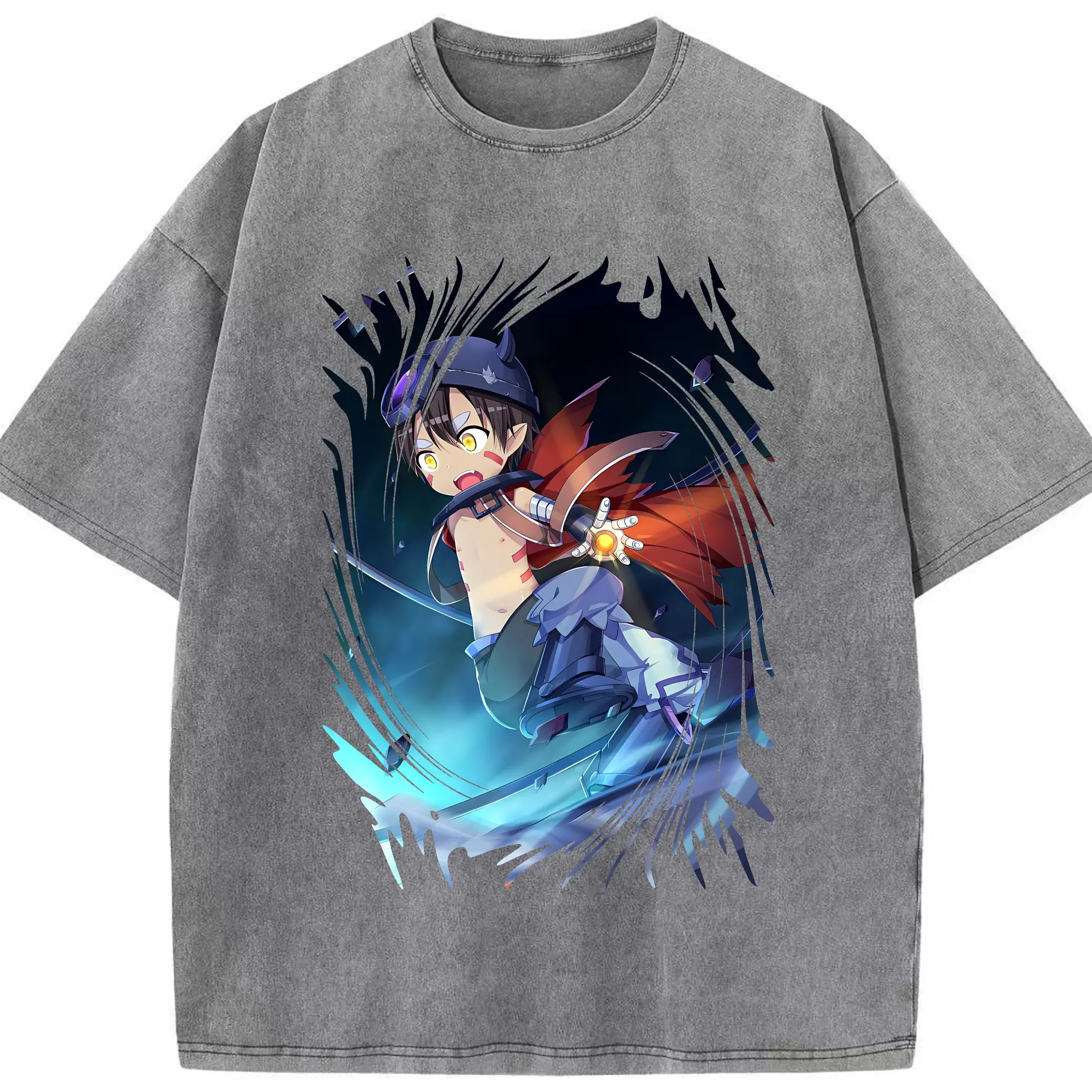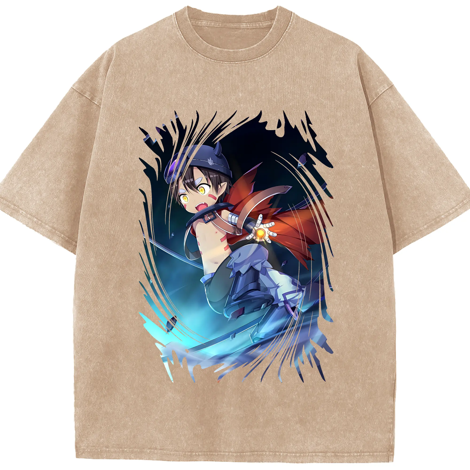 メイドインアビス グッズ,レグ - 綿100% ヴィンテージ風 半袖Tシャツ ・ 背面プリント ・ 柔らか肌触り ・ 通気性 快適 ・ スポーツ カジュアル 外出用