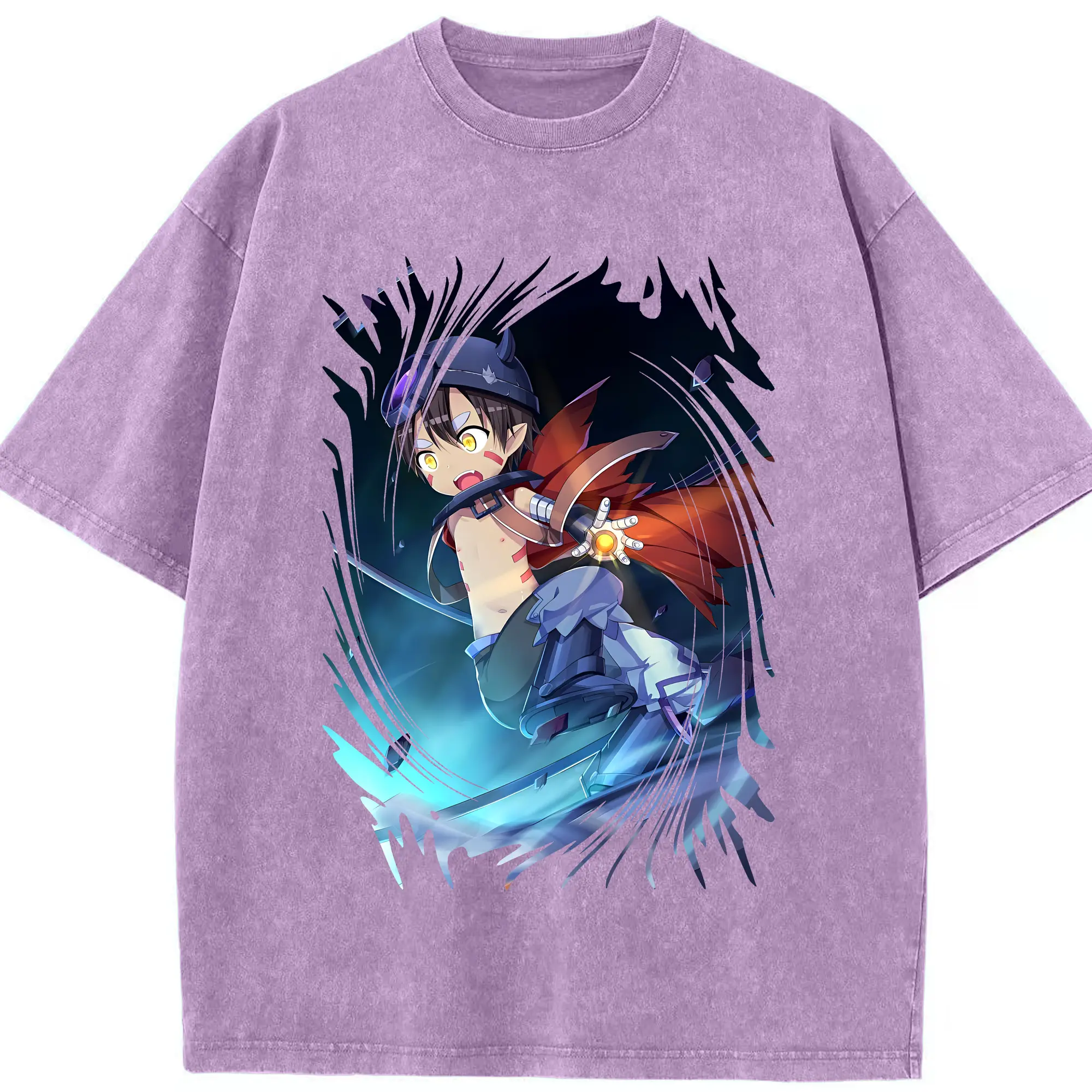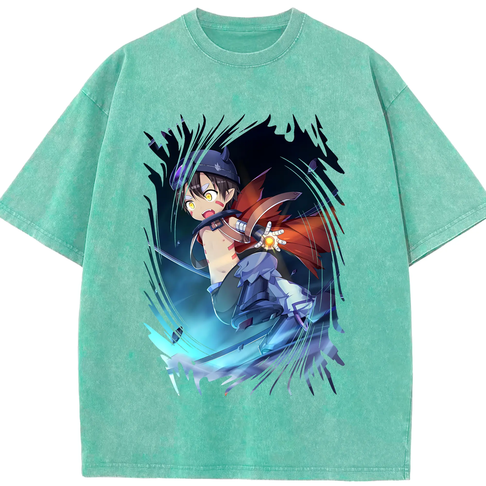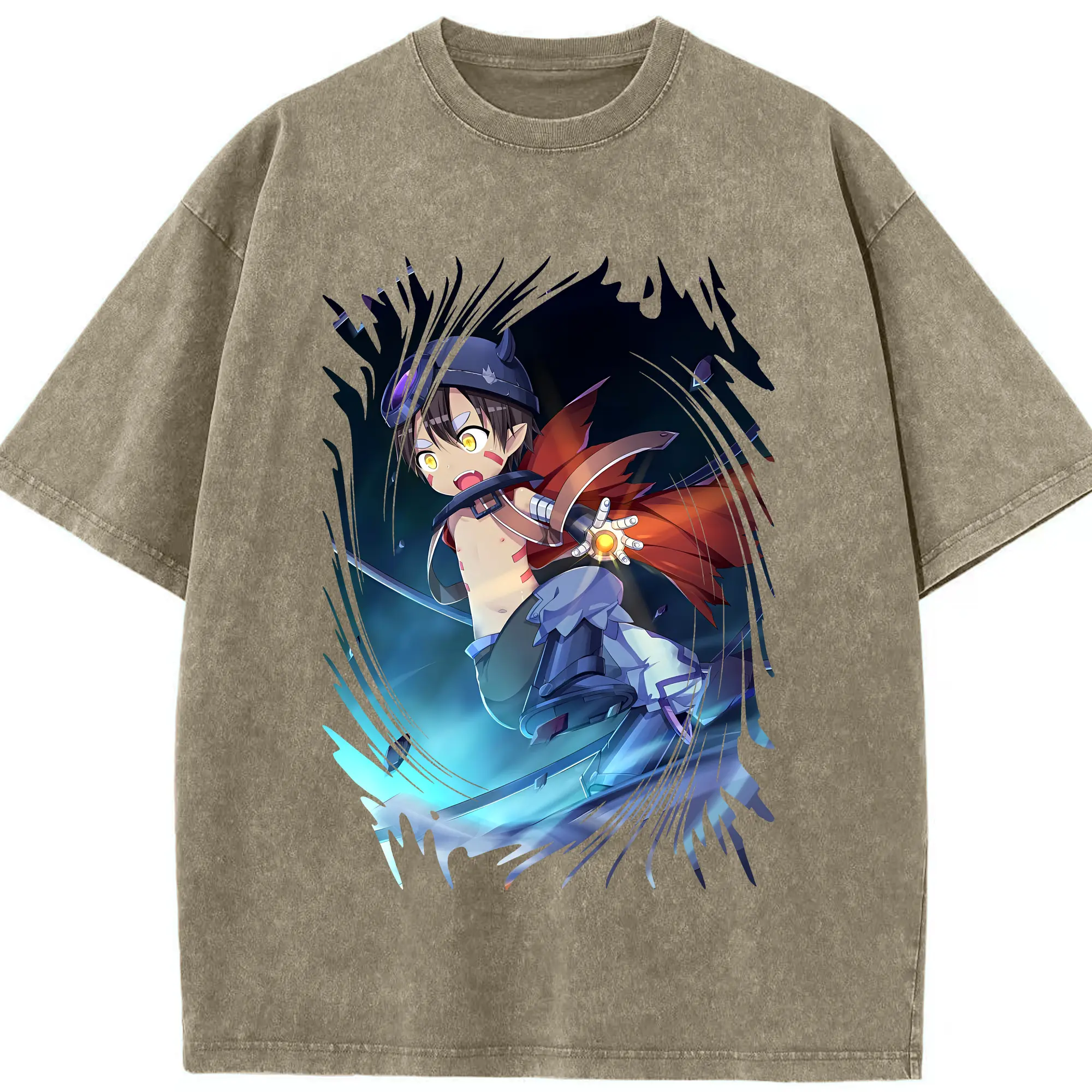 メイドインアビス グッズ,レグ - 綿100% ヴィンテージ風 半袖Tシャツ ・ 背面プリント ・ 柔らか肌触り ・ 通気性 快適 ・ スポーツ カジュアル 外出用