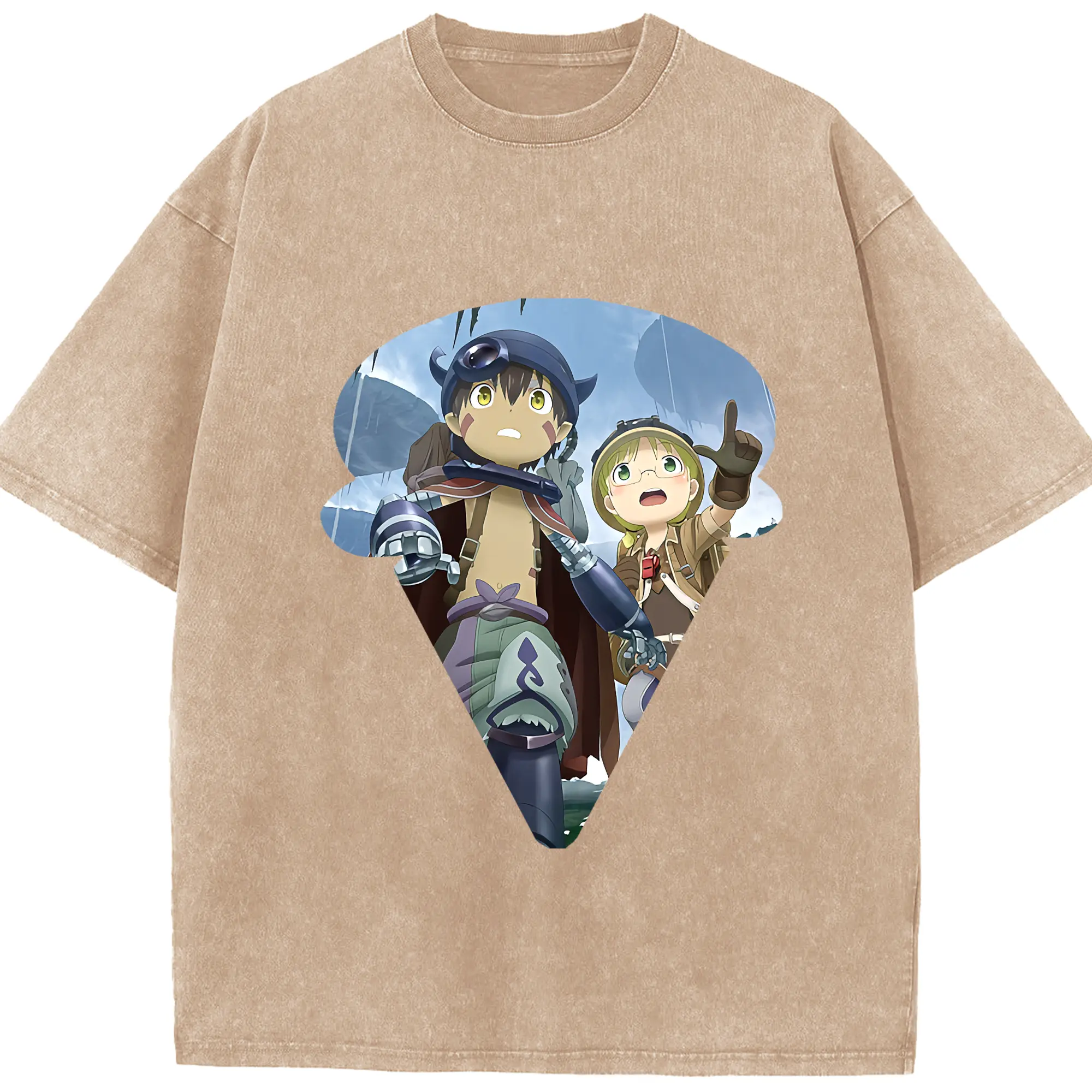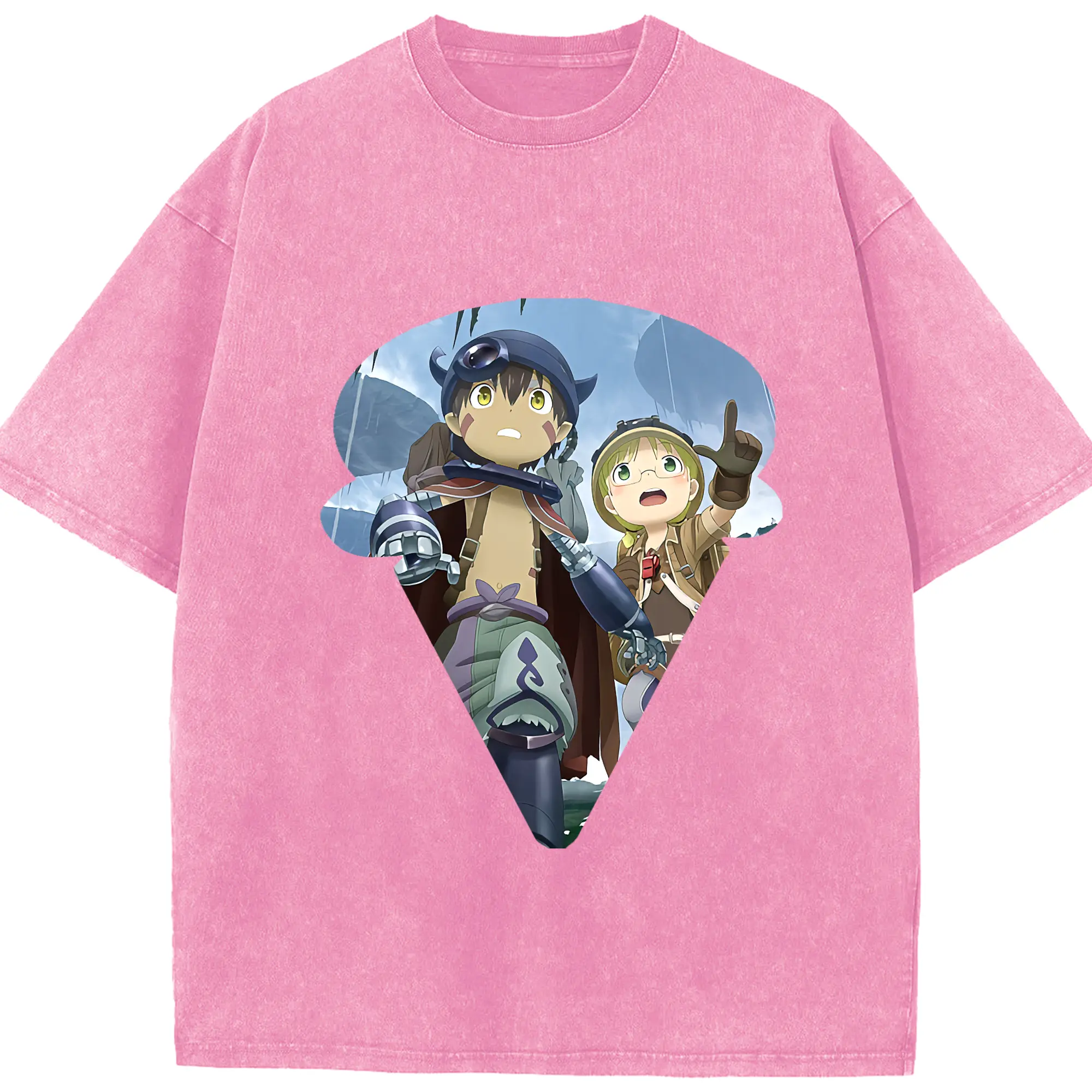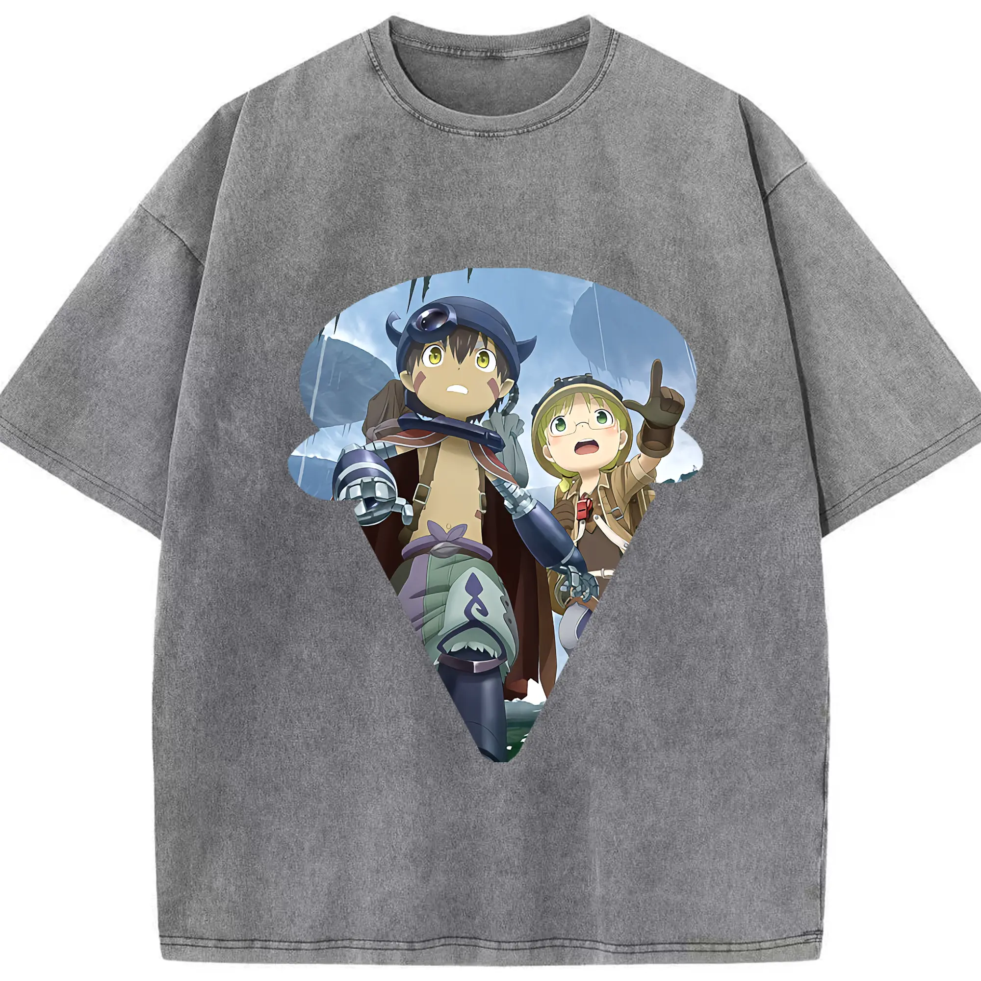 メイドインアビス グッズ,レグ - 綿100% ヴィンテージ風 半袖Tシャツ ・ 背面プリント ・ 柔らか肌触り ・ 通気性 快適 ・ スポーツ カジュアル 外出用