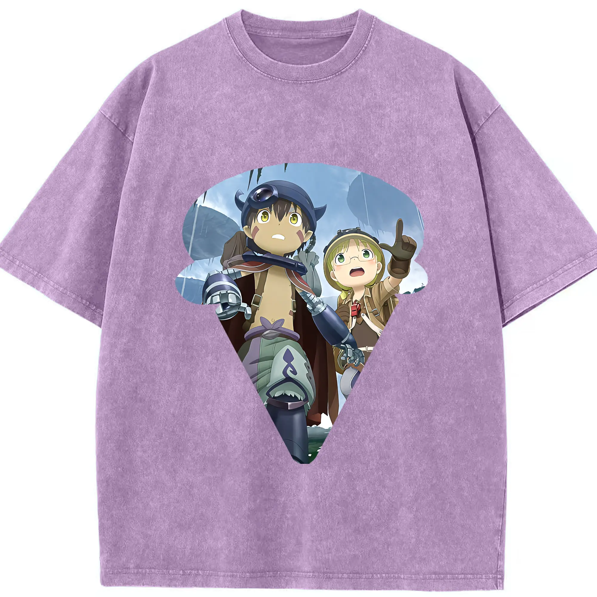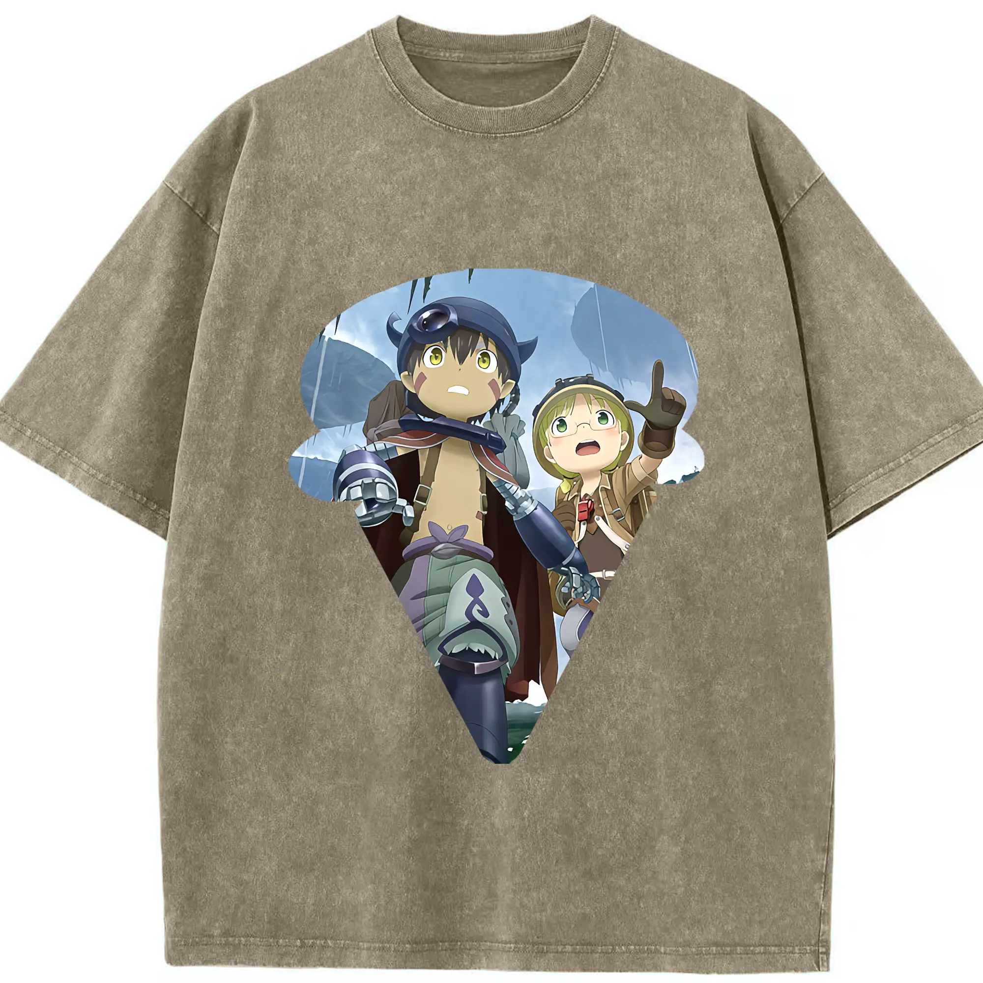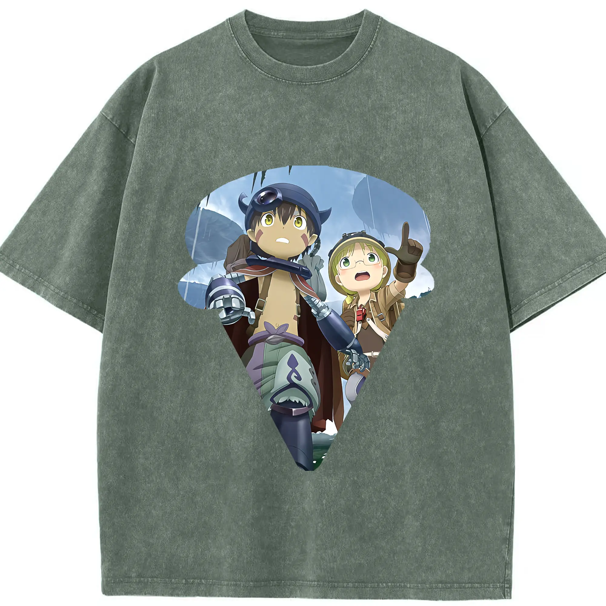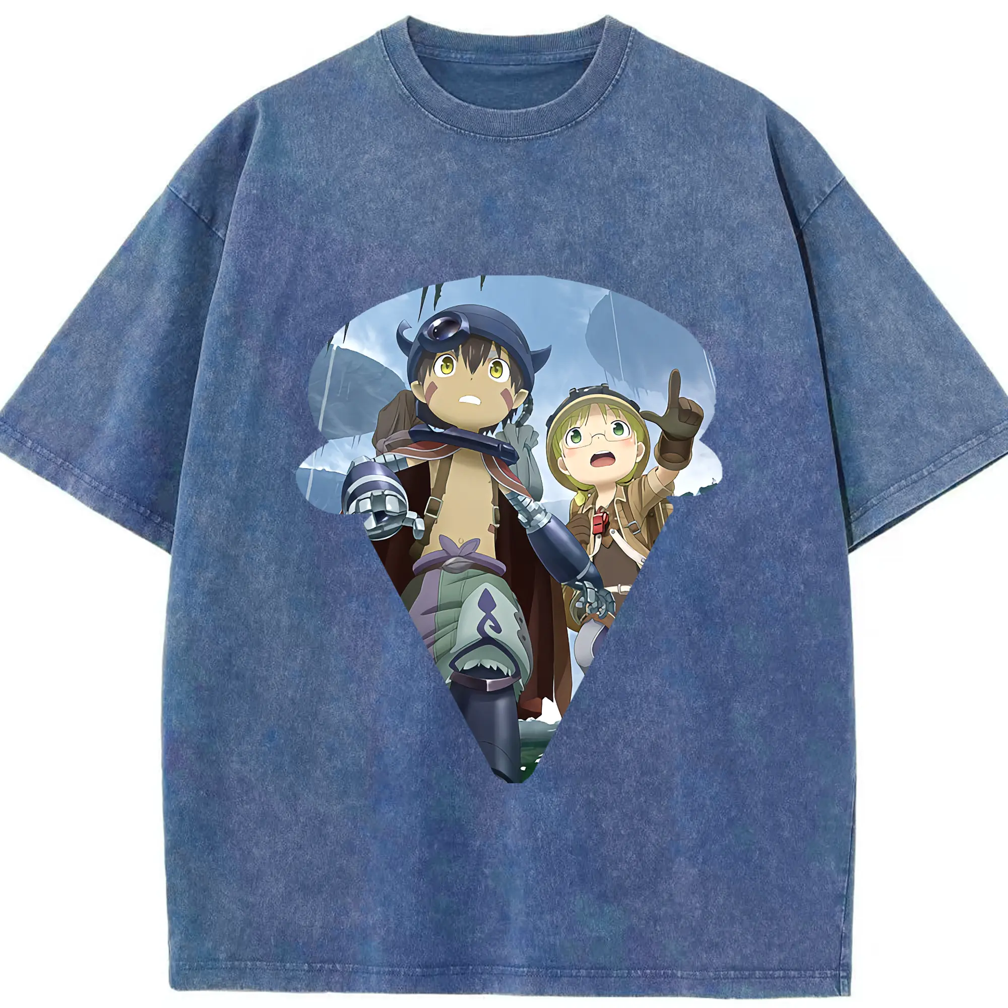 メイドインアビス グッズ,レグ - 綿100% ヴィンテージ風 半袖Tシャツ ・ 背面プリント ・ 柔らか肌触り ・ 通気性 快適 ・ スポーツ カジュアル 外出用