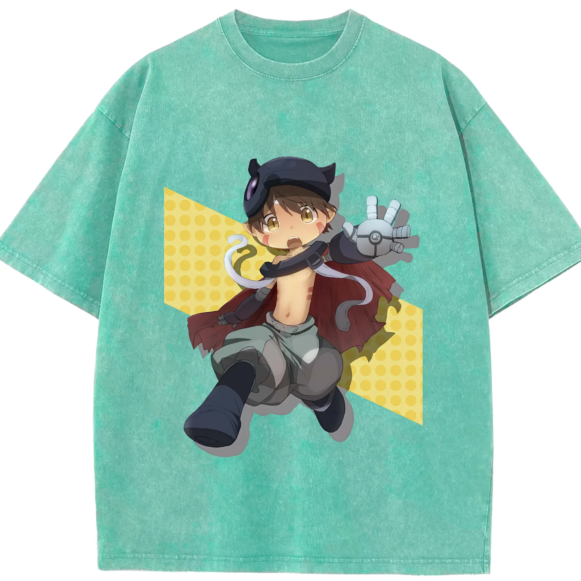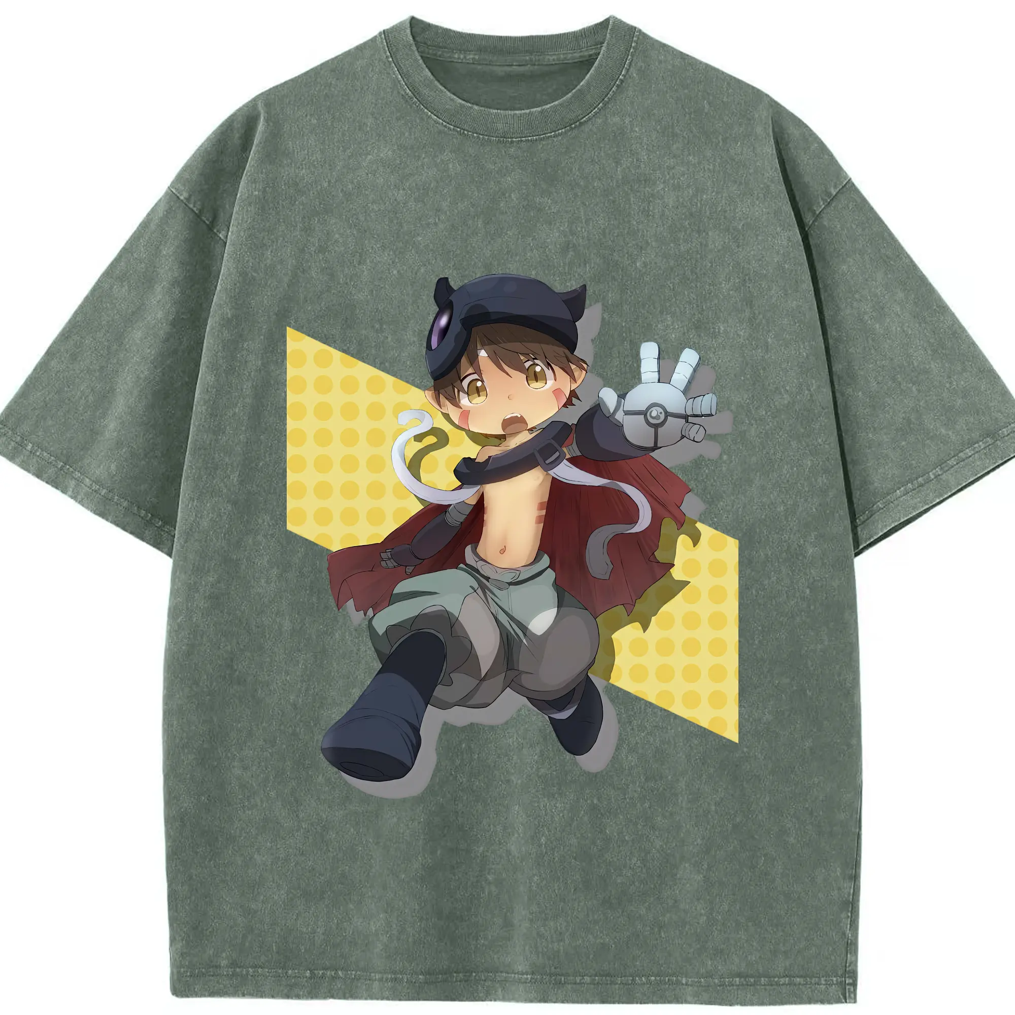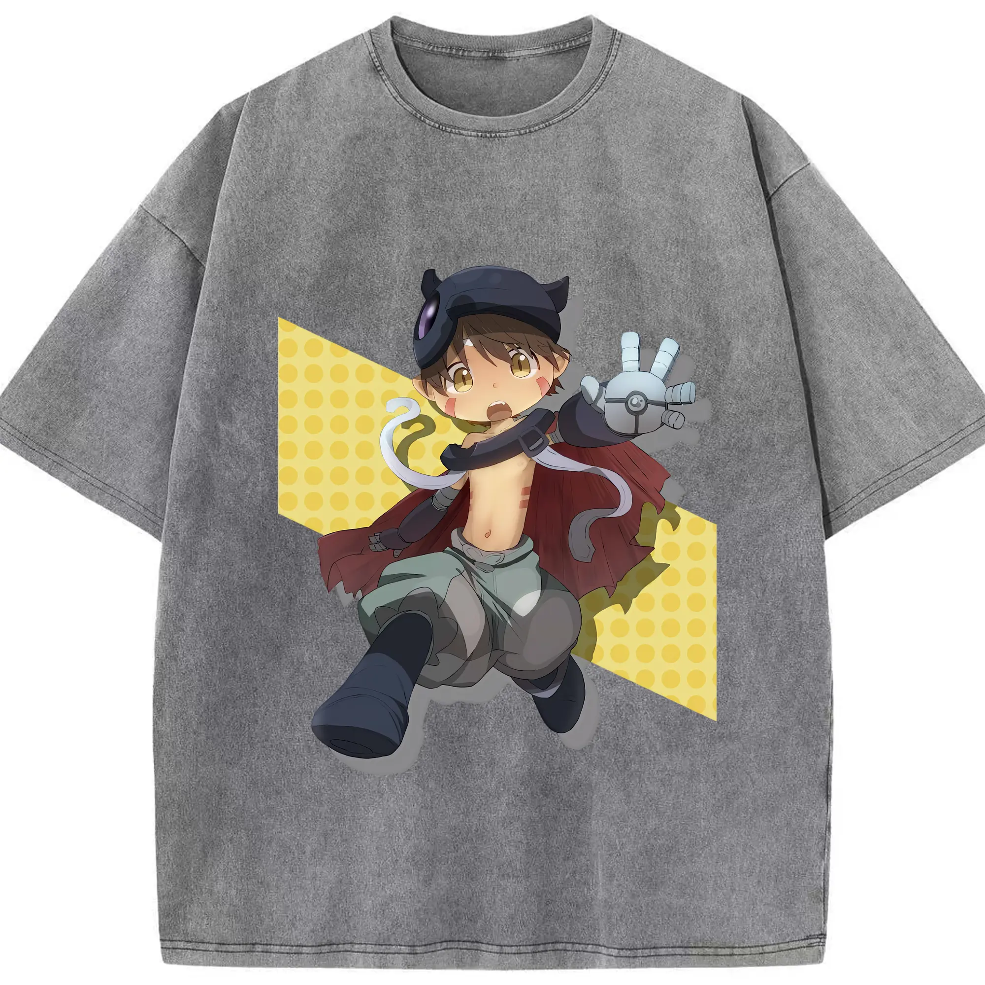 メイドインアビス グッズ,レグ - 綿100% ヴィンテージ風 半袖Tシャツ ・ 背面プリント ・ 柔らか肌触り ・ 通気性 快適 ・ スポーツ カジュアル 外出用