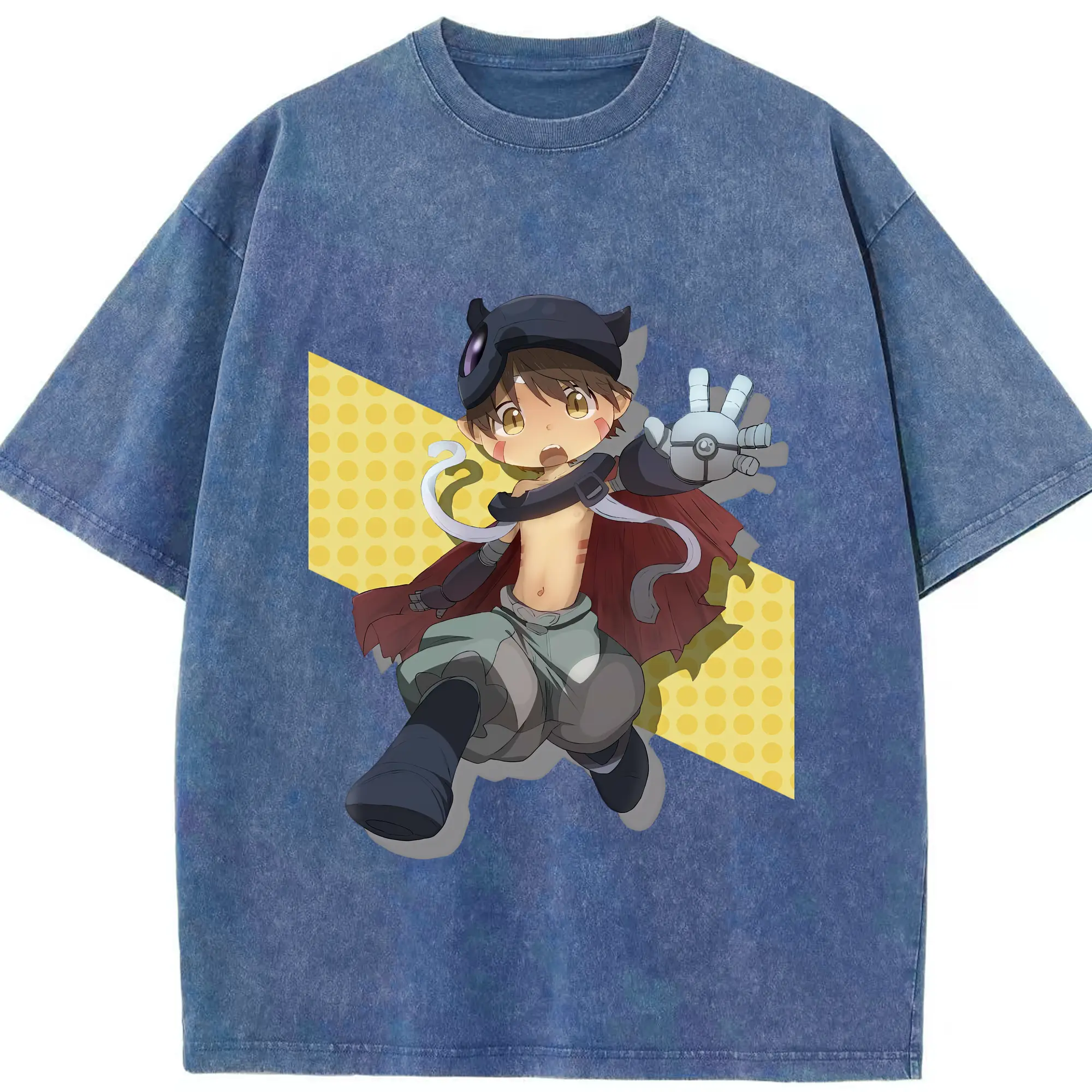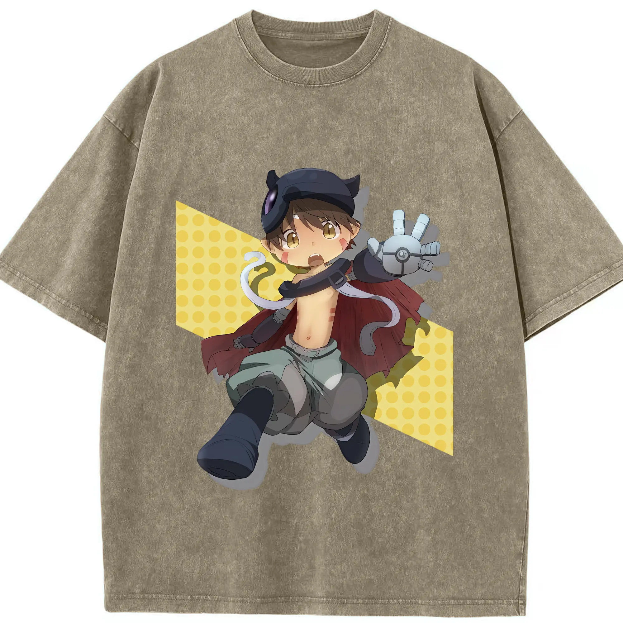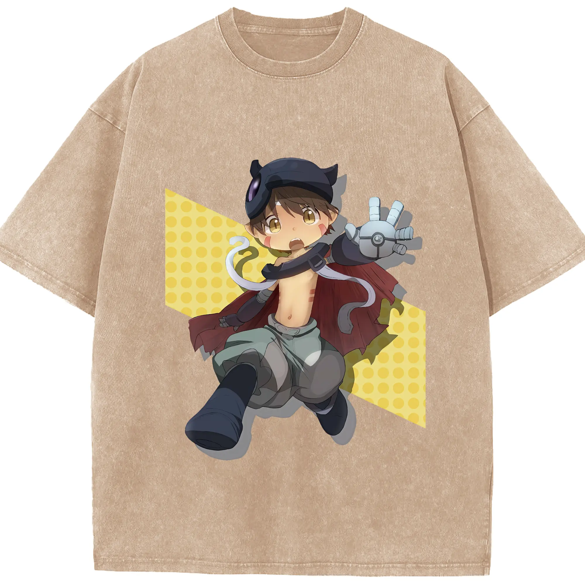 メイドインアビス グッズ,レグ - 綿100% ヴィンテージ風 半袖Tシャツ ・ 背面プリント ・ 柔らか肌触り ・ 通気性 快適 ・ スポーツ カジュアル 外出用