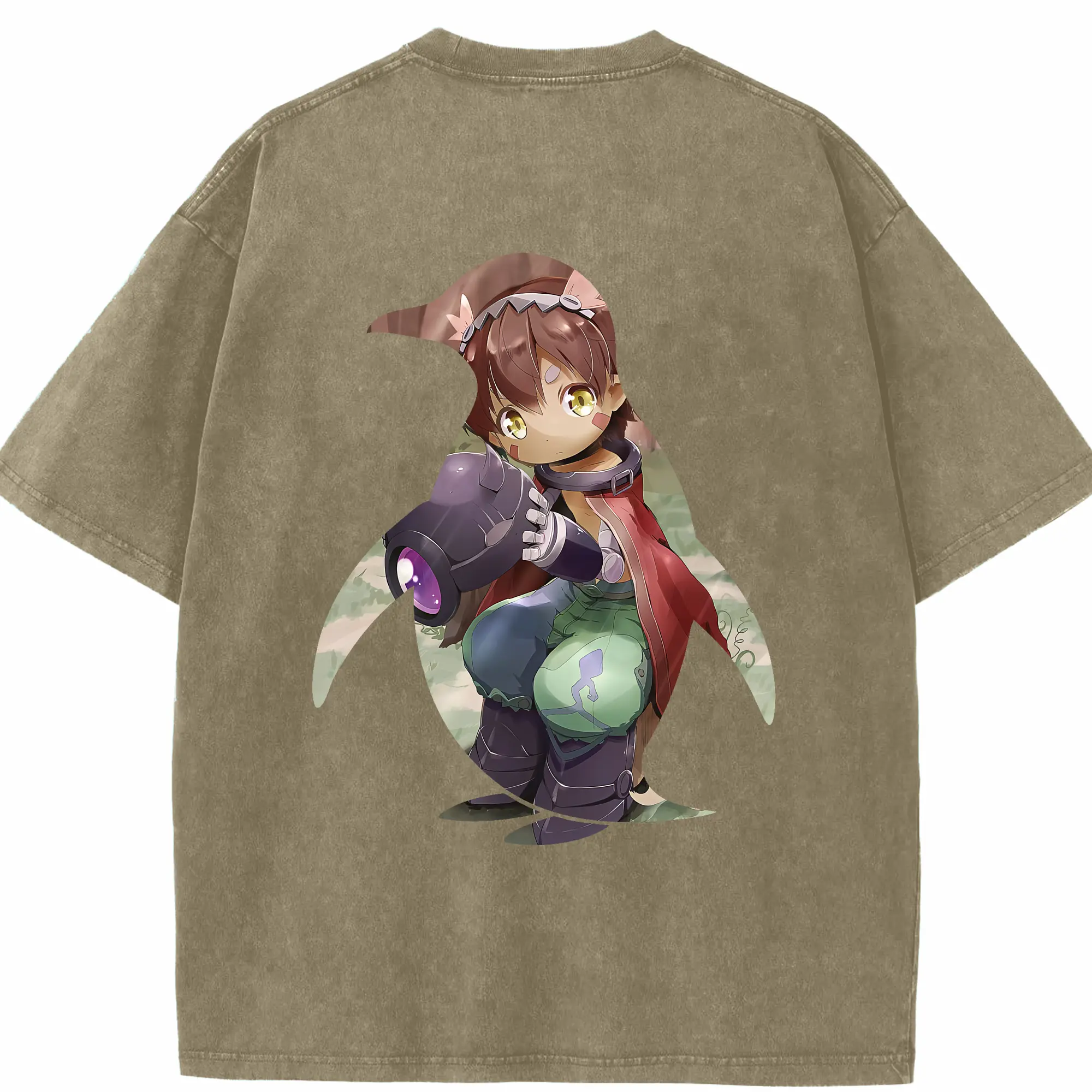 メイドインアビス グッズ,レグ - 綿100% ヴィンテージ風 半袖Tシャツ ・ フロントプリント ・ 柔らか肌触り ・ 通気性 快適 ・ スポーツ カジュアル 外出用