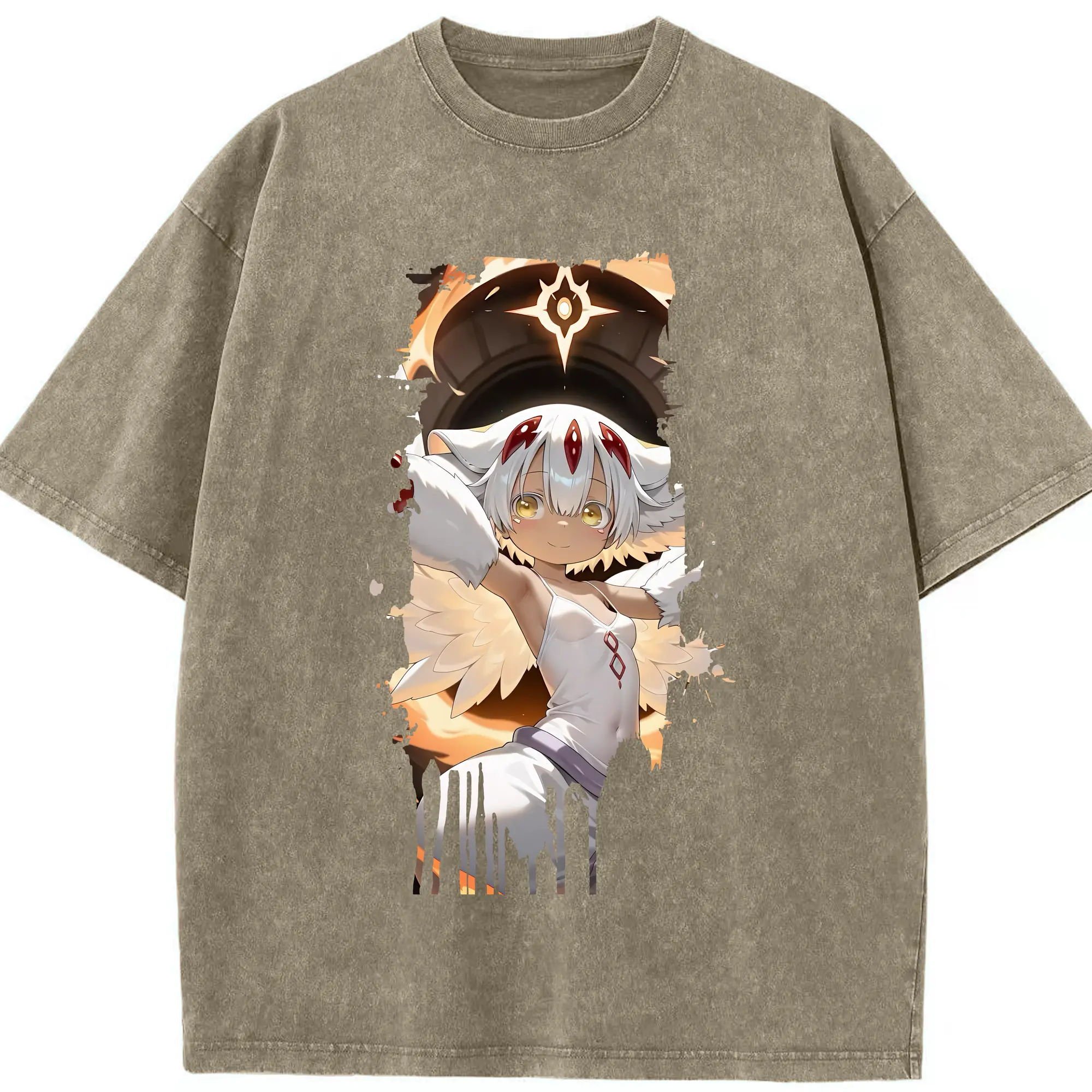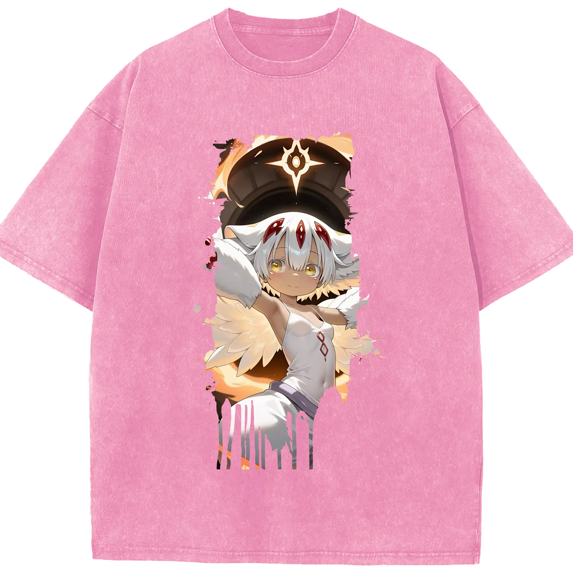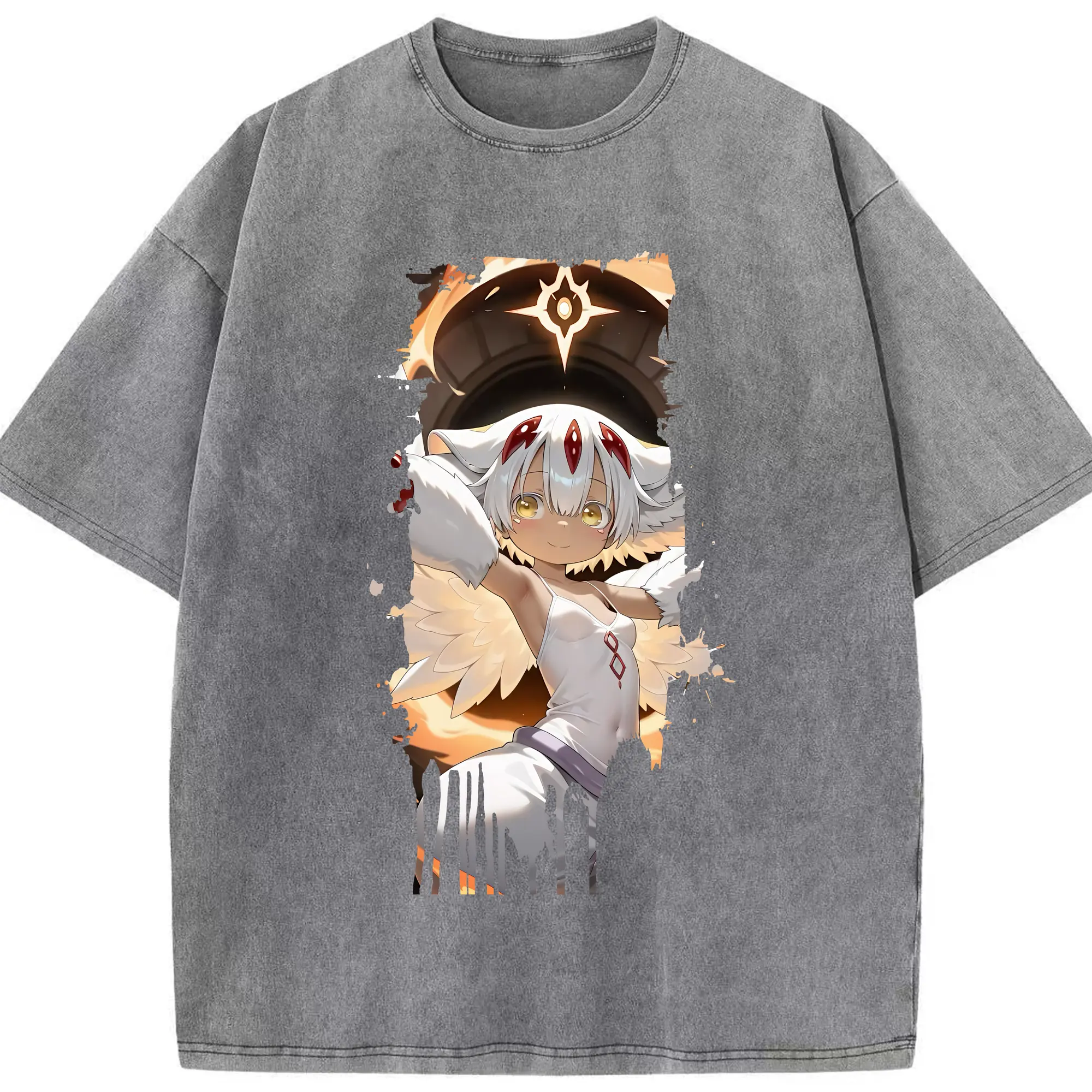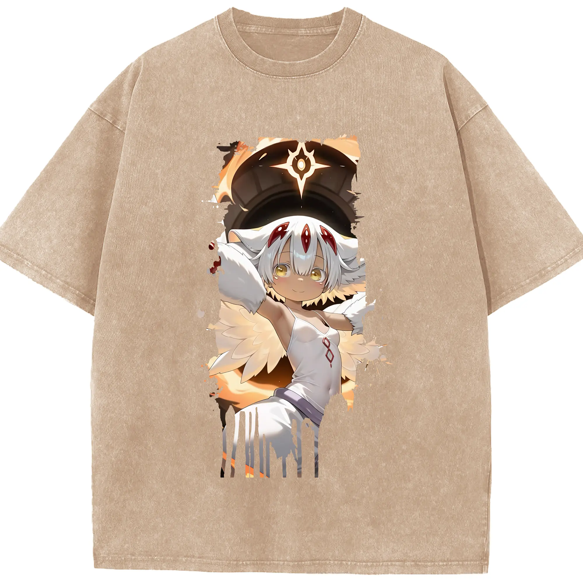 メイドインアビス グッズ,ファプタ - 綿100% ヴィンテージ風 半袖Tシャツ ・ 背面プリント ・ 柔らか肌触り ・ 通気性 快適 ・ スポーツ カジュアル 外出用