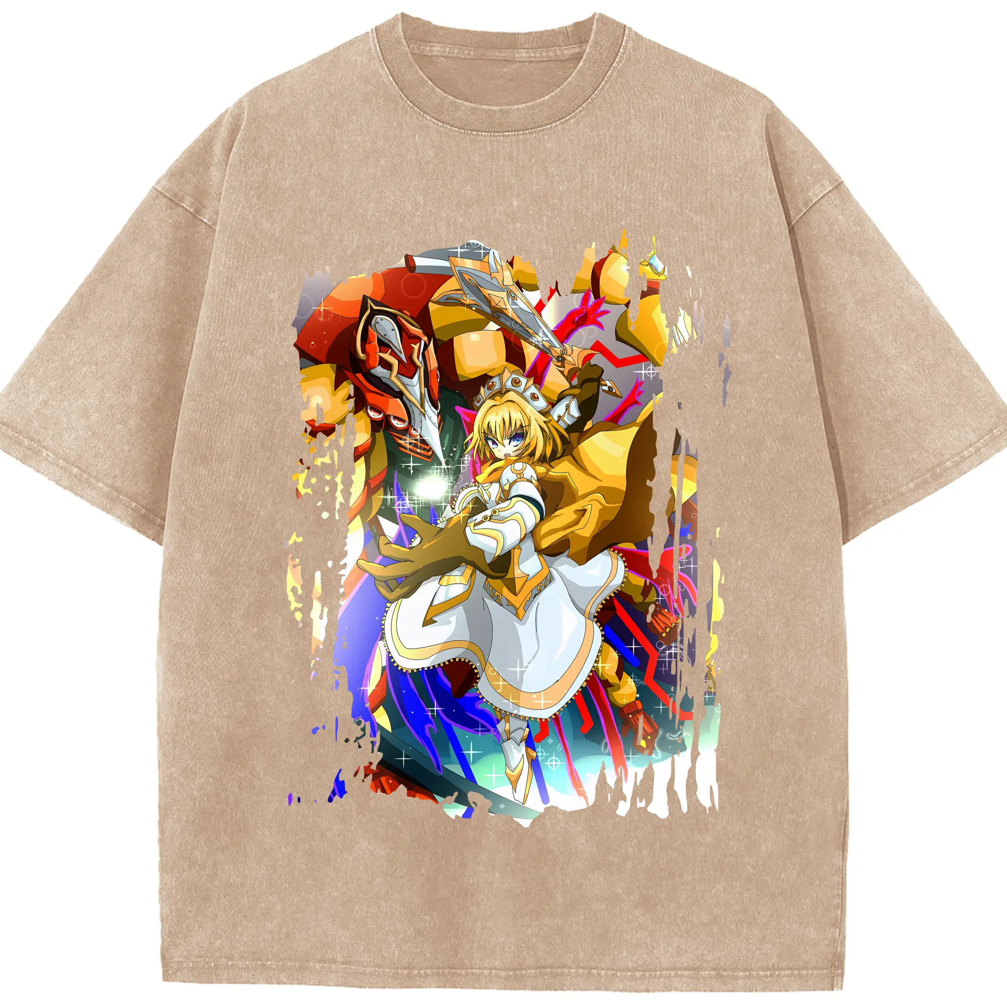 FGO グッズ,オベロン - 綿100% ヴィンテージ風 半袖Tシャツ ・ フロントプリント ・ 柔らか肌触り ・ 通気性 快適 ・ スポーツ カジュアル 外出用