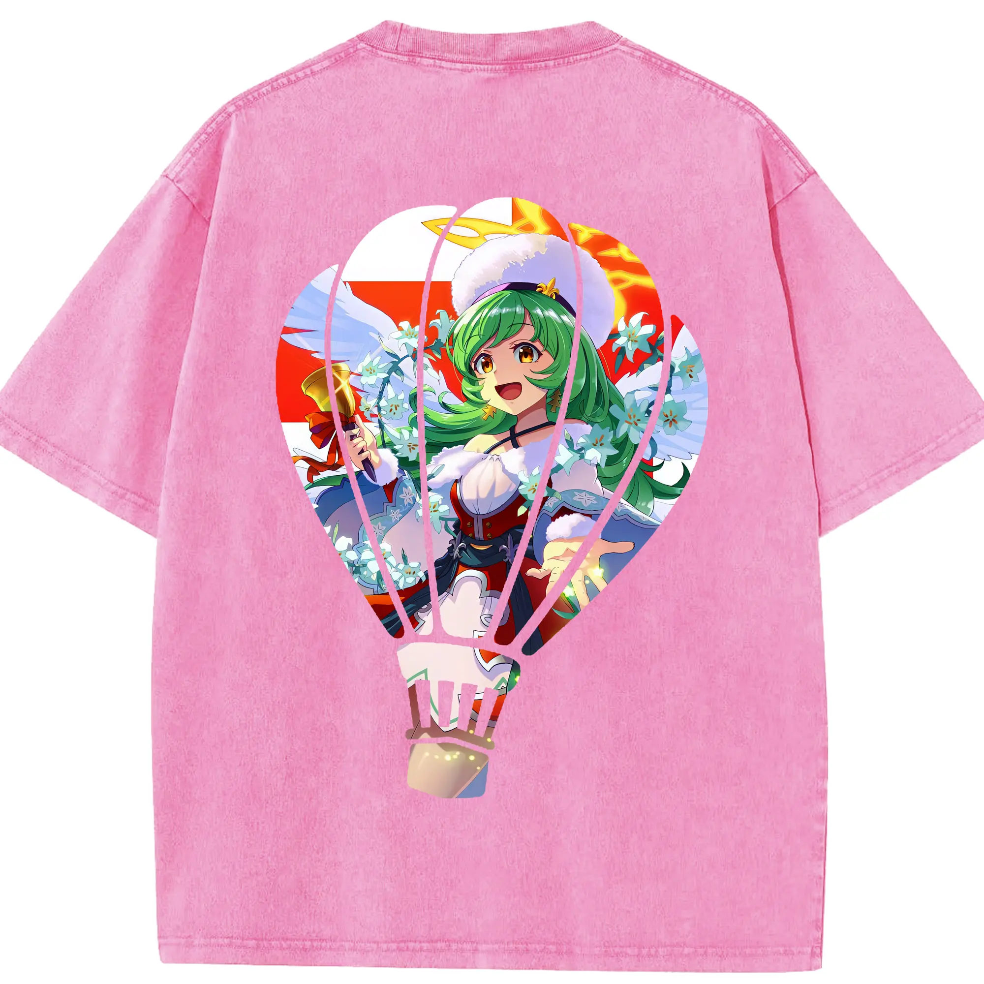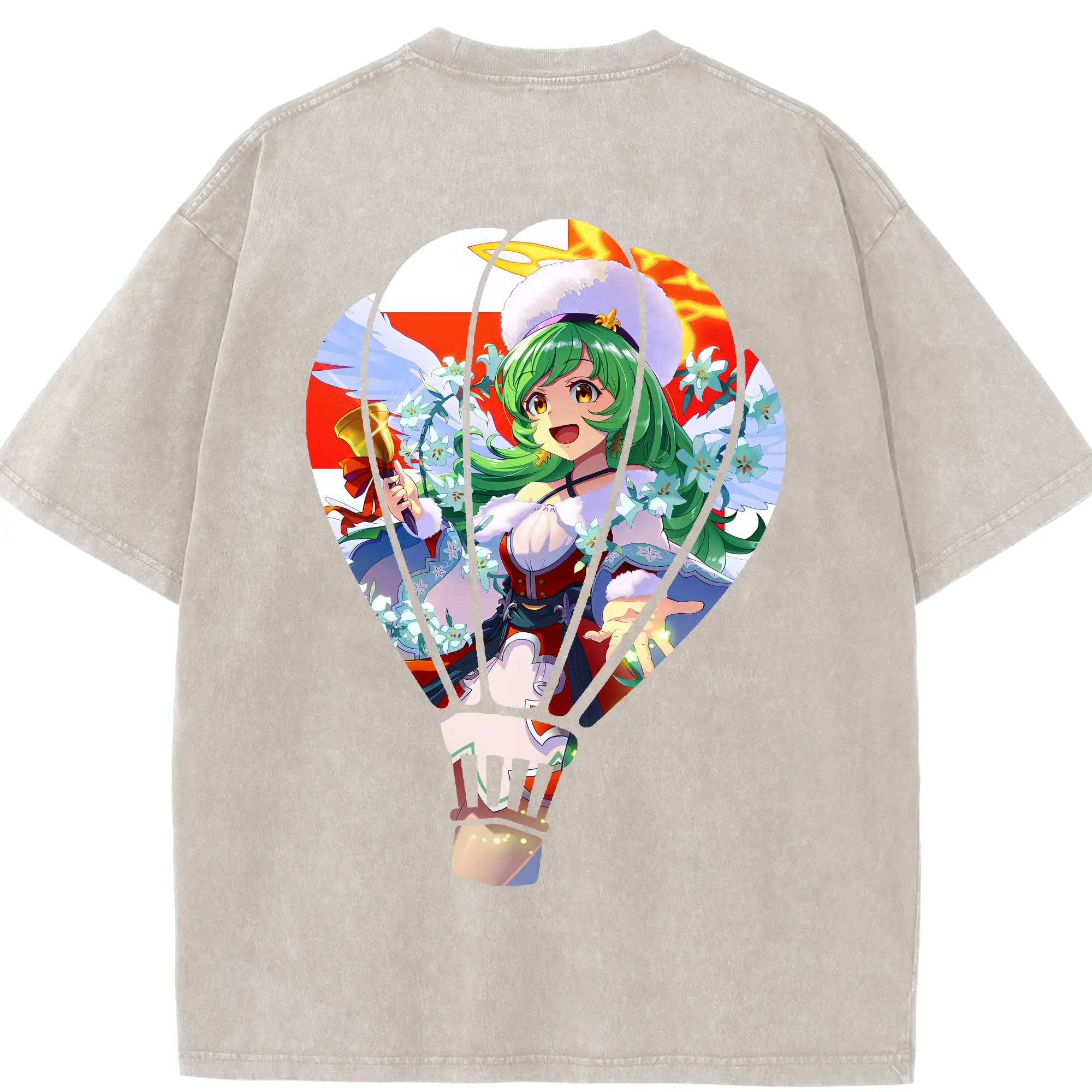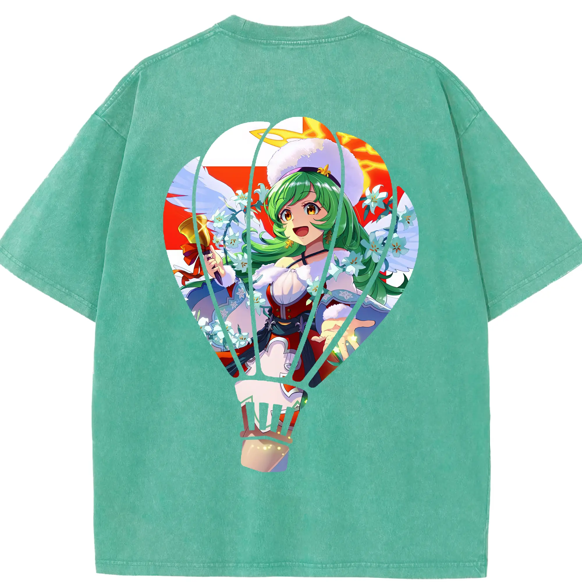 原 神 グッズ フータオ - 綿100% ヴィンテージ風 半袖Tシャツ ・ 背面プリント ・ 柔らか肌触り ・ 通気性 快適 ・ スポーツ カジュアル 外出用