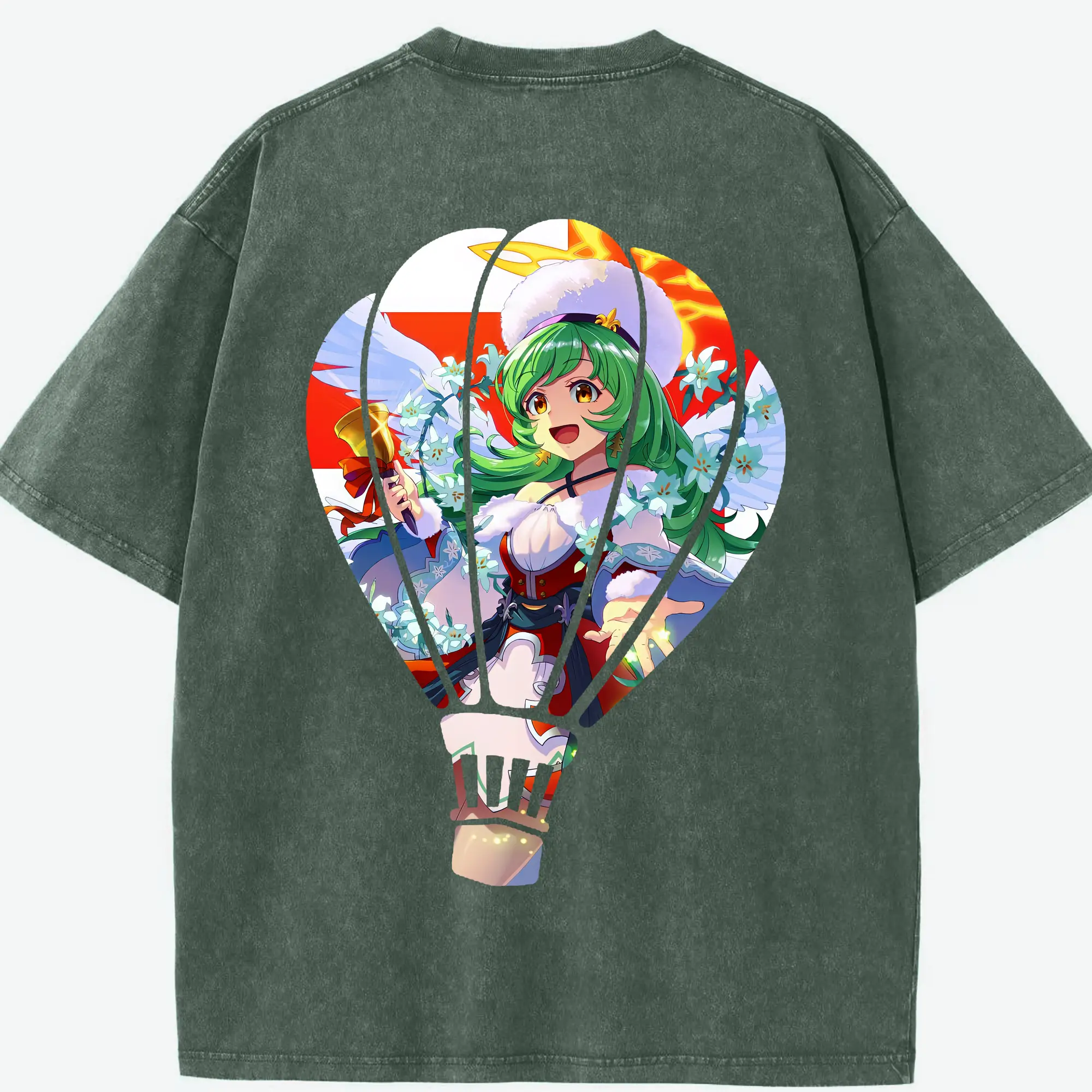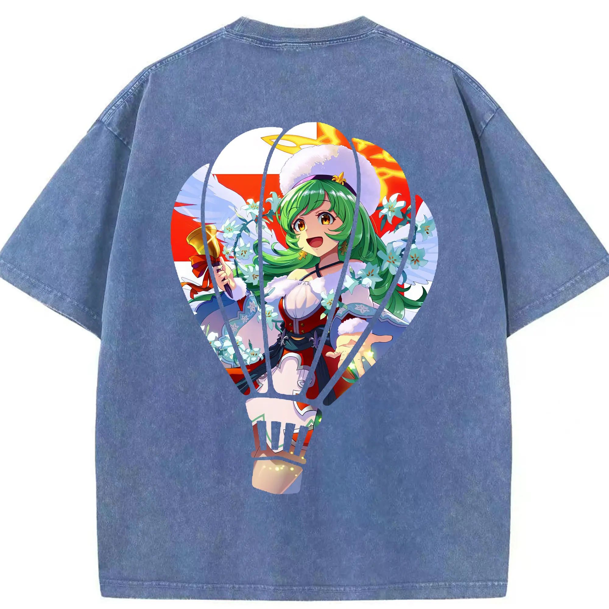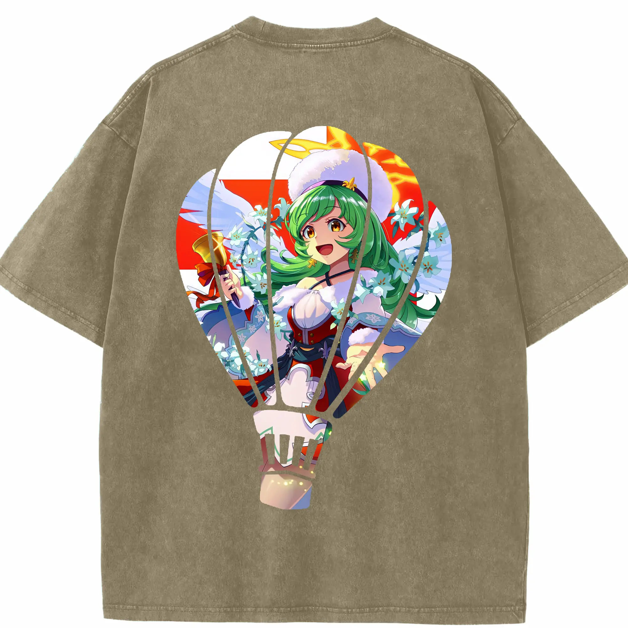 原 神 グッズ フータオ - 綿100% ヴィンテージ風 半袖Tシャツ ・ 背面プリント ・ 柔らか肌触り ・ 通気性 快適 ・ スポーツ カジュアル 外出用