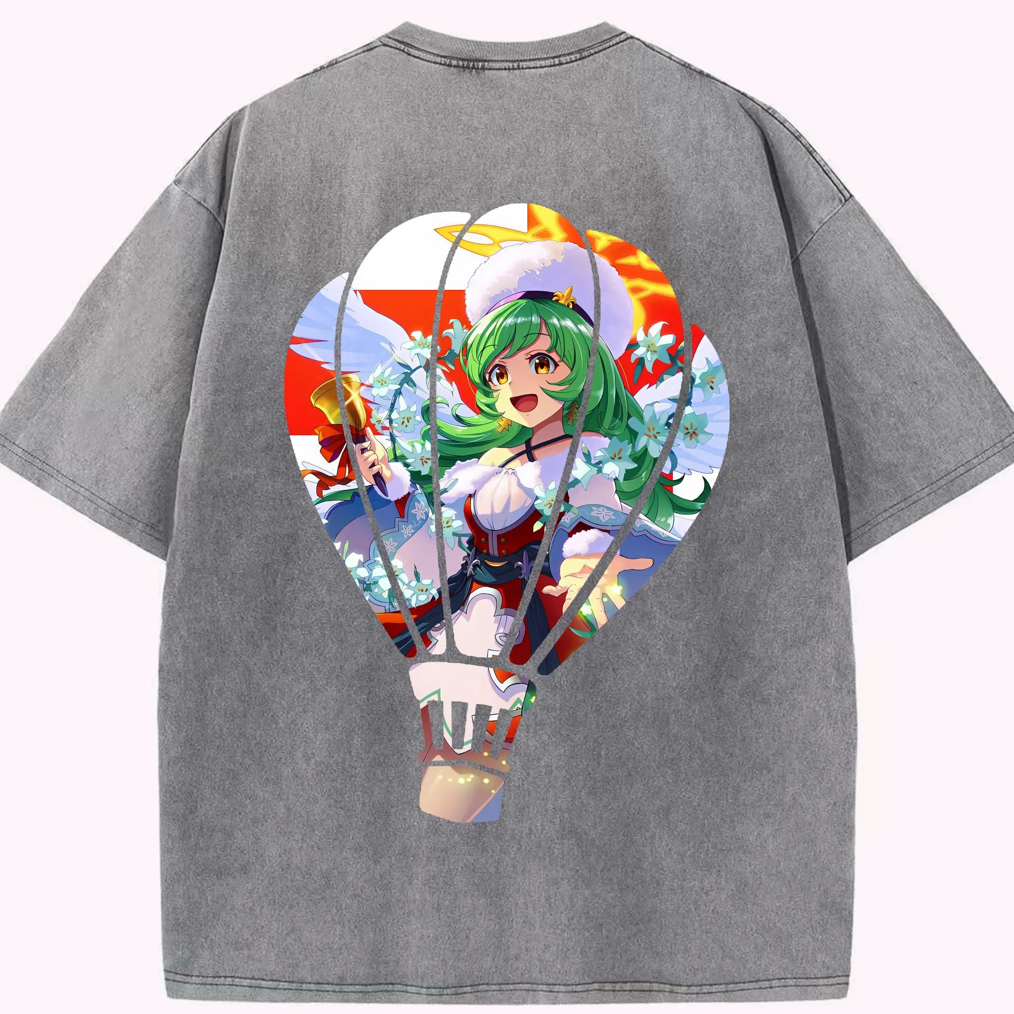 原 神 グッズ 神里綾華 - 綿100% ヴィンテージ風 半袖Tシャツ ・ 背面プリント ・ 柔らか肌触り ・ 通気性 快適 ・ スポーツ カジュアル 外出用