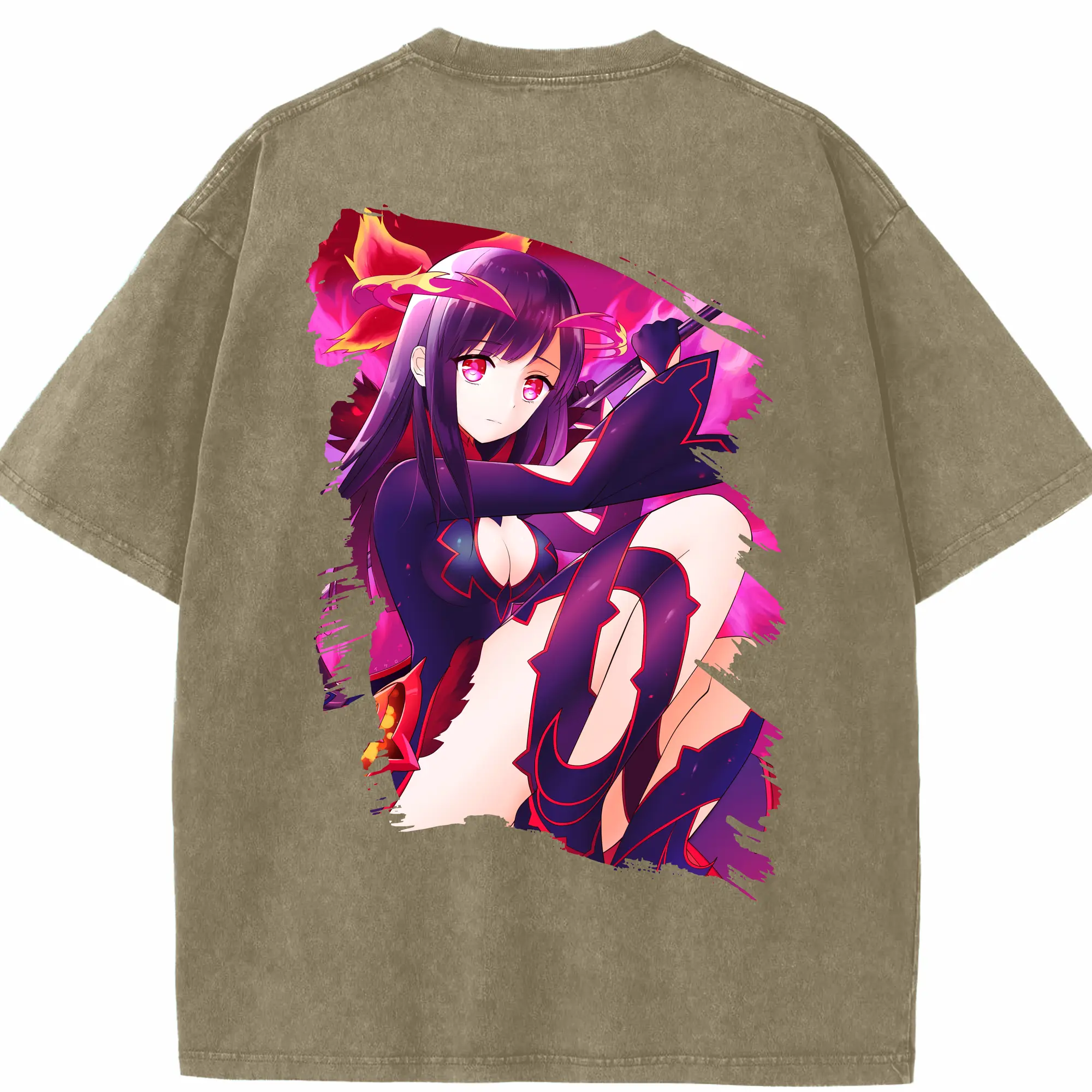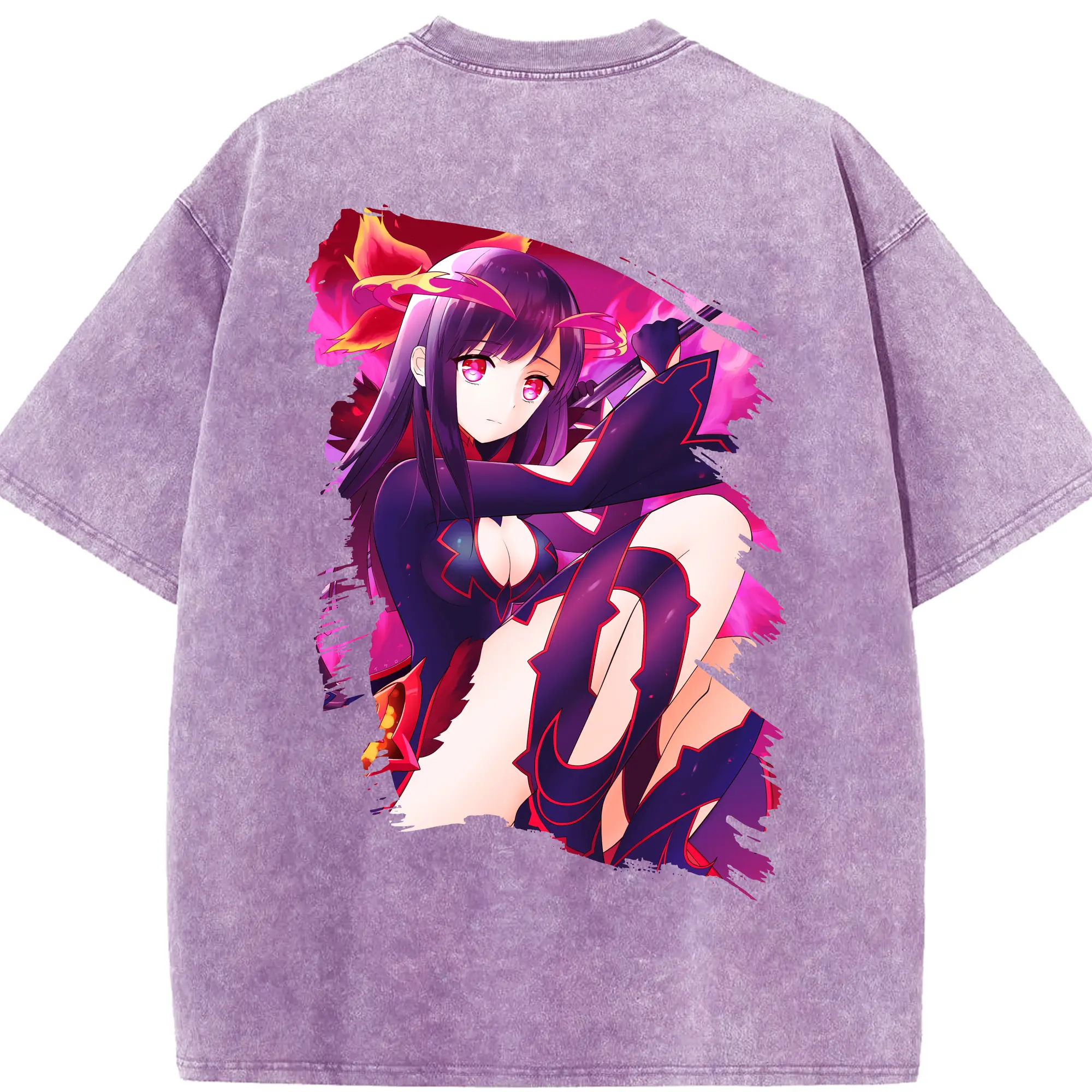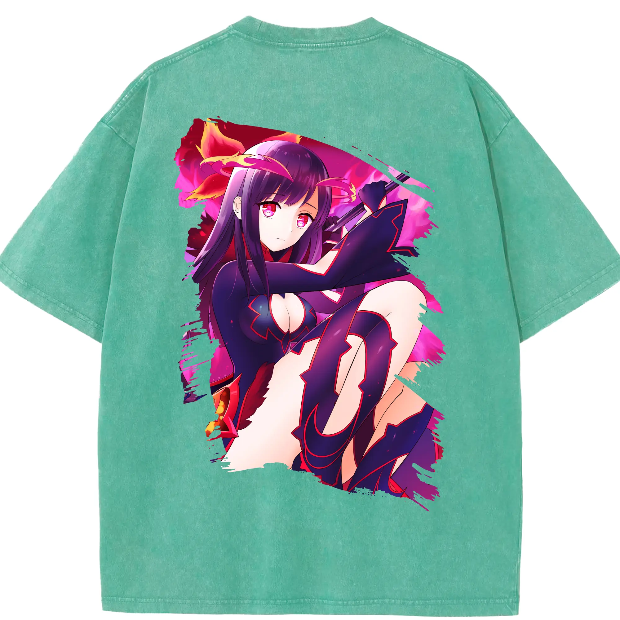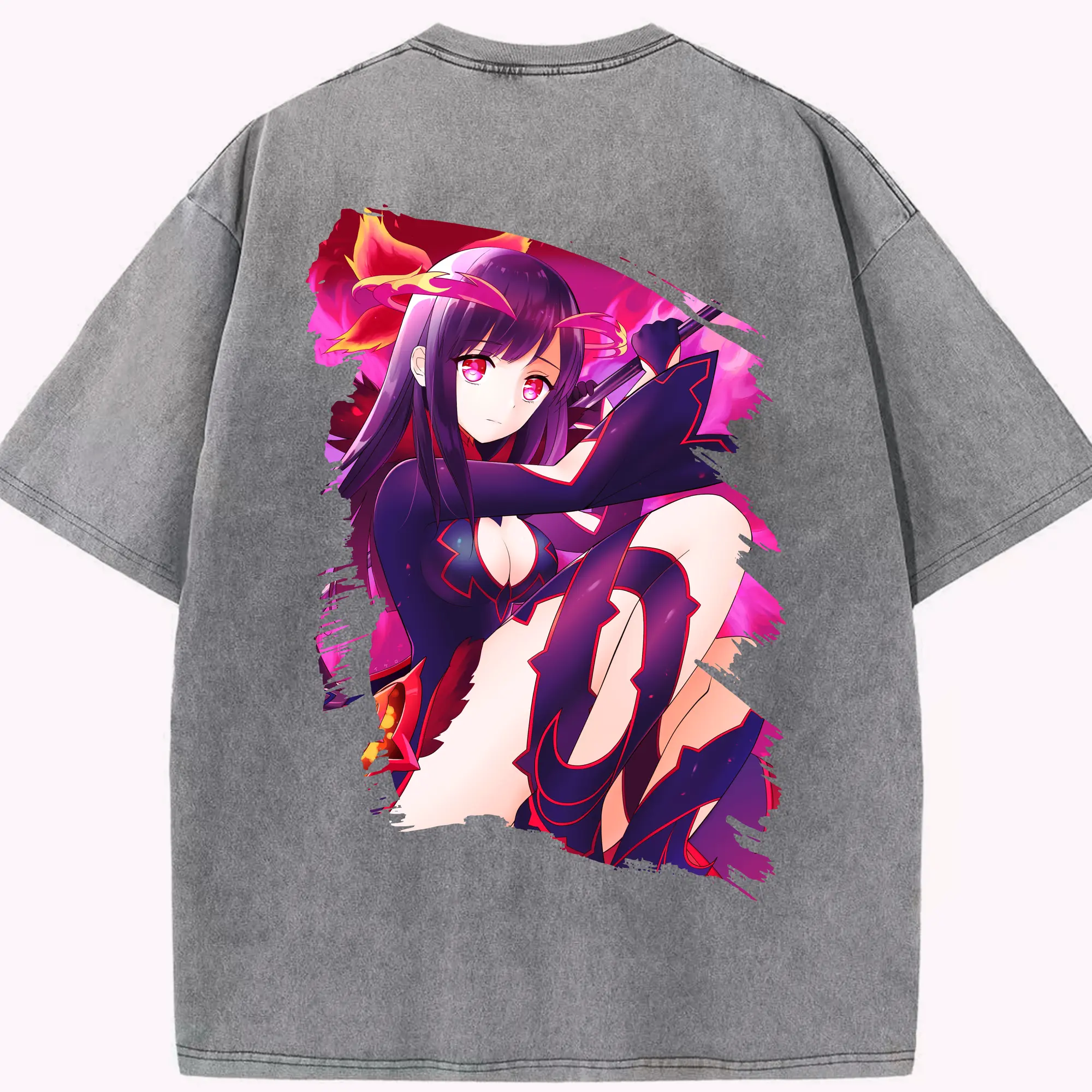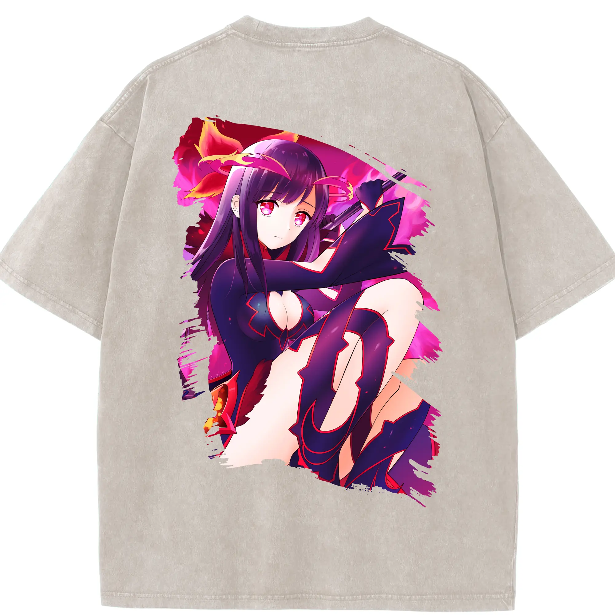 FGO グッズ,オベロン - 綿100% ヴィンテージ風 半袖Tシャツ ・ 背面プリント ・ 柔らか肌触り ・ 通気性 快適 ・ スポーツ カジュアル 外出用