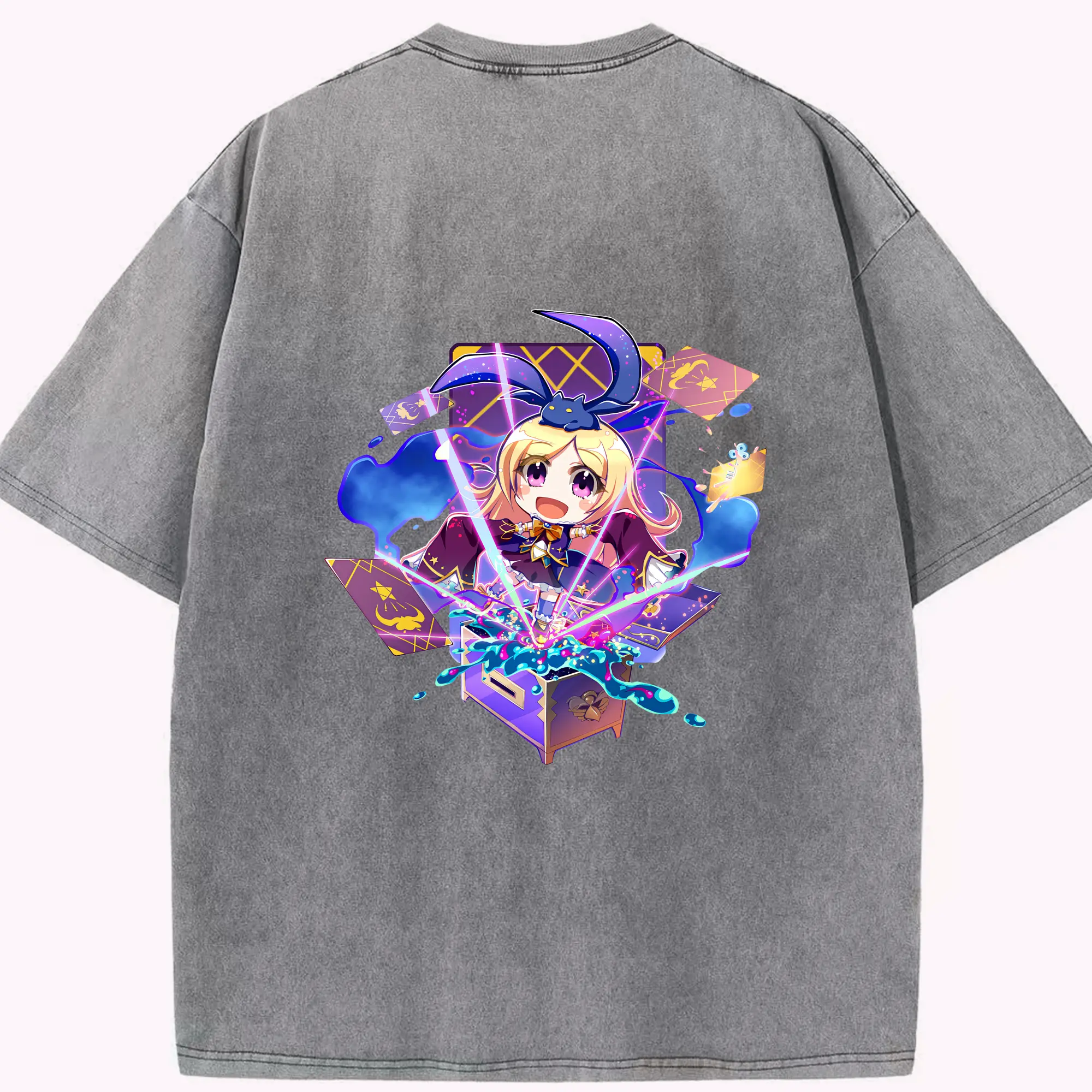 ラブブ グッズ ラブブ - 綿100% ヴィンテージ風 半袖Tシャツ ・ 背面プリント ・ 柔らか肌触り ・ 通気性 快適 ・ スポーツ カジュアル 外出用
