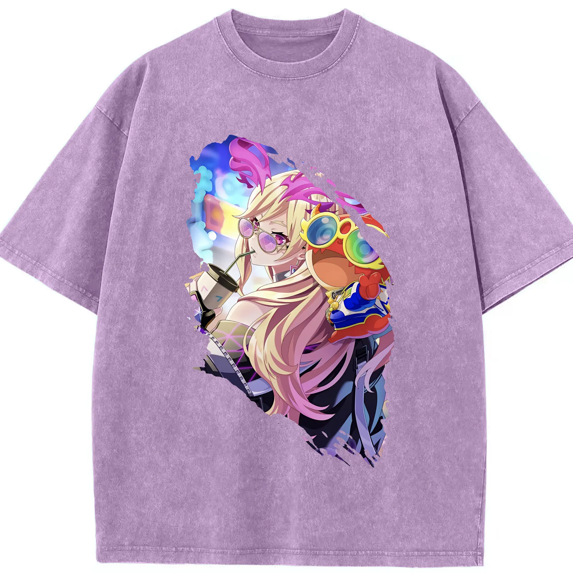 アイカツ グッズ 氷上 スミレ - 綿100% ヴィンテージ風 半袖Tシャツ ・ フロントプリント ・ 柔らか肌触り ・ 通気性 快適 ・ スポーツ カジュアル 外出用