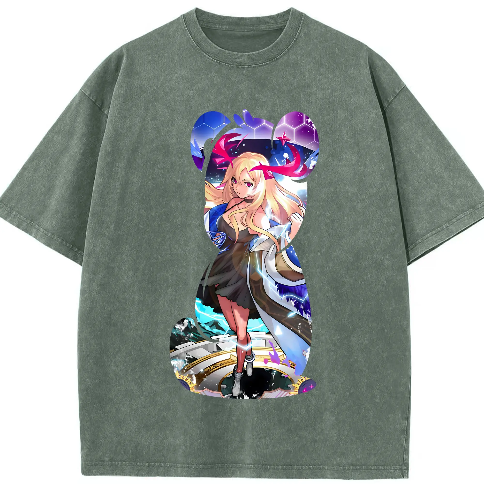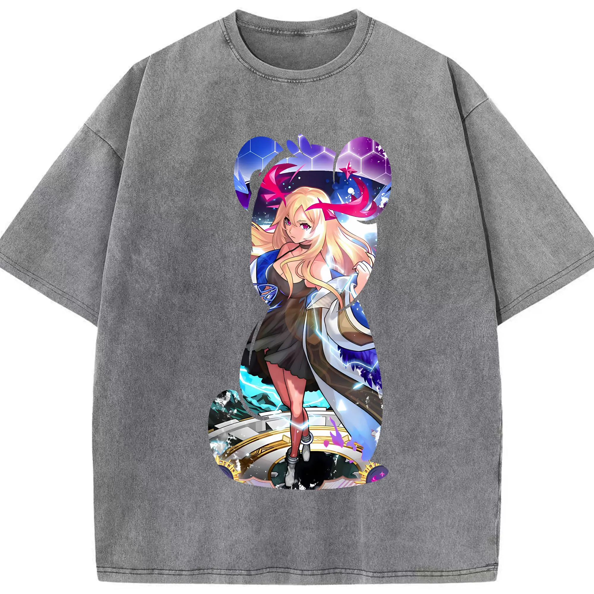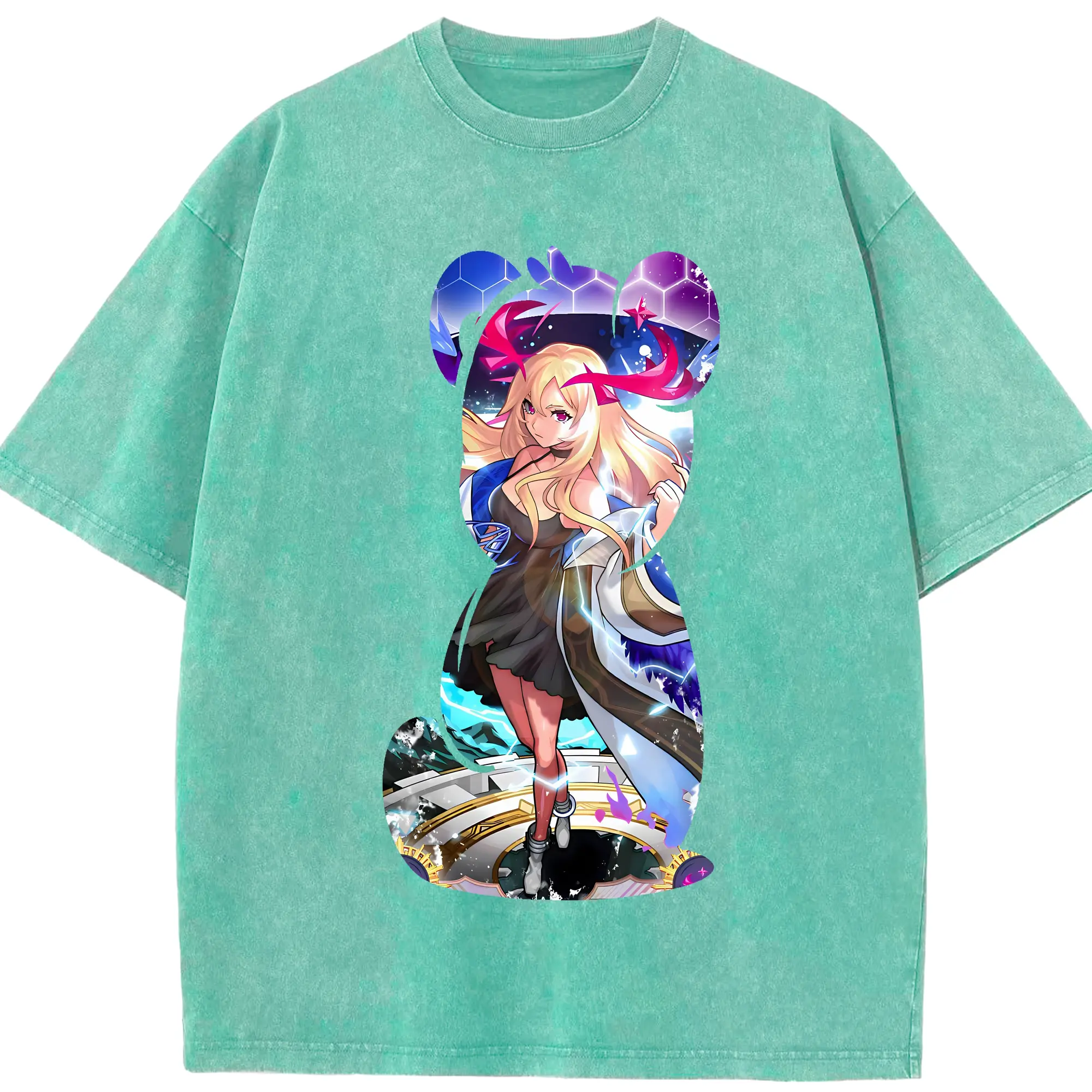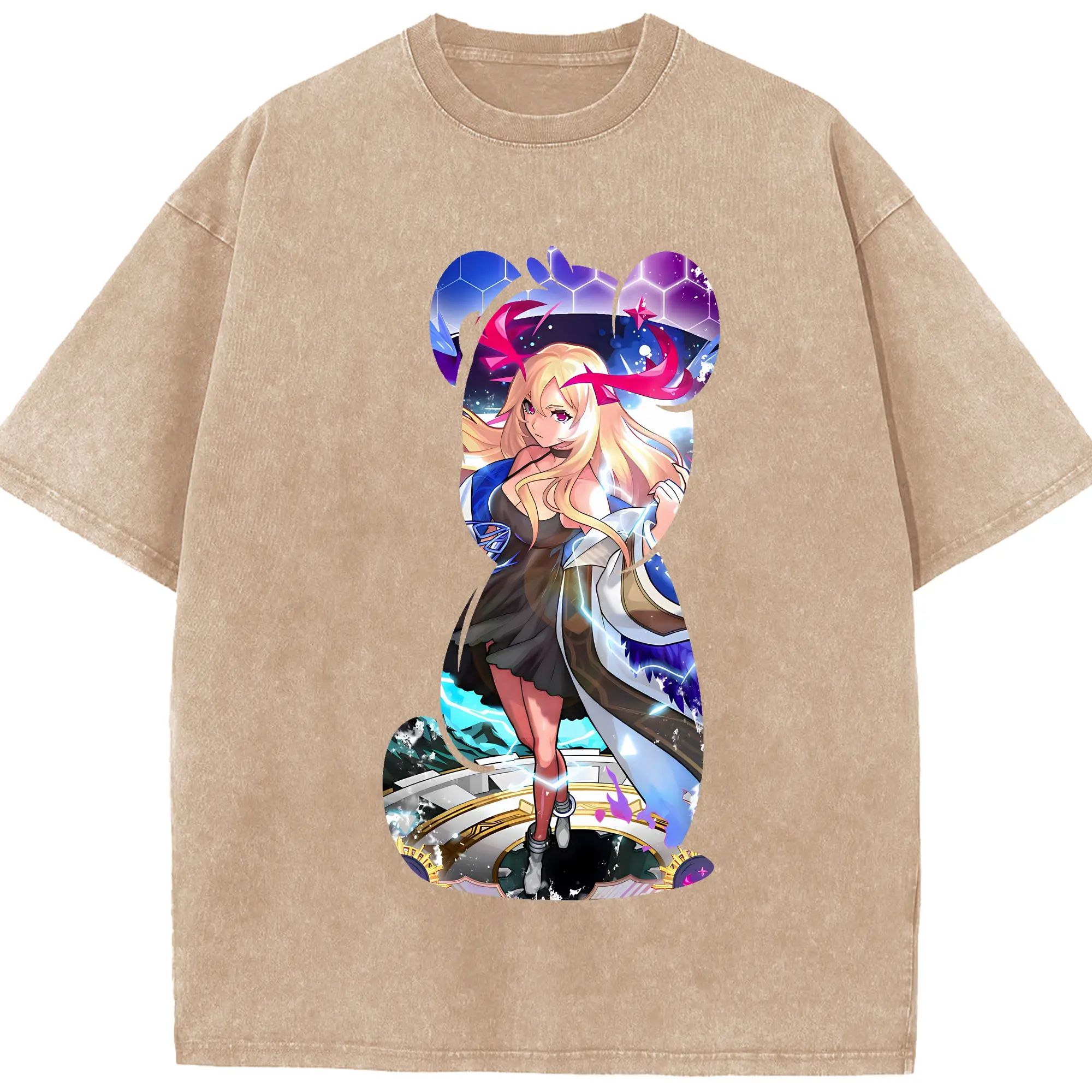 オーバーロード グッズ アルベド - 綿100% ヴィンテージ風 半袖Tシャツ ・ フロントプリント ・ 柔らか肌触り ・ 通気性 快適 ・ スポーツ カジュアル 外出用