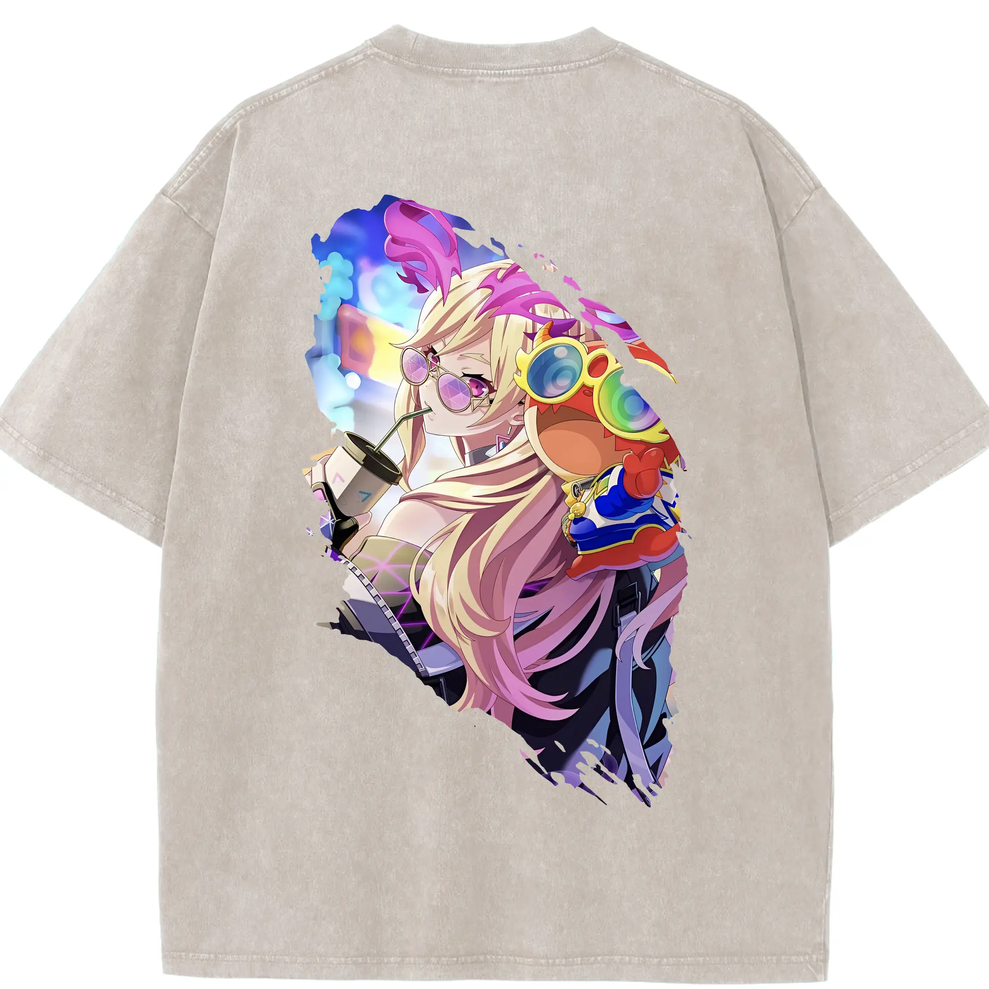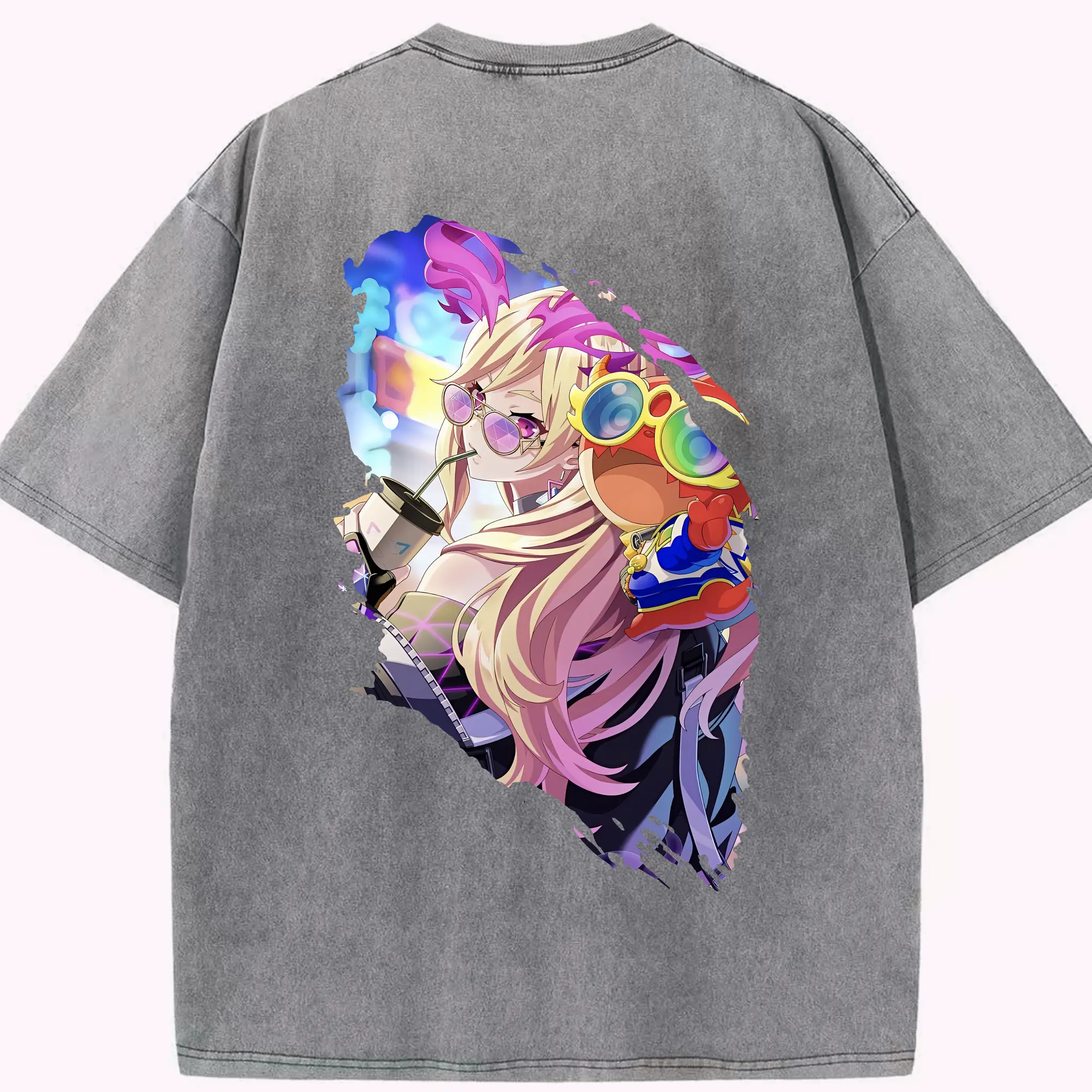 サンリオ グッズ,ハンギョドン - 綿100% ヴィンテージ風 半袖Tシャツ ・ 背面プリント ・ 柔らか肌触り ・ 通気性 快適 ・ スポーツ カジュアル 外出用