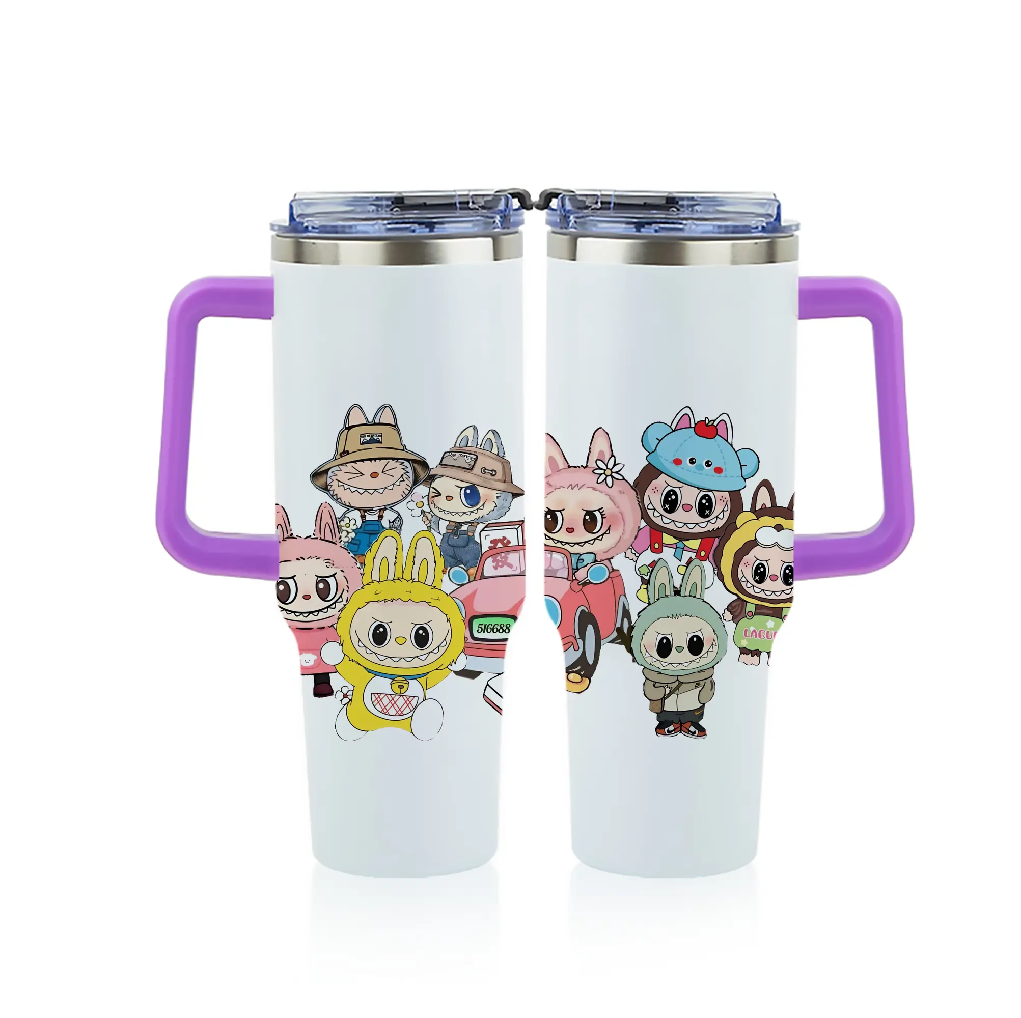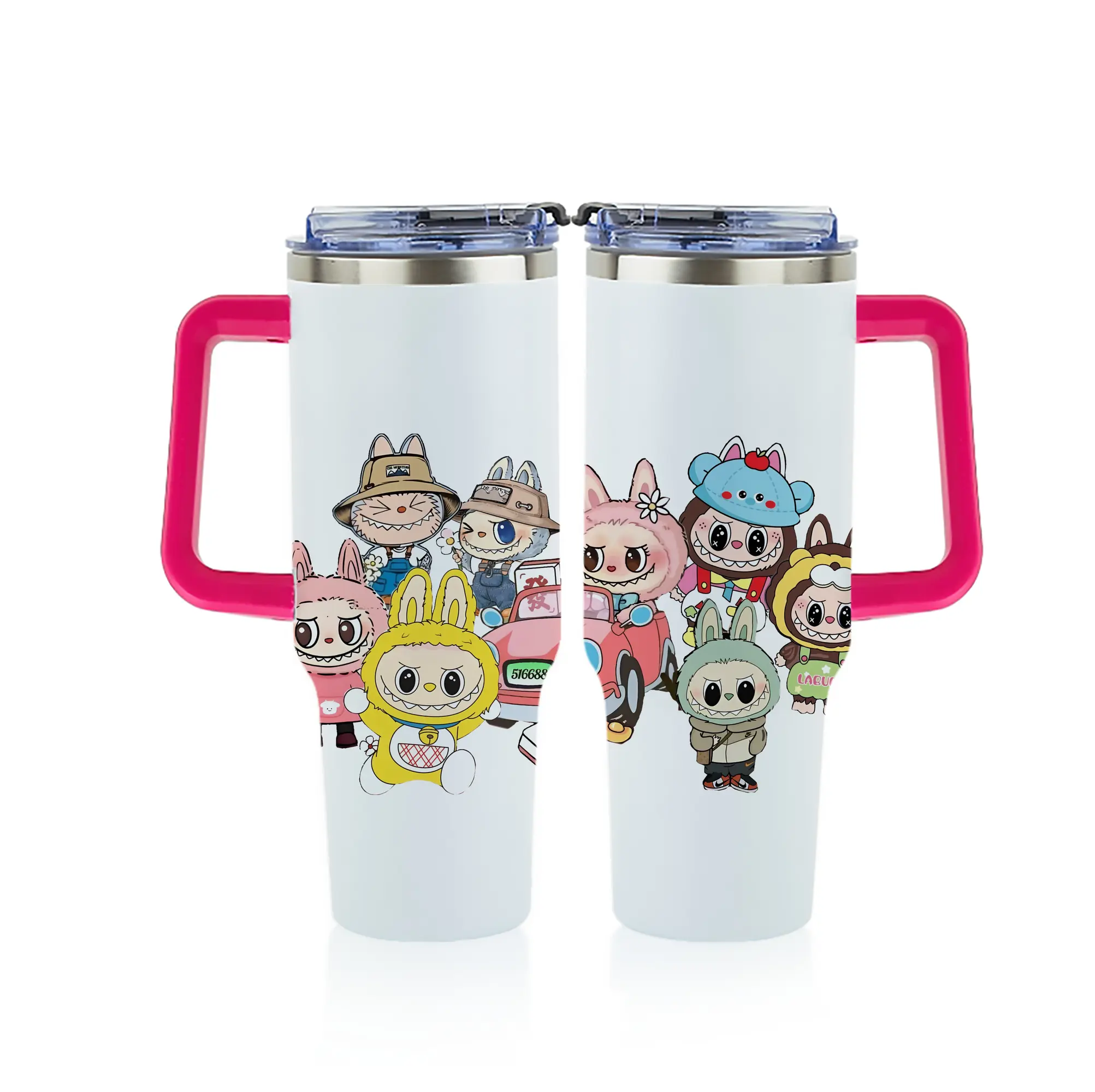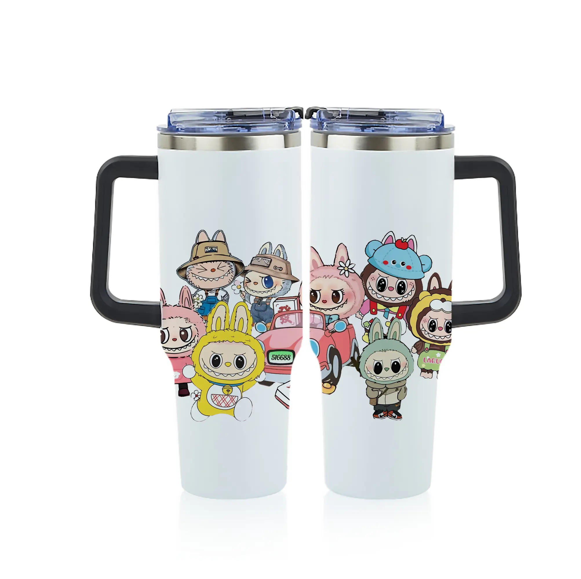 ラブブ グッズ ジモモ - 1200mL フルプリント車用タンブラー ・ 304ステンレス 内側 ・ 201ステンレス 外側 ・ 保温 保冷 ・ 通勤 ドライブ アウトドア用
