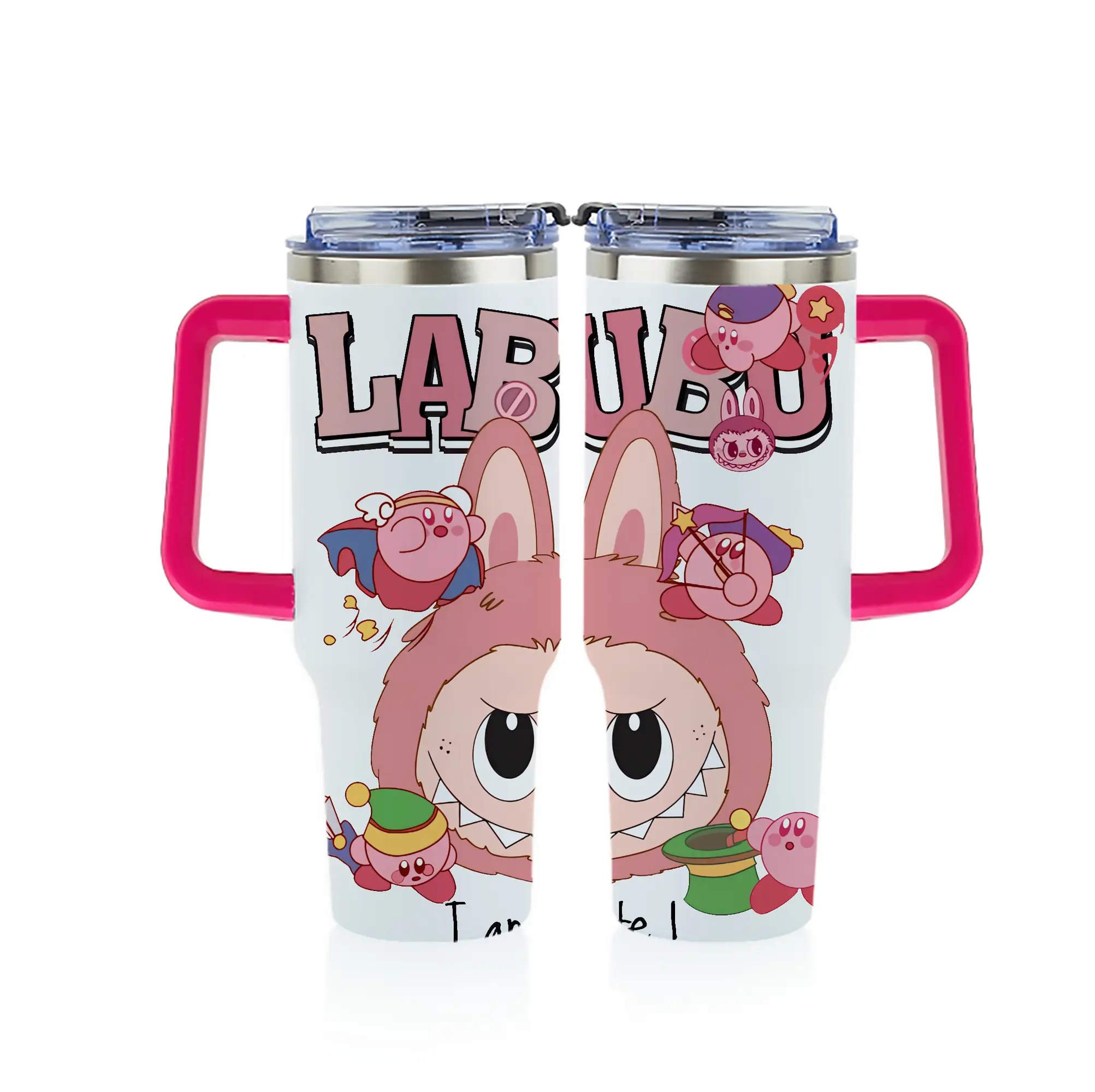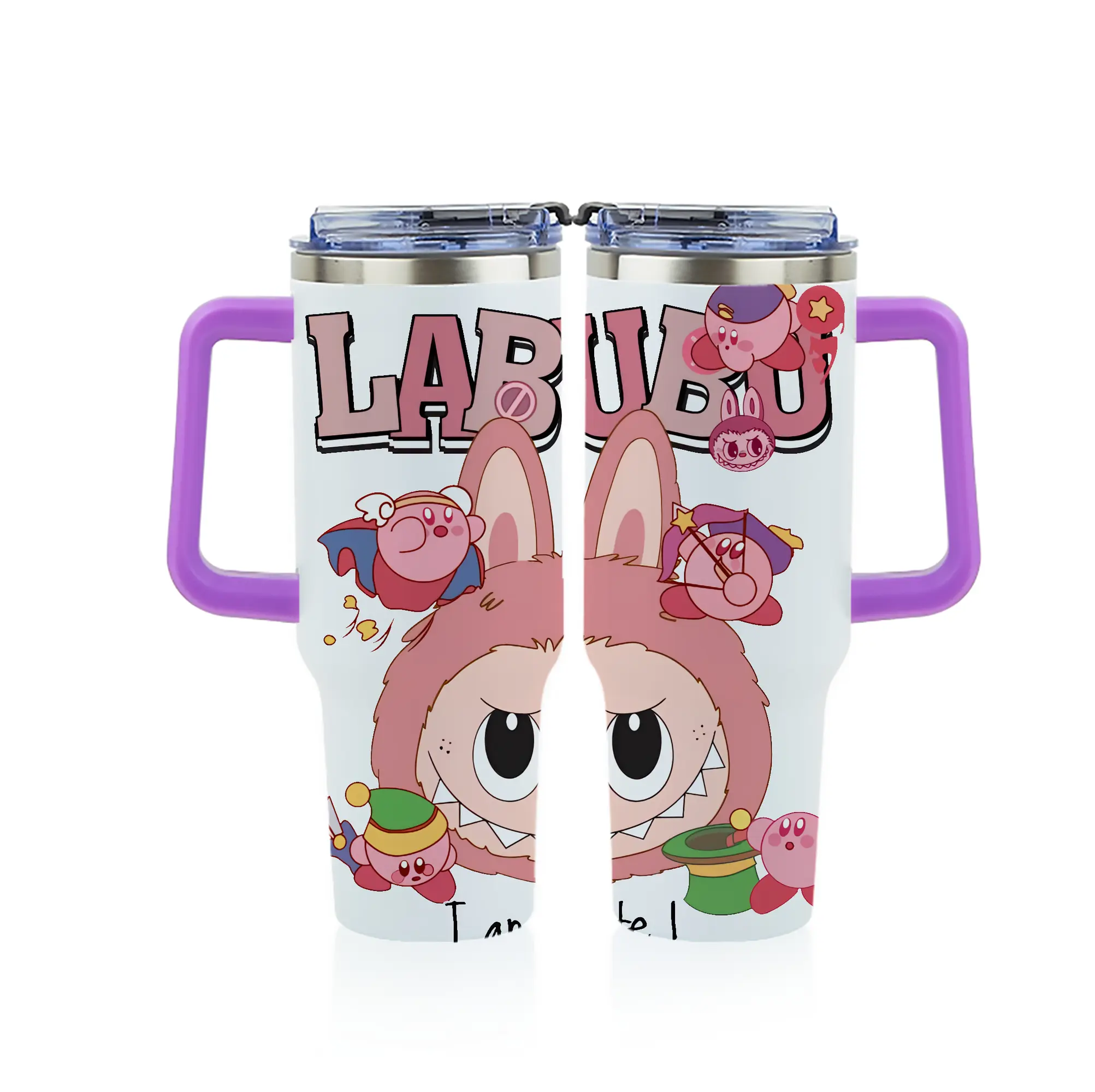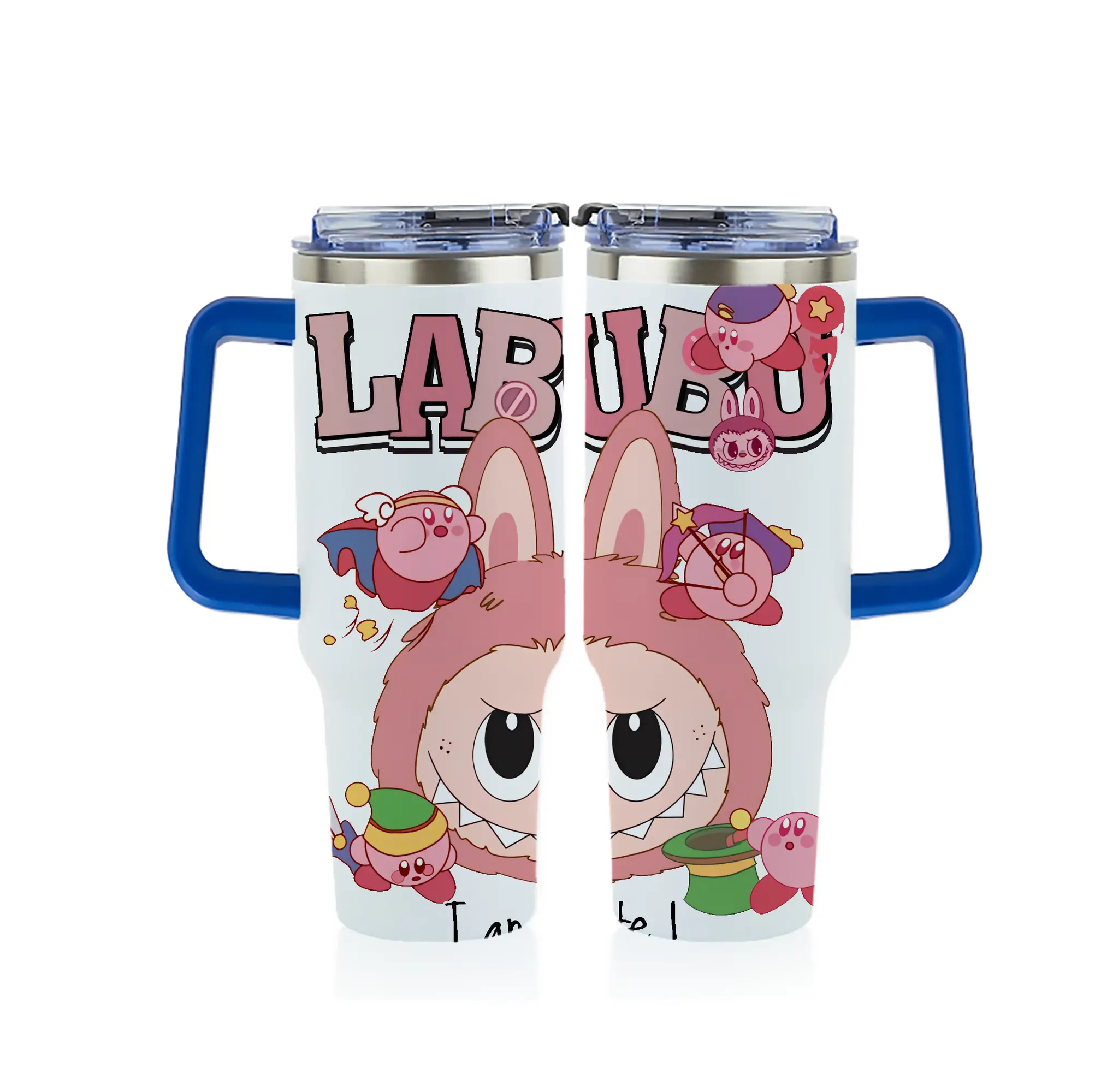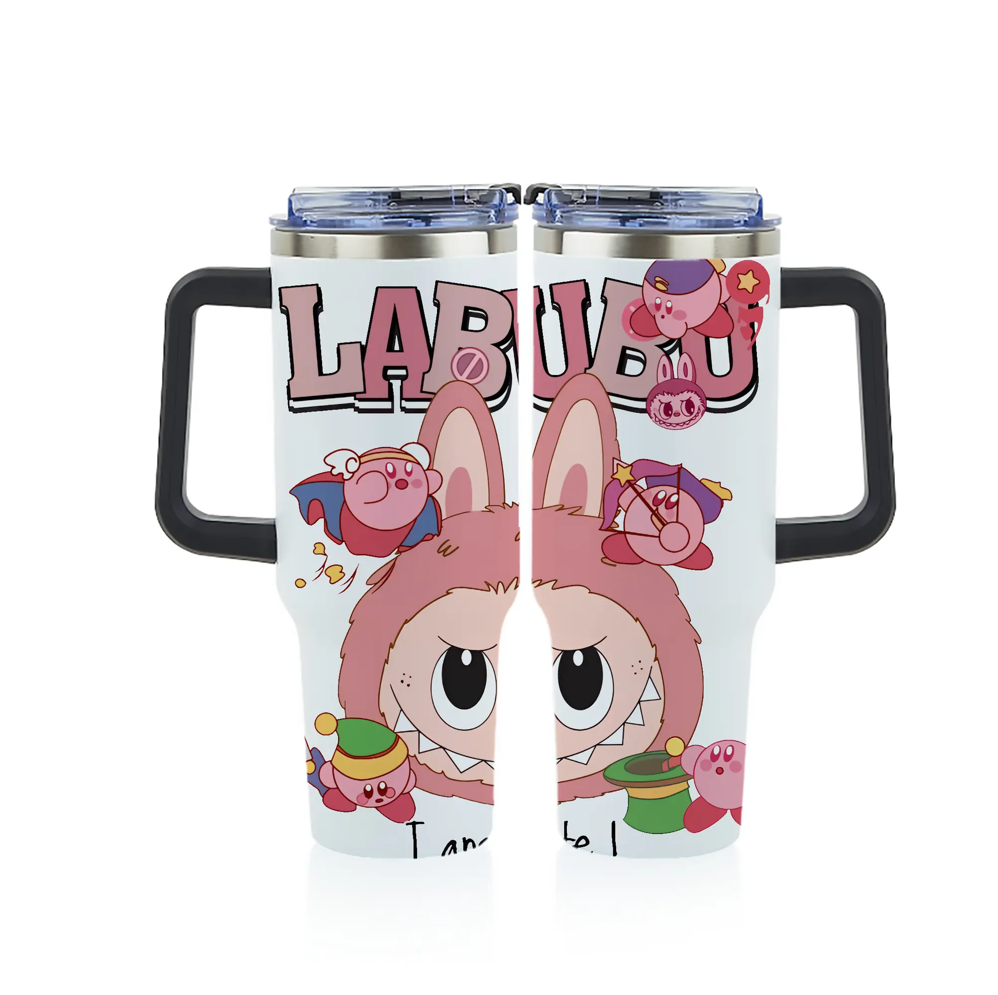 ラブブ グッズ ジモモ - 1200mL フルプリント車用タンブラー ・ 304ステンレス 内側 ・ 201ステンレス 外側 ・ 保温 保冷 ・ 通勤 ドライブ アウトドア用