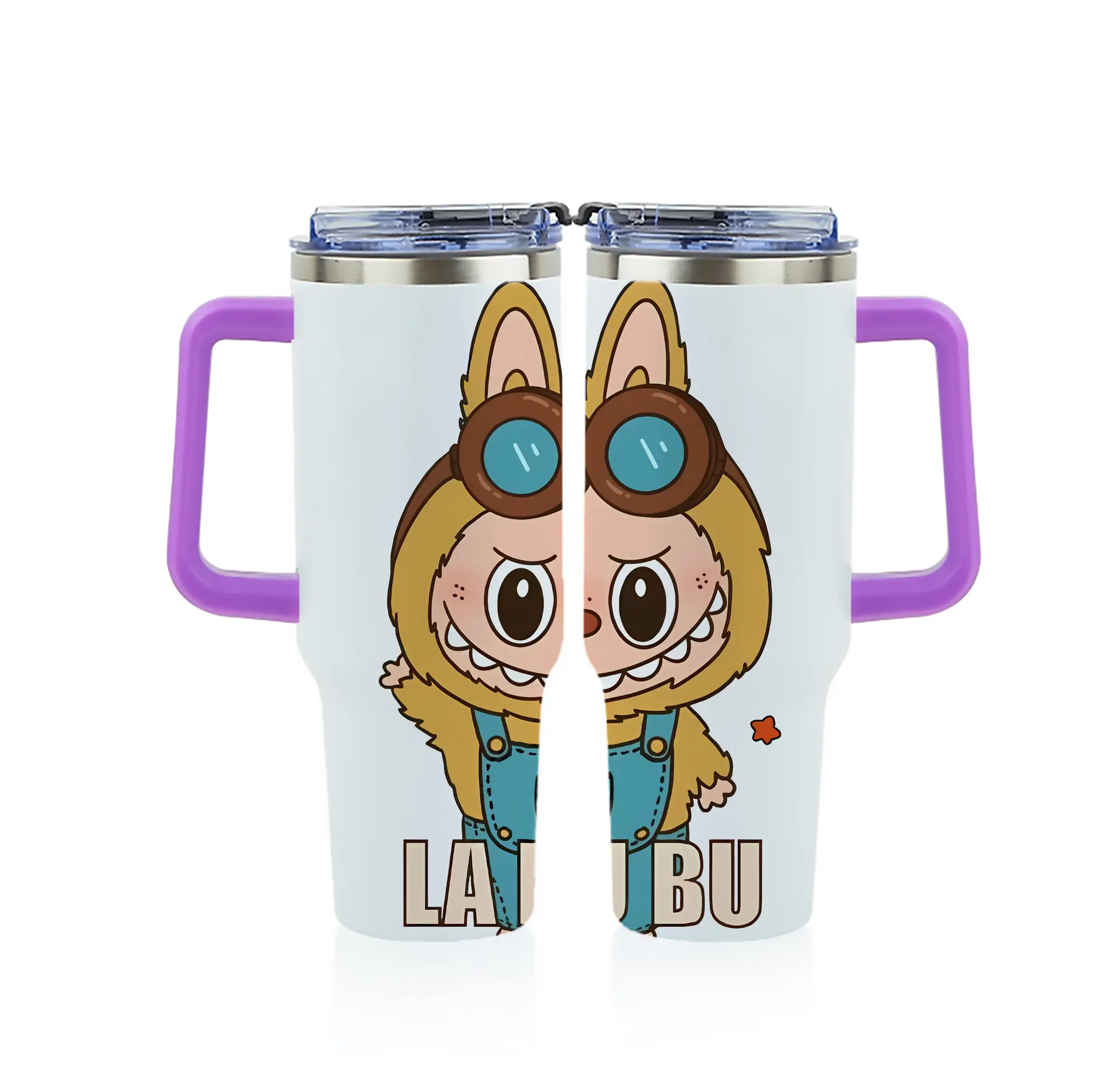 ラブブ グッズ ジモモ - 1200mL フルプリント車用タンブラー ・ 304ステンレス 内側 ・ 201ステンレス 外側 ・ 保温 保冷 ・ 通勤 ドライブ アウトドア用