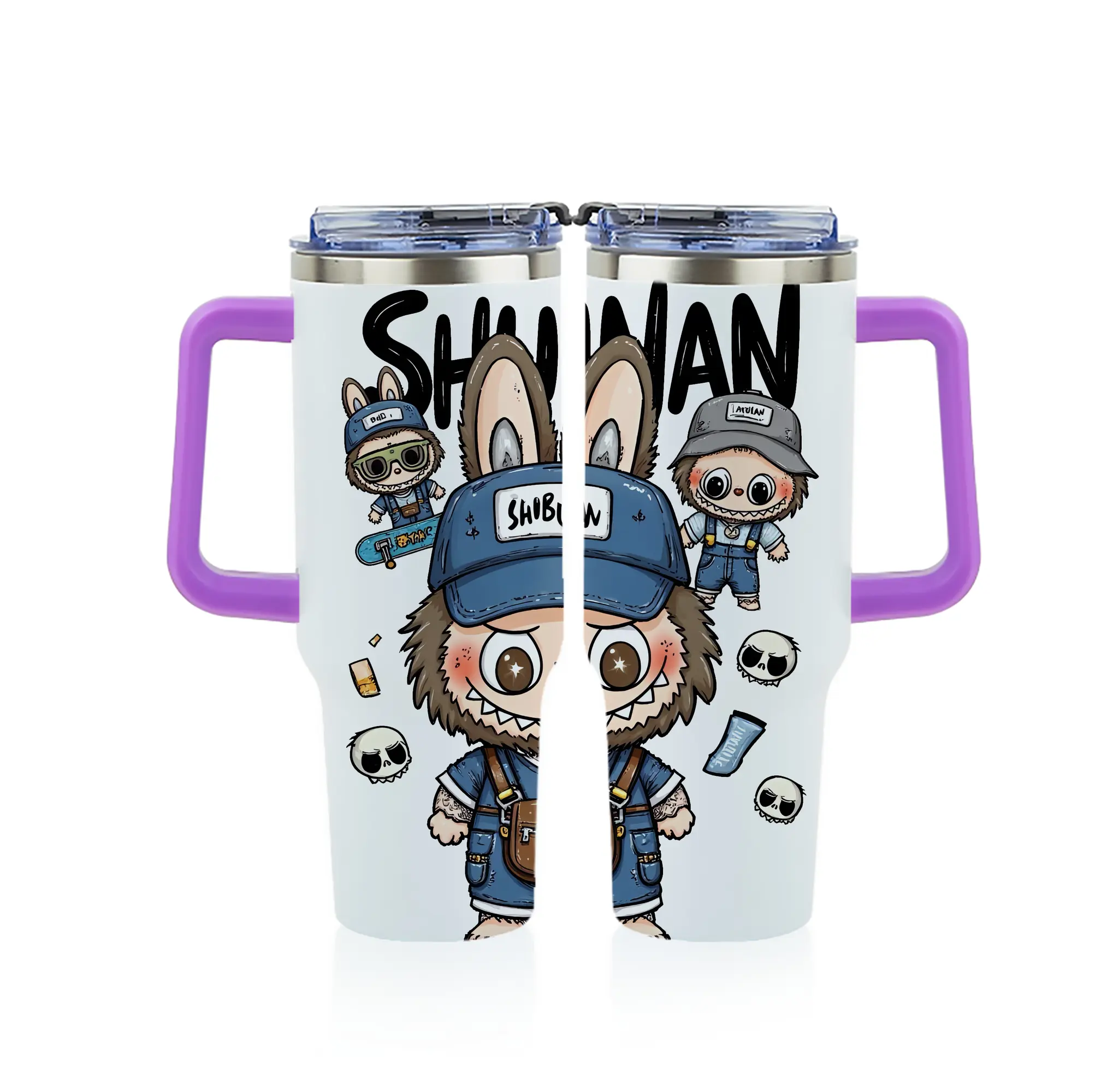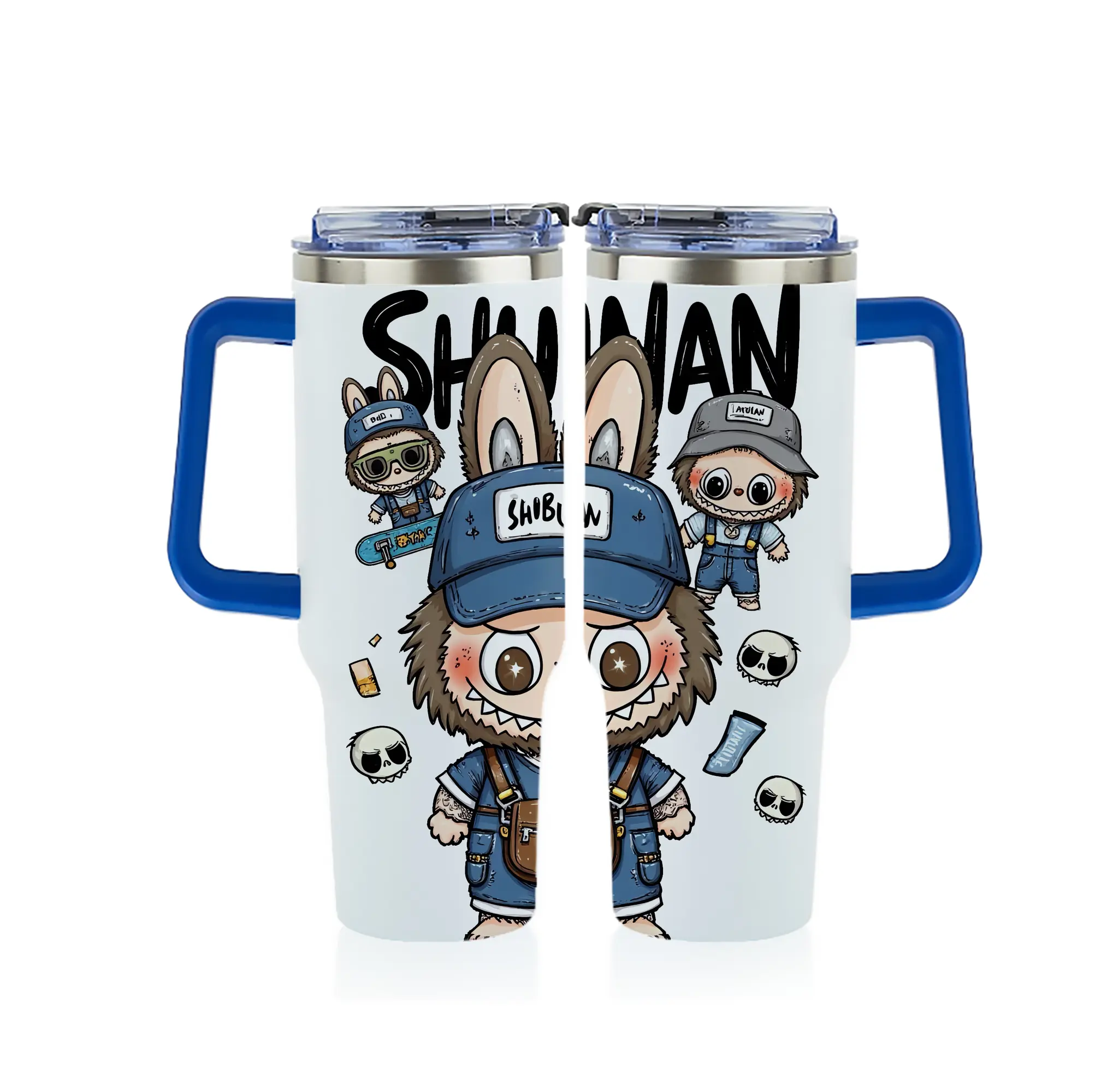 ラブブ グッズ ジモモ - 1200mL フルプリント車用タンブラー ・ 304ステンレス 内側 ・ 201ステンレス 外側 ・ 保温 保冷 ・ 通勤 ドライブ アウトドア用