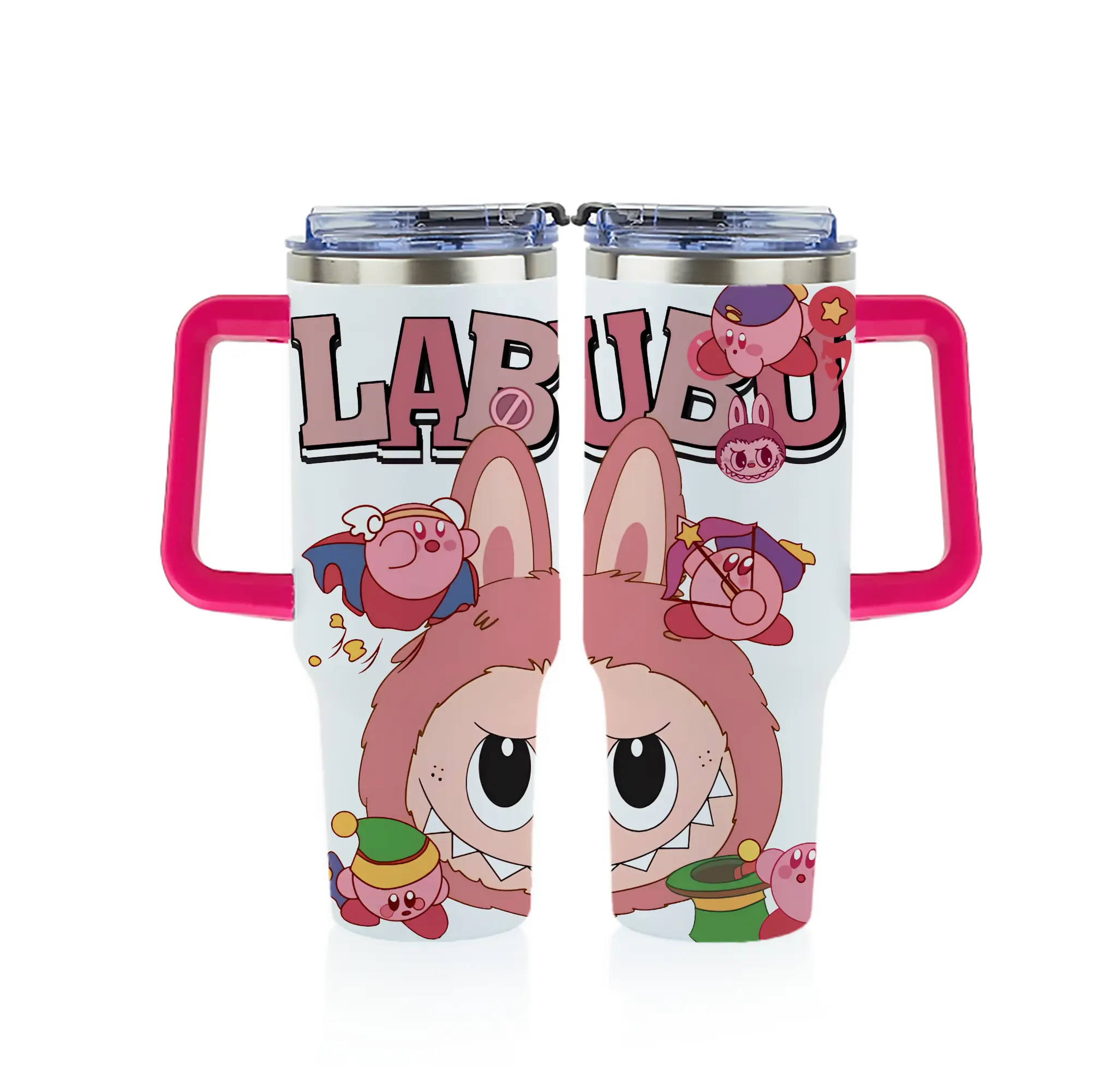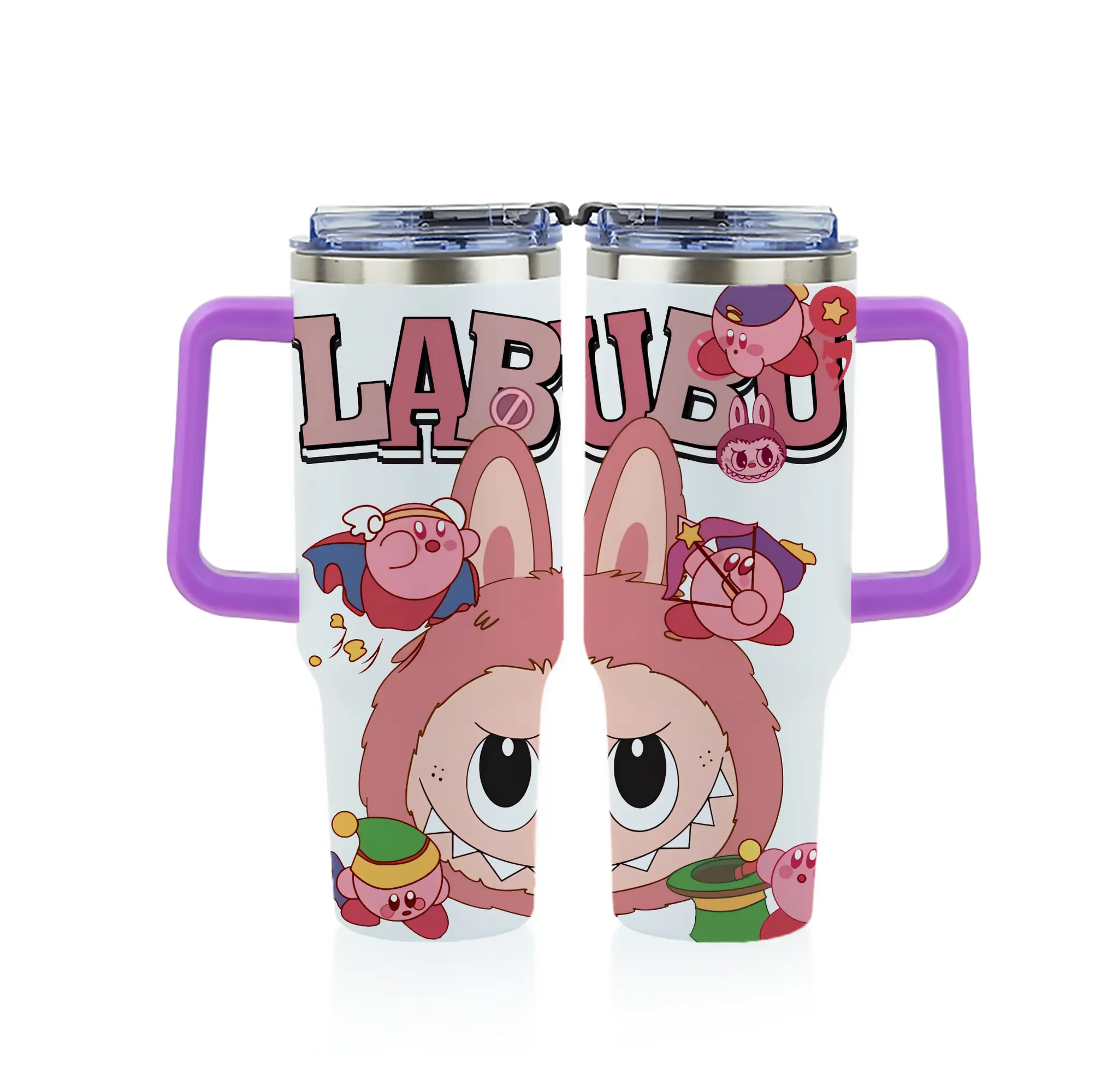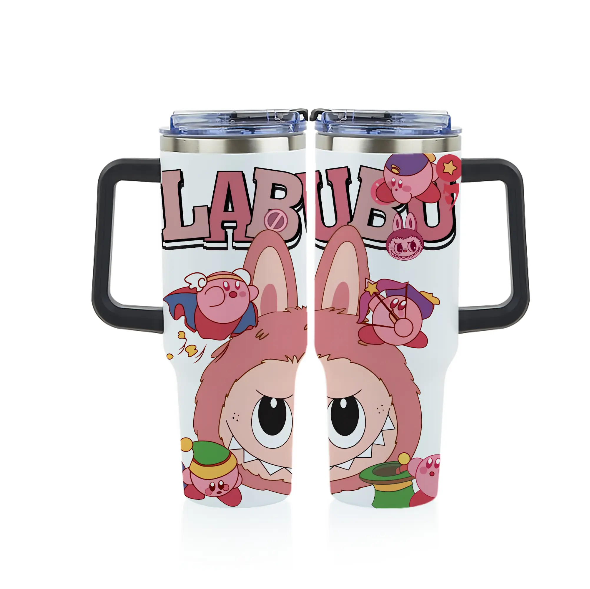 ラブブ グッズ ジモモ - 1200mL フルプリント車用タンブラー ・ 304ステンレス 内側 ・ 201ステンレス 外側 ・ 保温 保冷 ・ 通勤 ドライブ アウトドア用