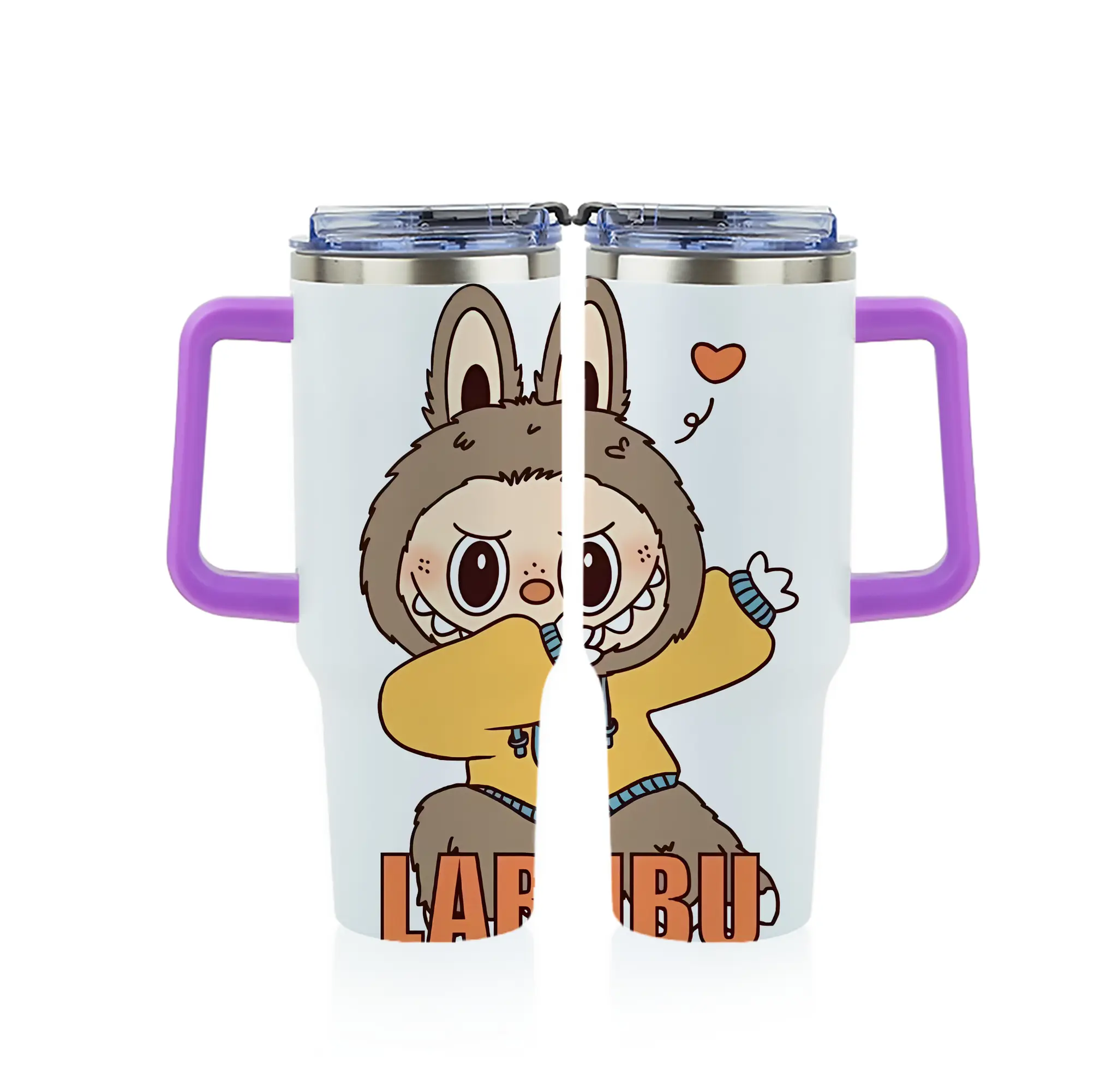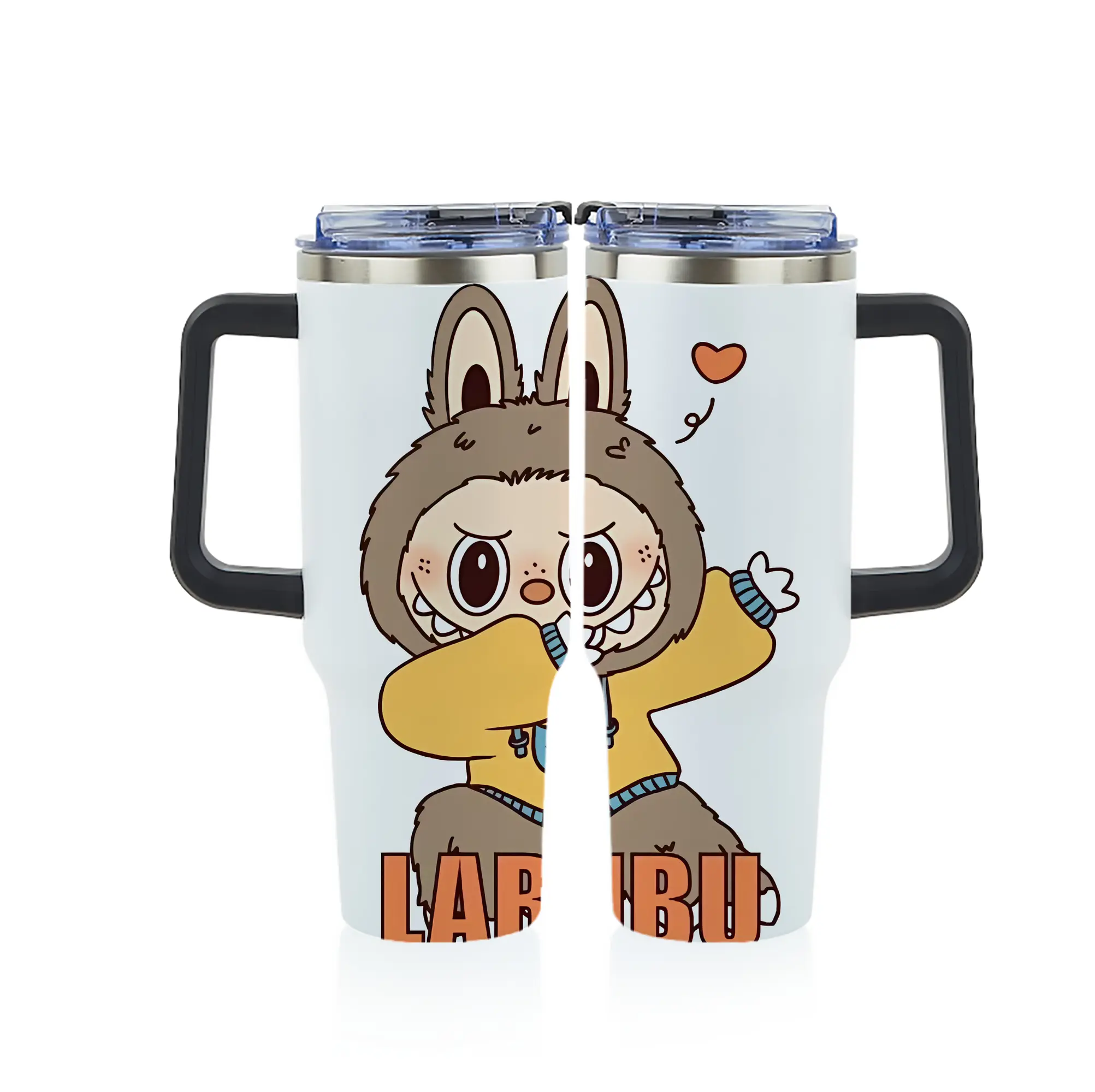 ラブブ グッズ ジモモ - 1200mL フルプリント車用タンブラー ・ 304ステンレス 内側 ・ 201ステンレス 外側 ・ 保温 保冷 ・ 通勤 ドライブ アウトドア用