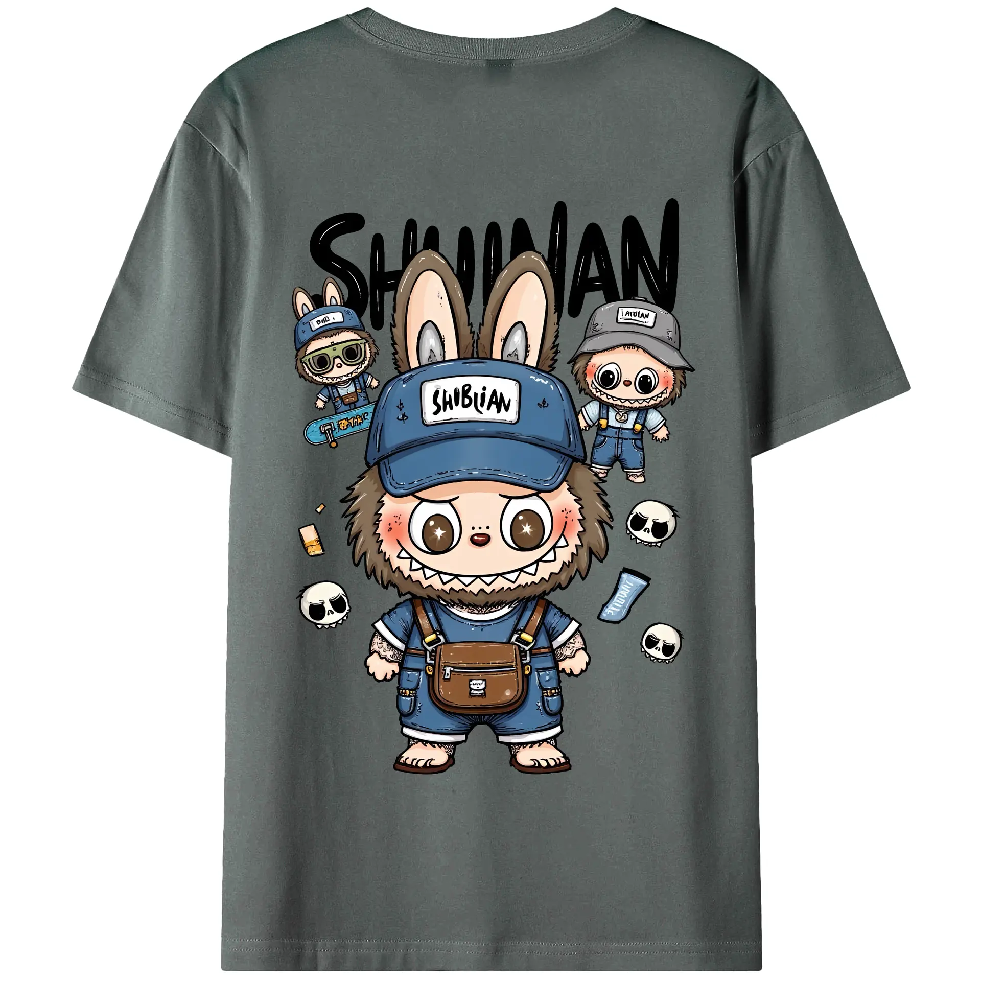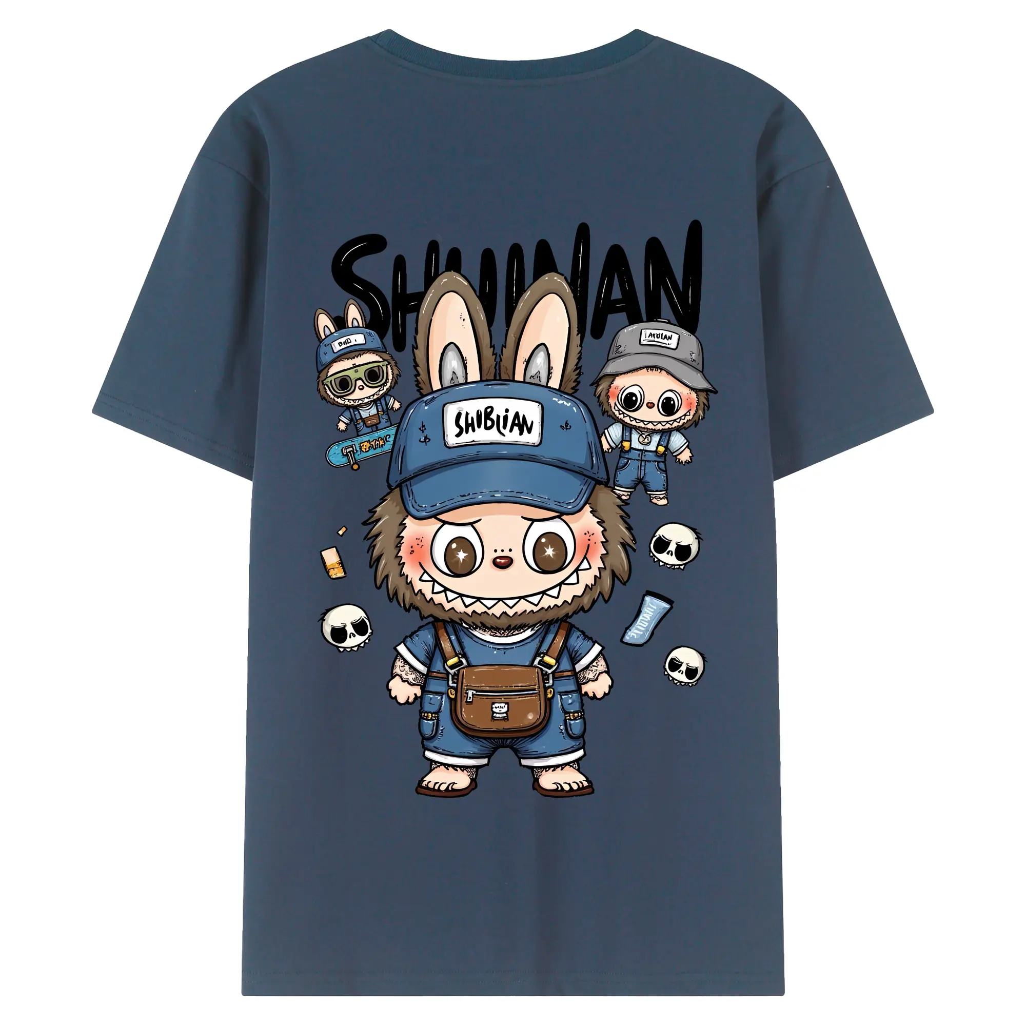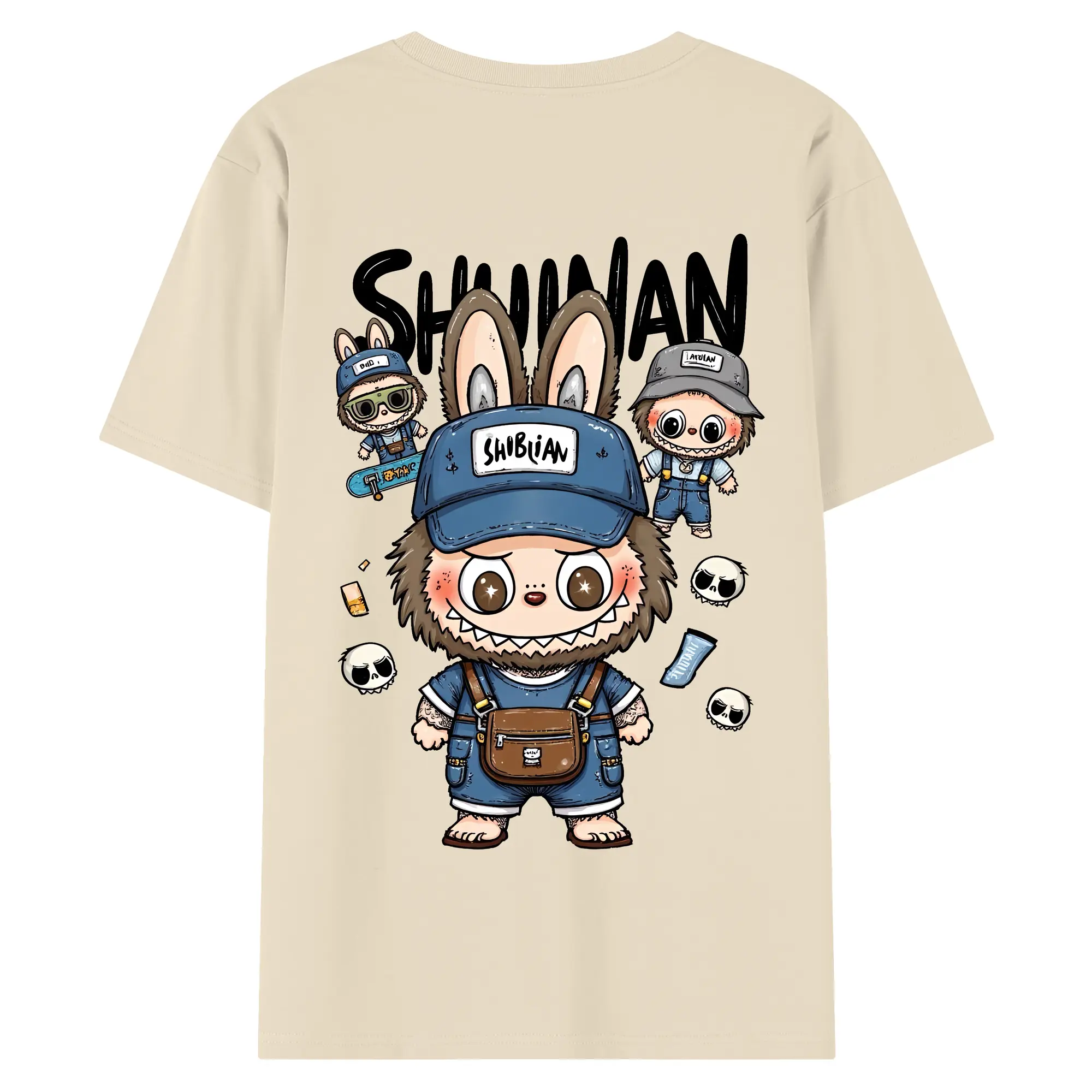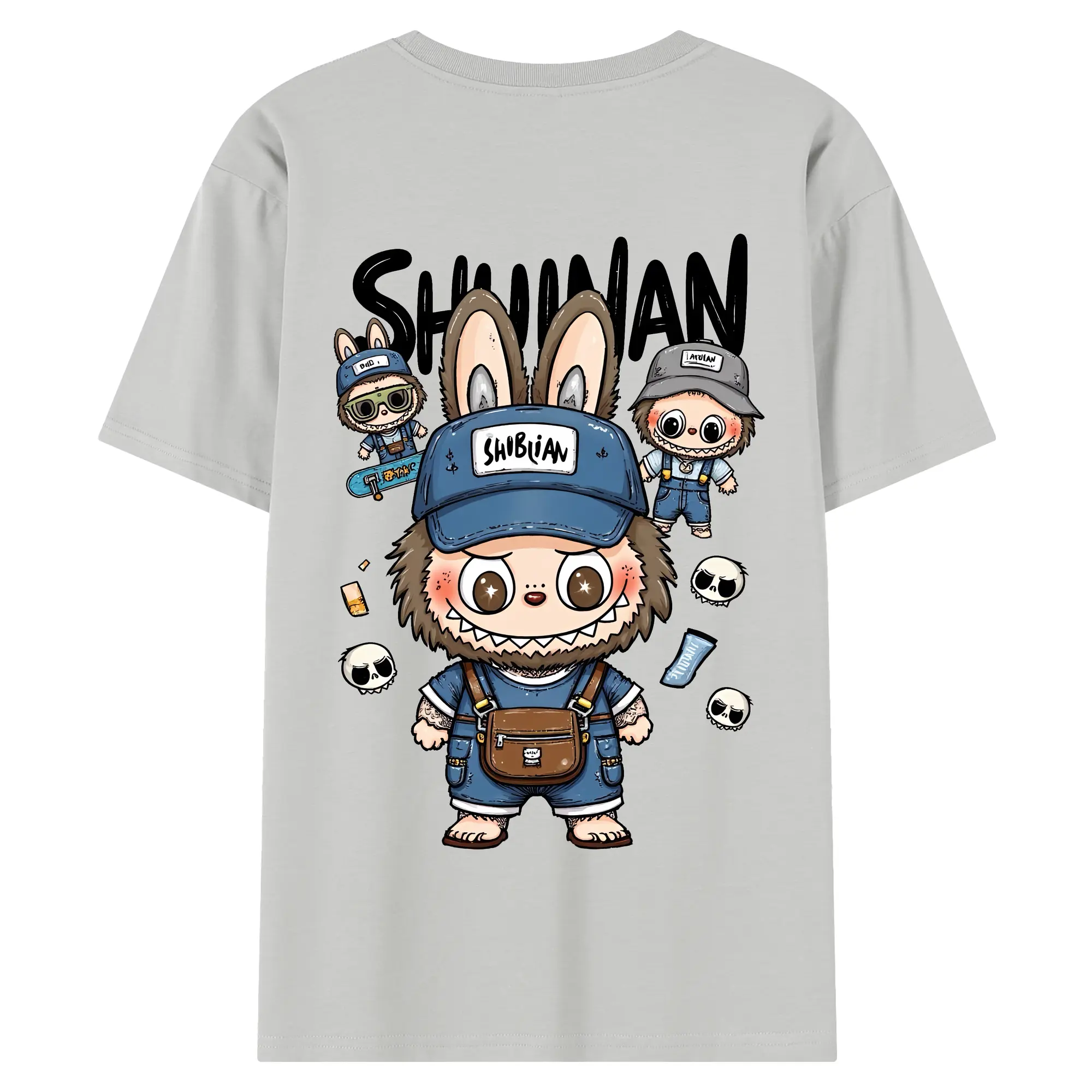 ラブブ グッズ ジモモ - 綿100% ヴィンテージ風 半袖Tシャツ ・ 背面プリント ・ 柔らか肌触り ・ 通気性 快適 ・ スポーツ カジュアル 外出用