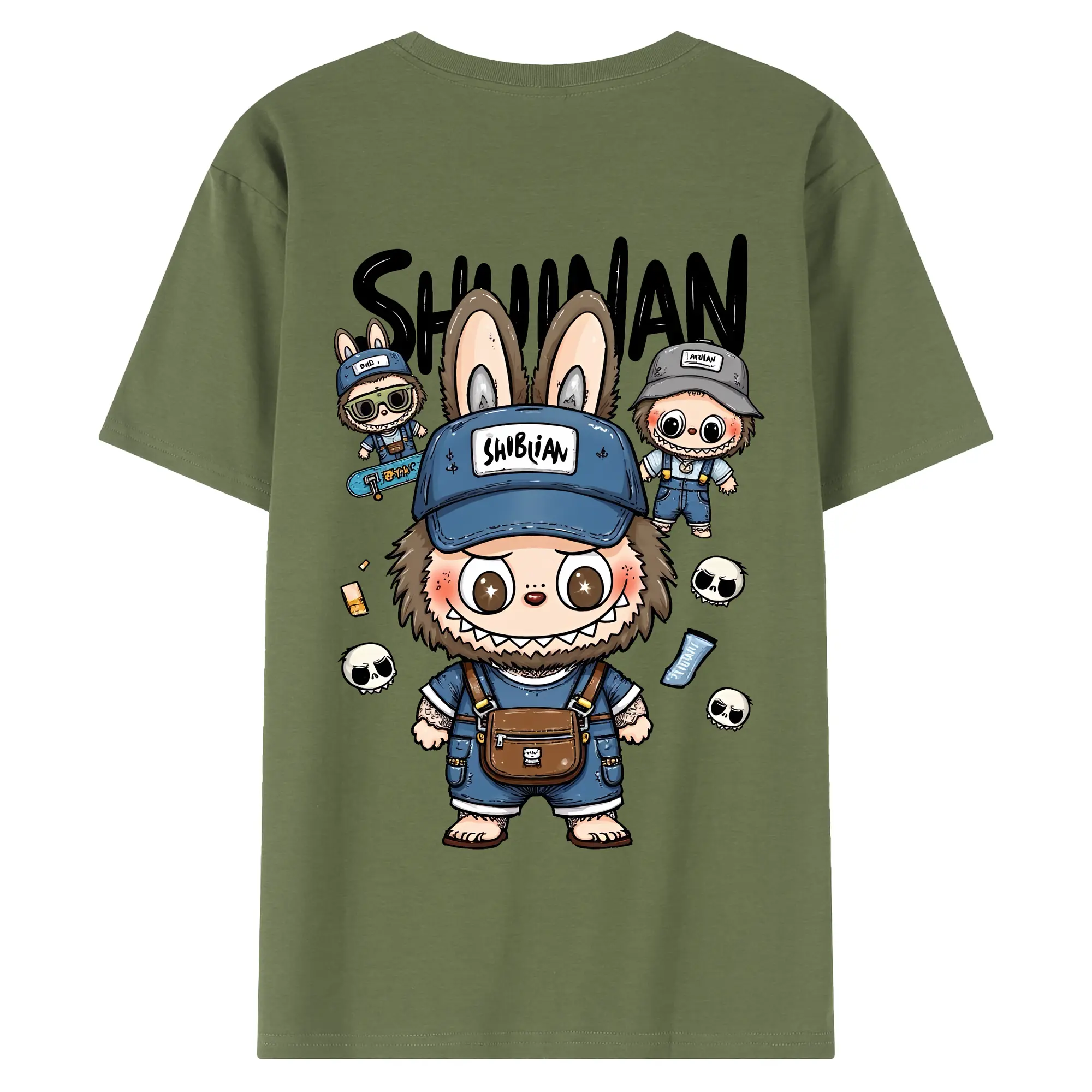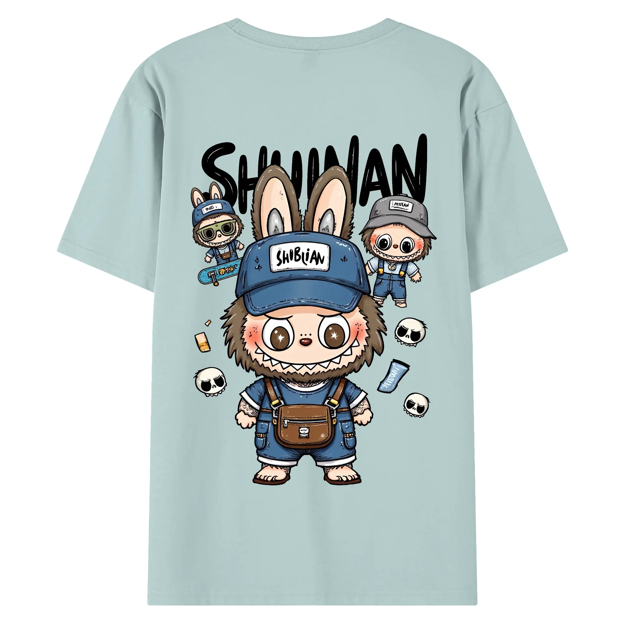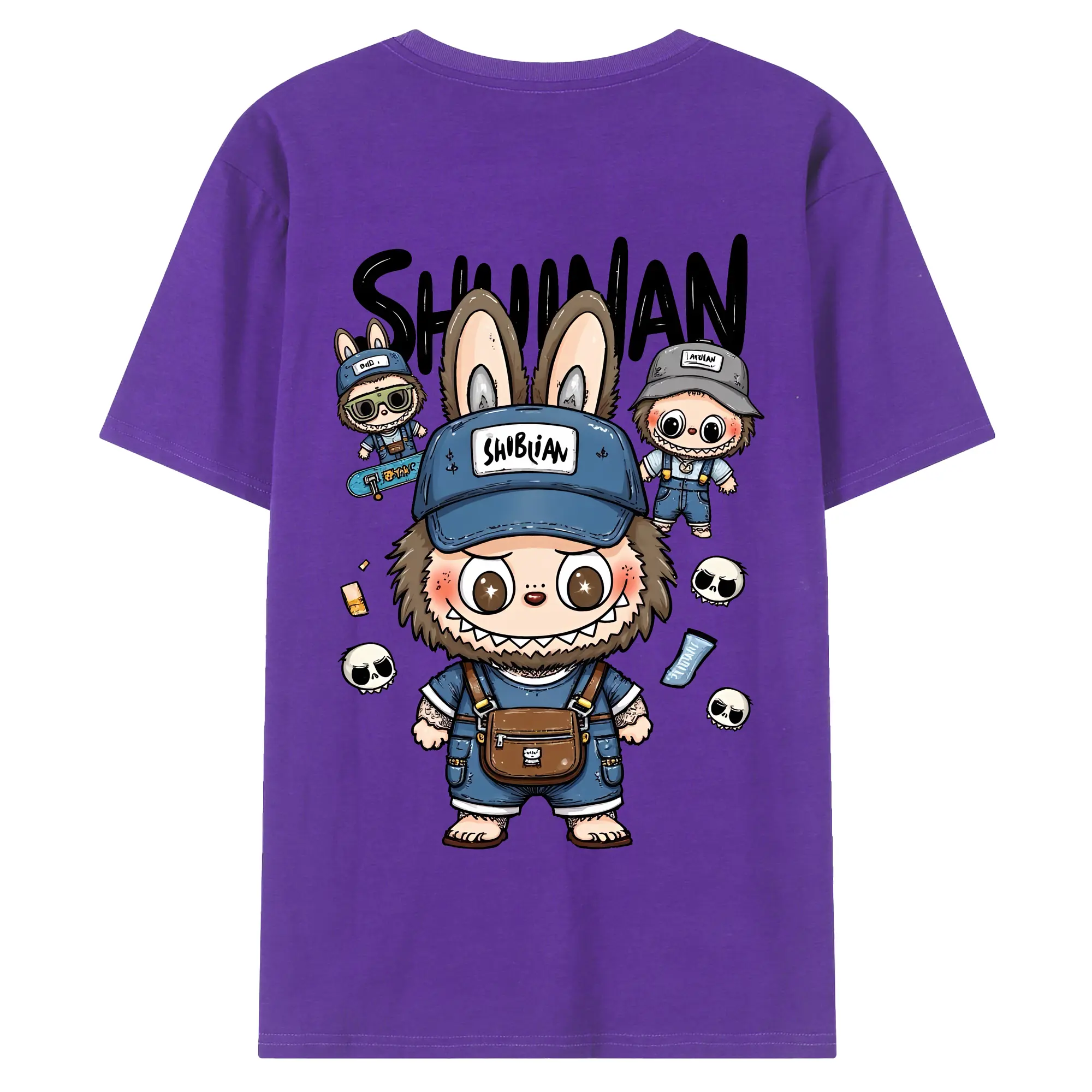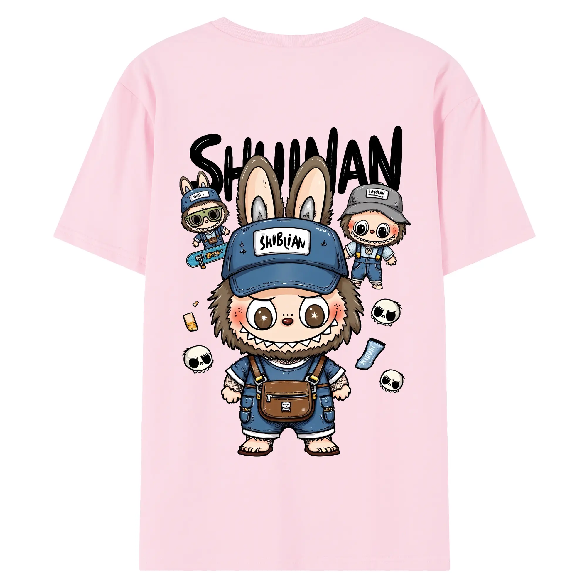 ラブブ グッズ ジモモ - 綿100% ヴィンテージ風 半袖Tシャツ ・ 背面プリント ・ 柔らか肌触り ・ 通気性 快適 ・ スポーツ カジュアル 外出用