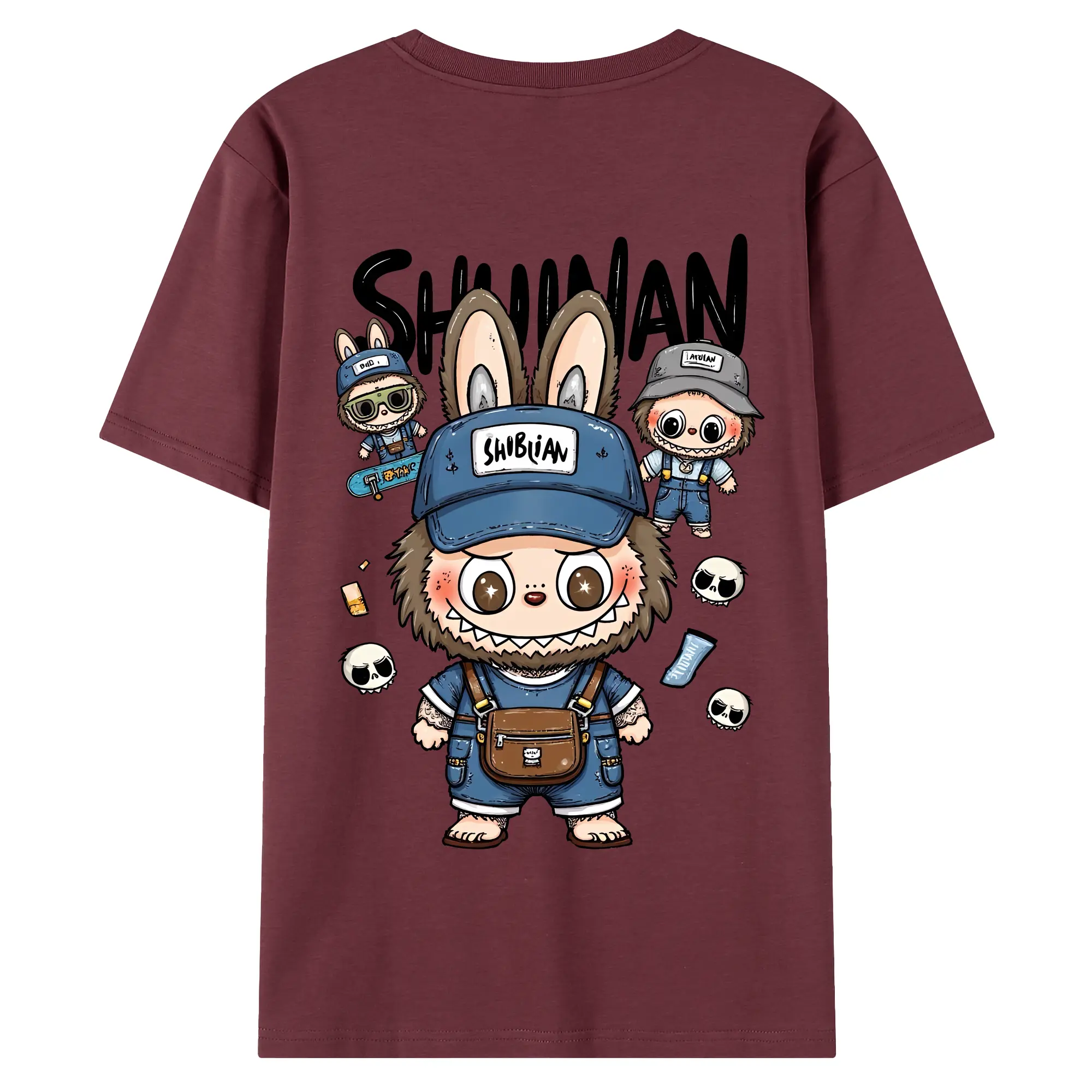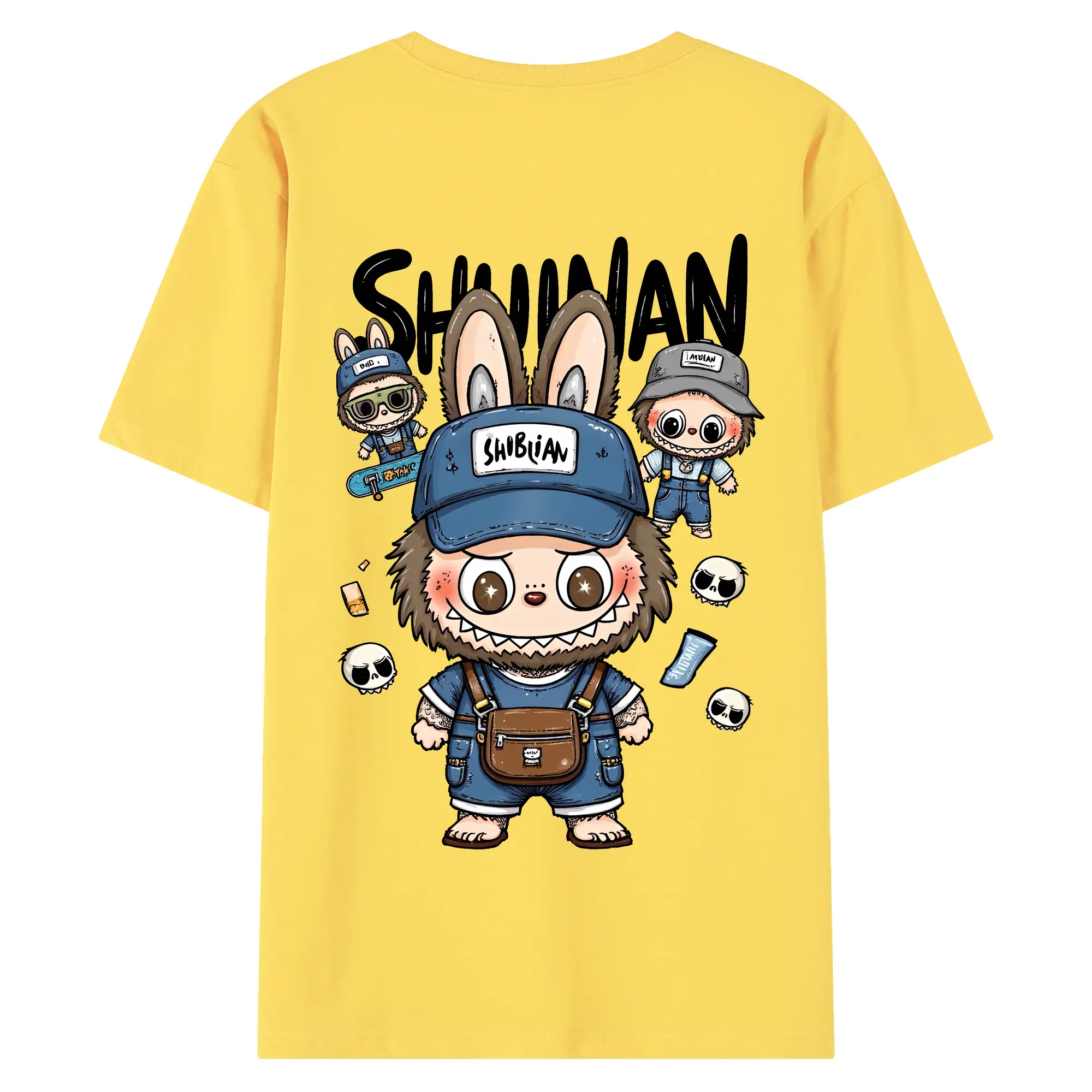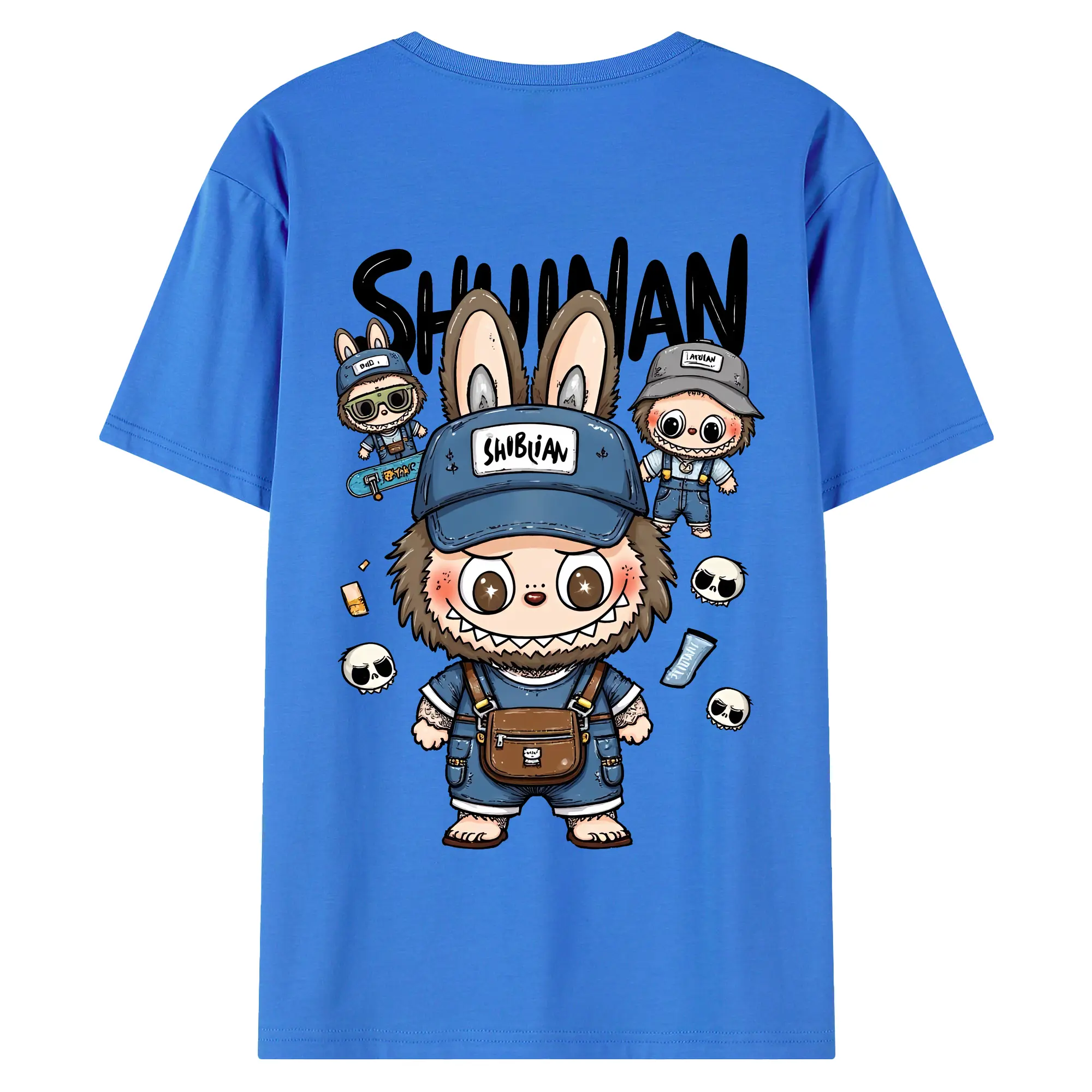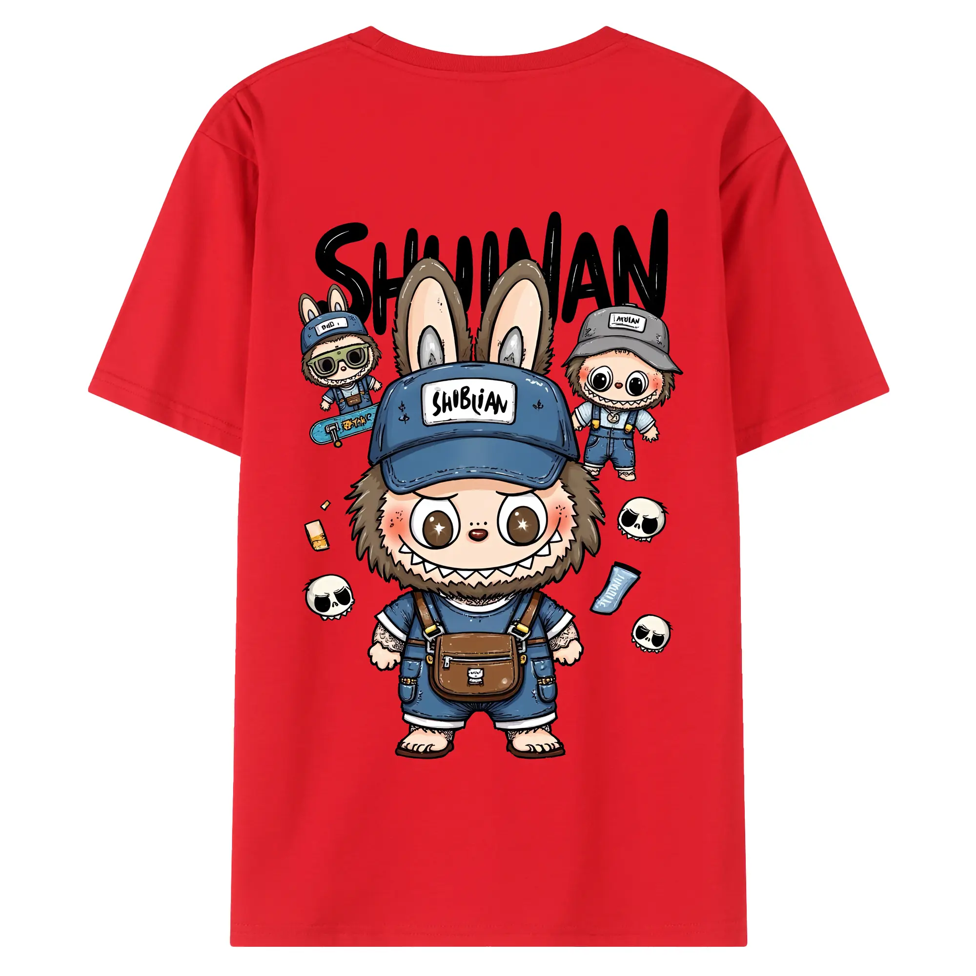 ラブブ グッズ ジモモ - 綿100% ヴィンテージ風 半袖Tシャツ ・ 背面プリント ・ 柔らか肌触り ・ 通気性 快適 ・ スポーツ カジュアル 外出用