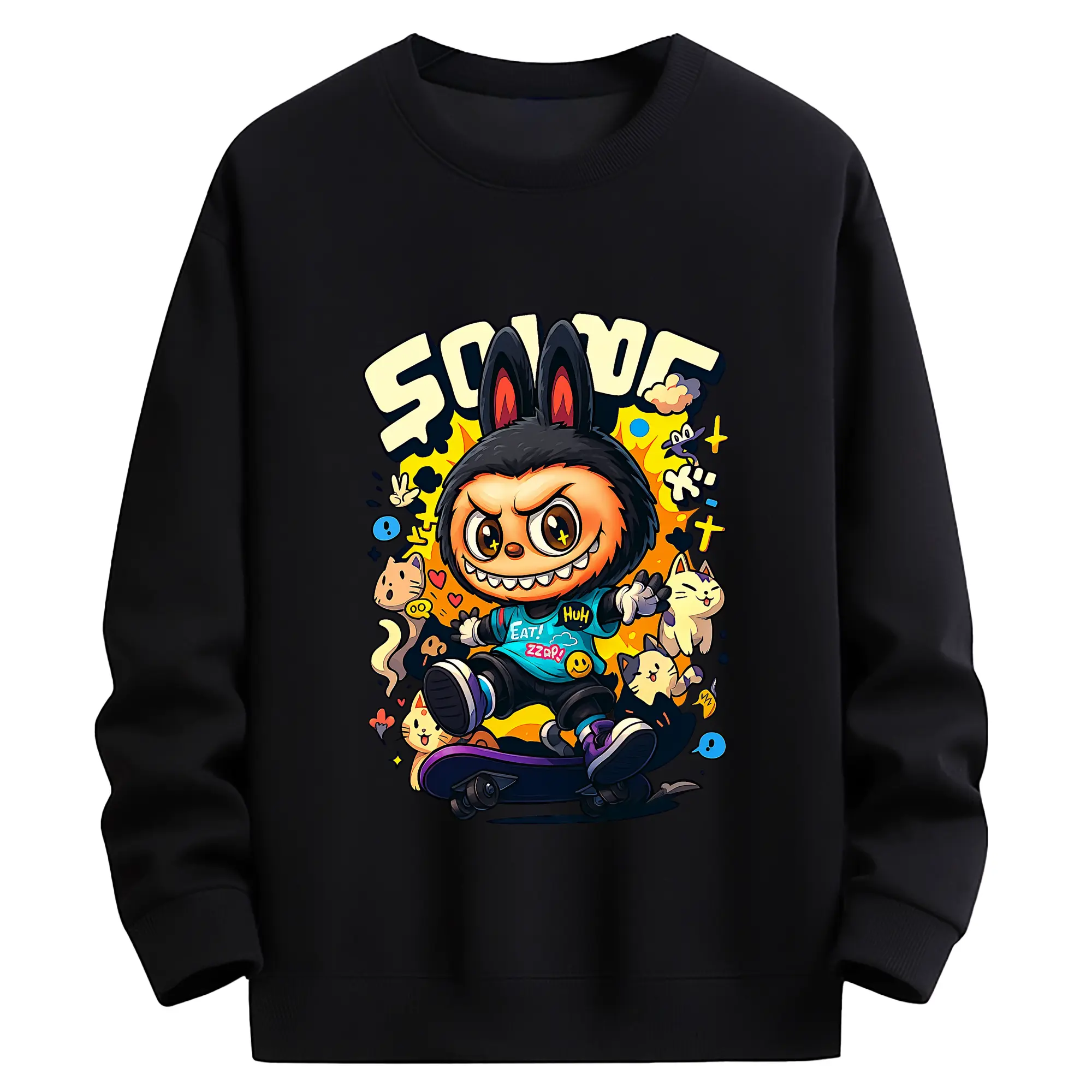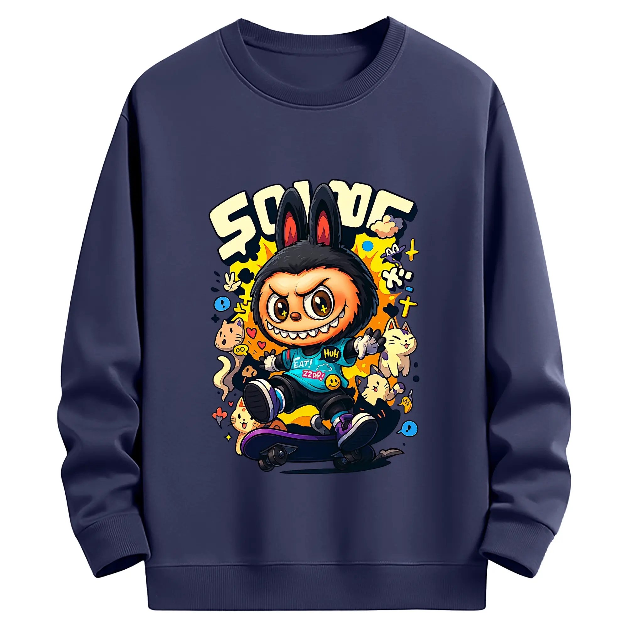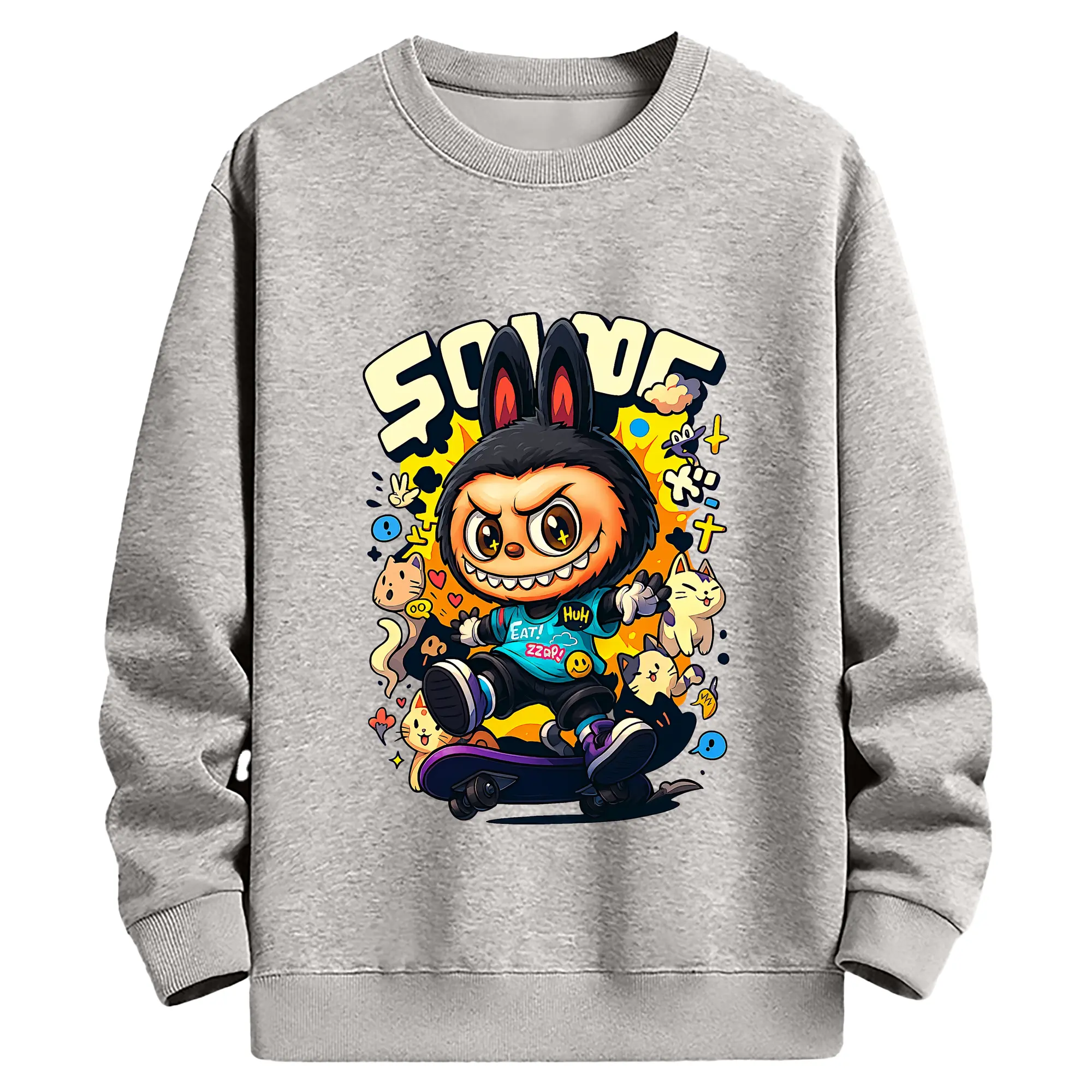 ラブブ グッズ ジモモ - キッズ クルーネックスウェットシャツ ・ フロントプリント ・ 綿80% ポリエステル20% ・ 快適 通学 スポーツ 日常使い お散歩用
