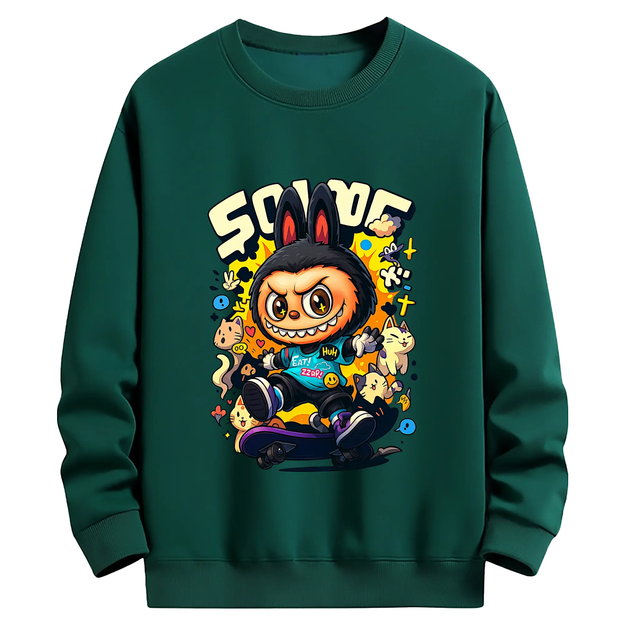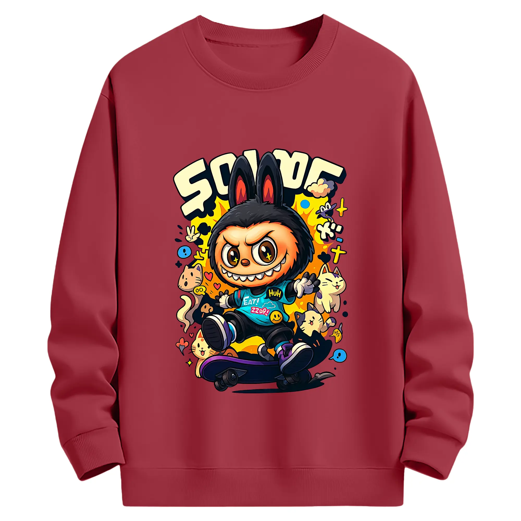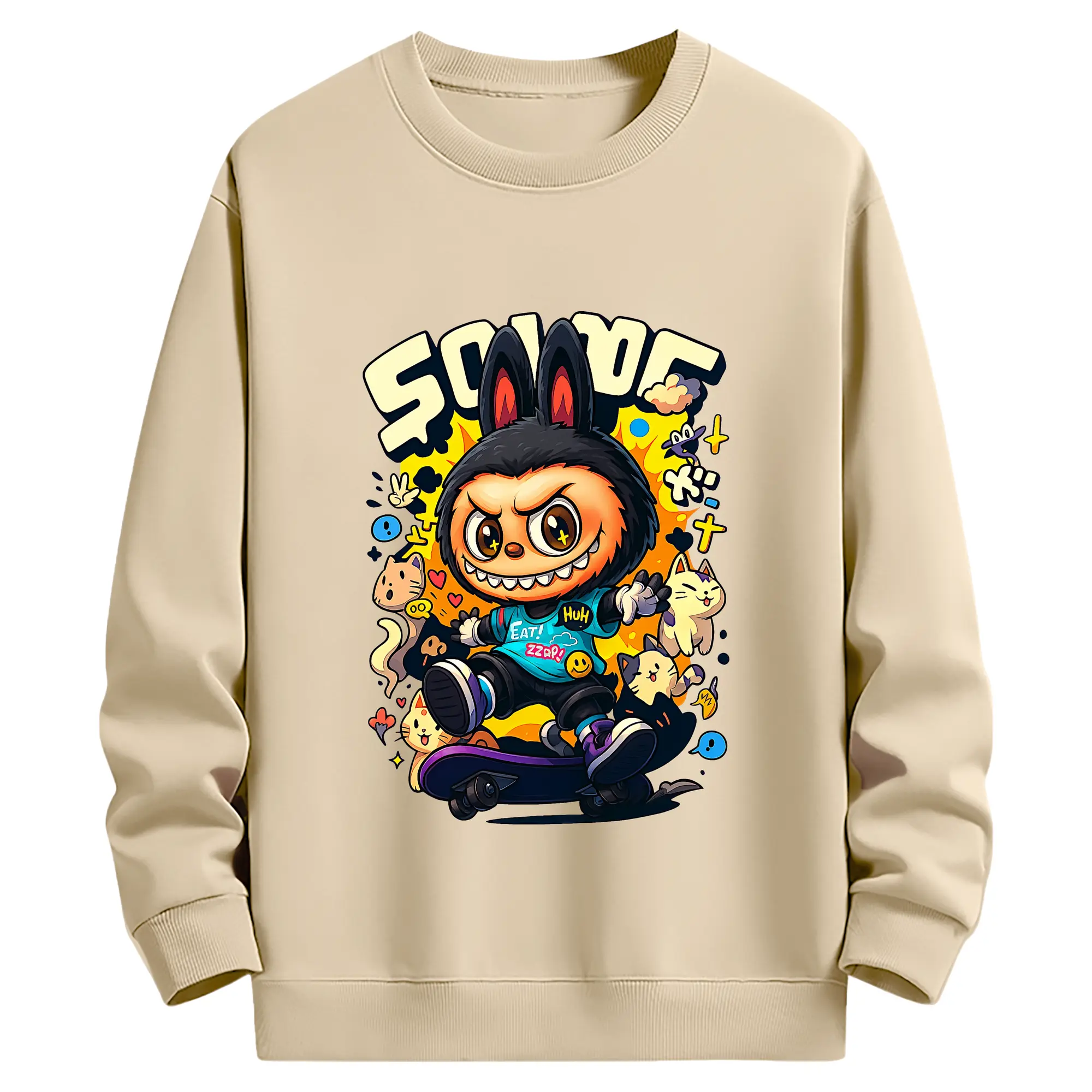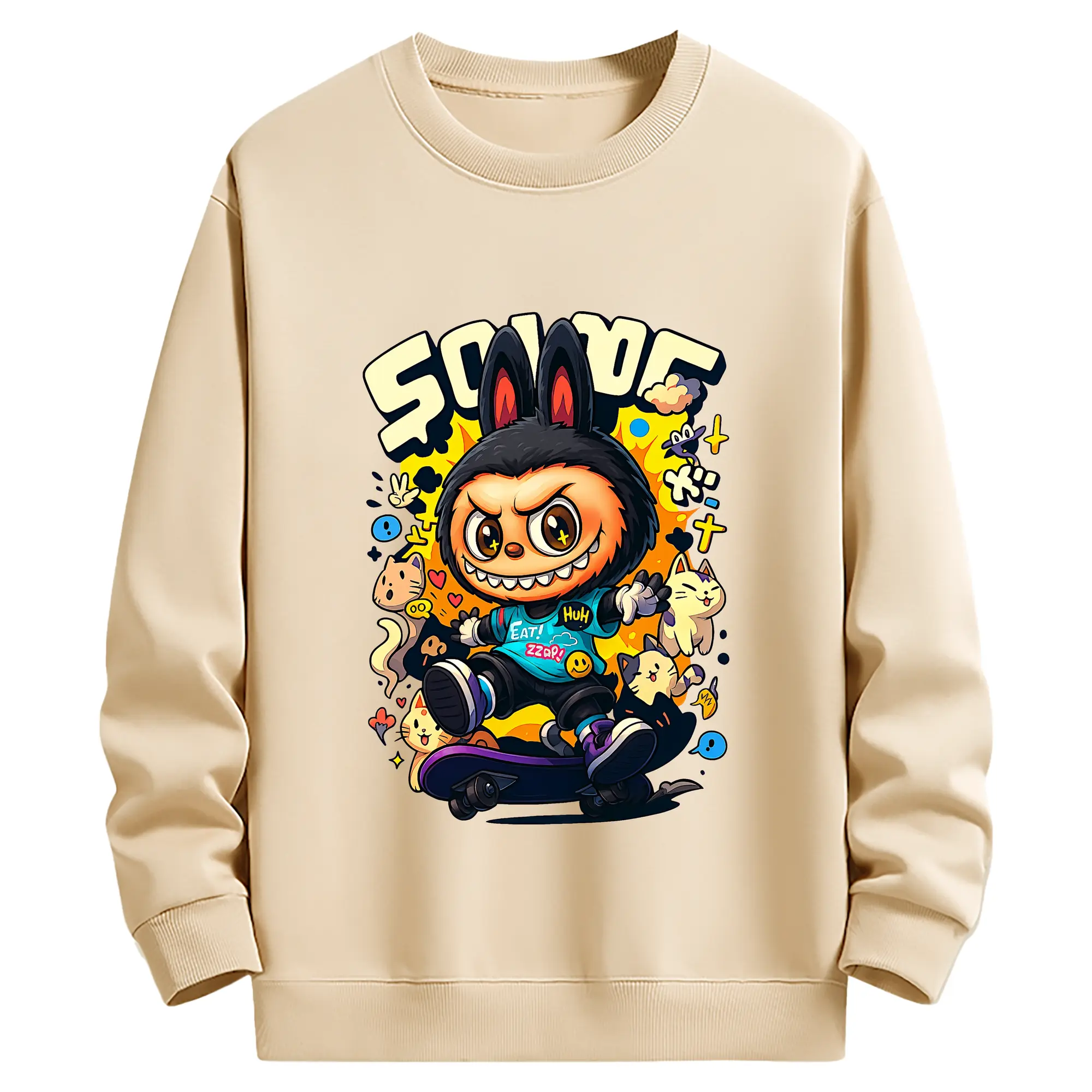 ラブブ グッズ ジモモ - キッズ クルーネックスウェットシャツ ・ フロントプリント ・ 綿80% ポリエステル20% ・ 快適 通学 スポーツ 日常使い お散歩用