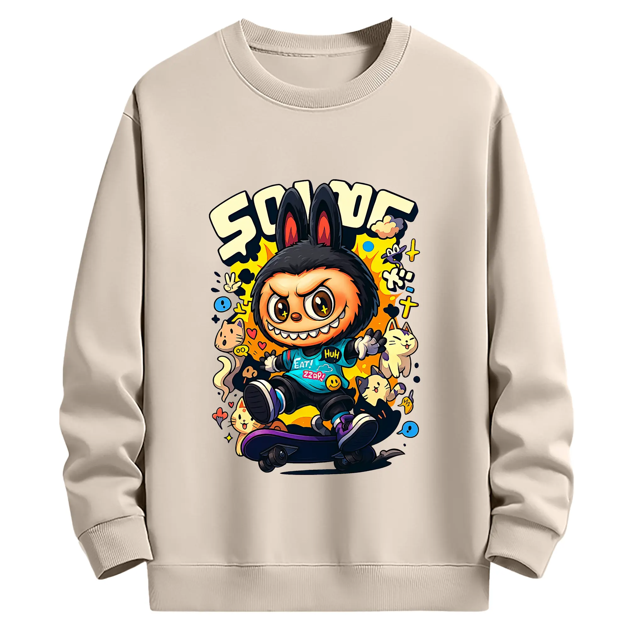 ラブブ グッズ ジモモ - 薄手 クルーネック スウェット 裏毛260g · ポリエステル 春秋向け カジュアル 男女兼用 · トレーナー デイリー スポーツ 散歩に最適