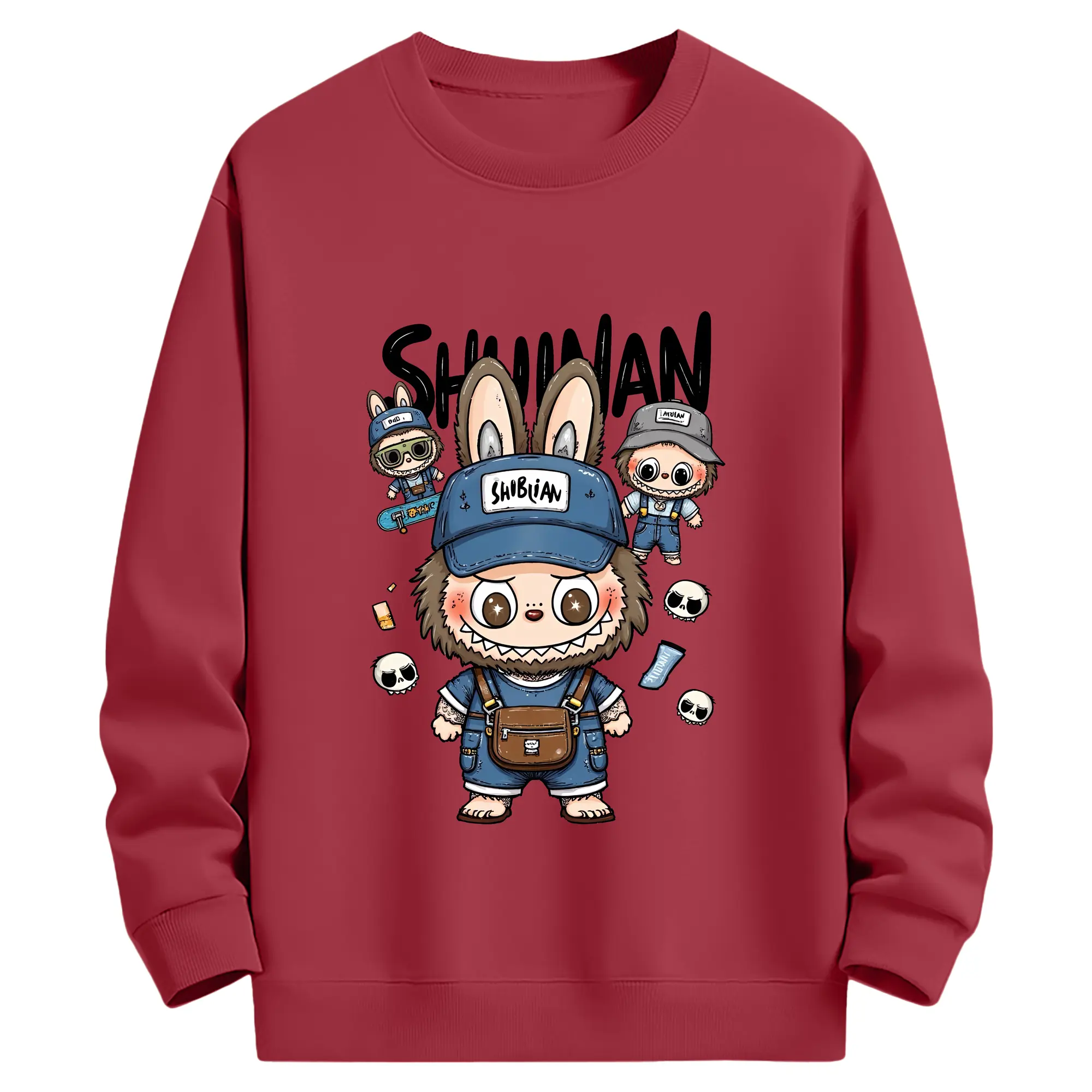 ラブブ グッズ ジモモ - キッズ クルーネックスウェットシャツ ・ フロントプリント ・ 綿80% ポリエステル20% ・ 快適 通学 スポーツ 日常使い お散歩用