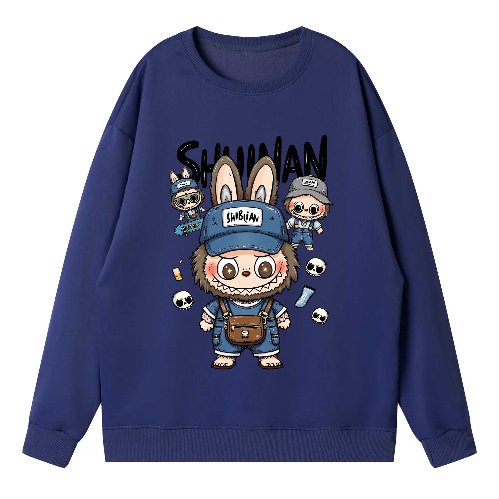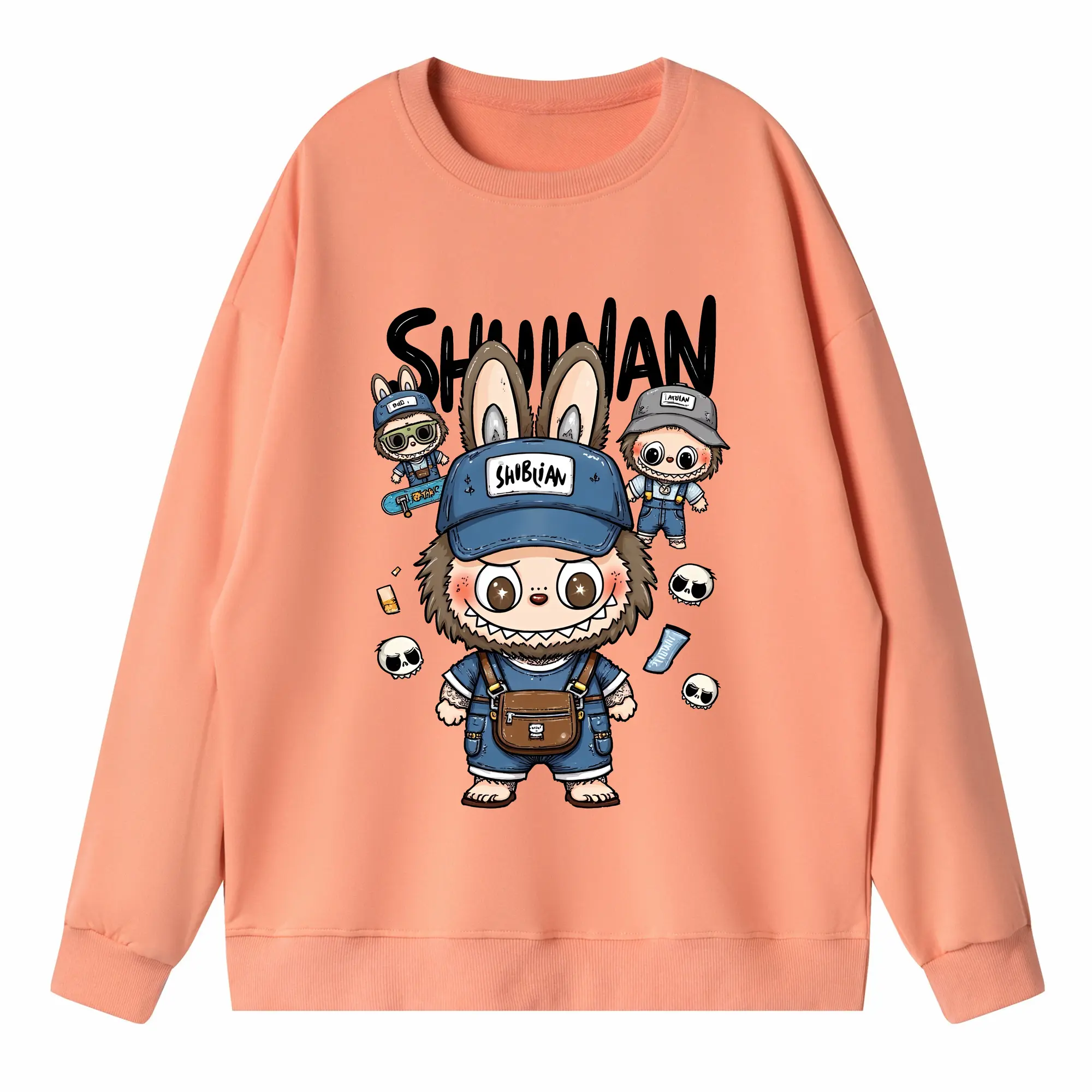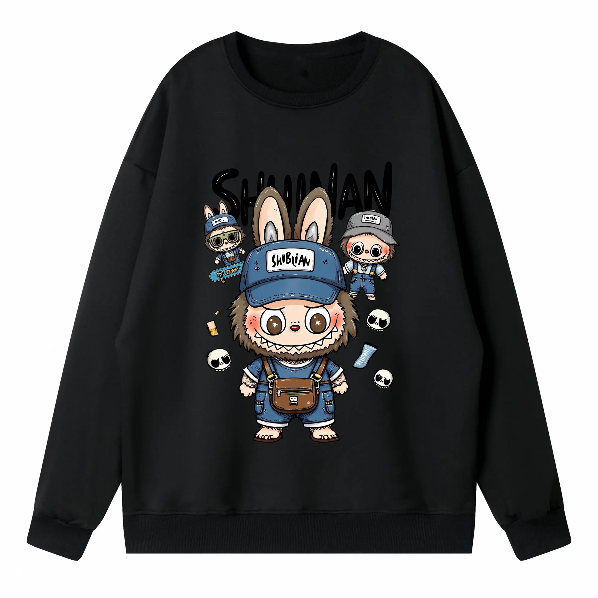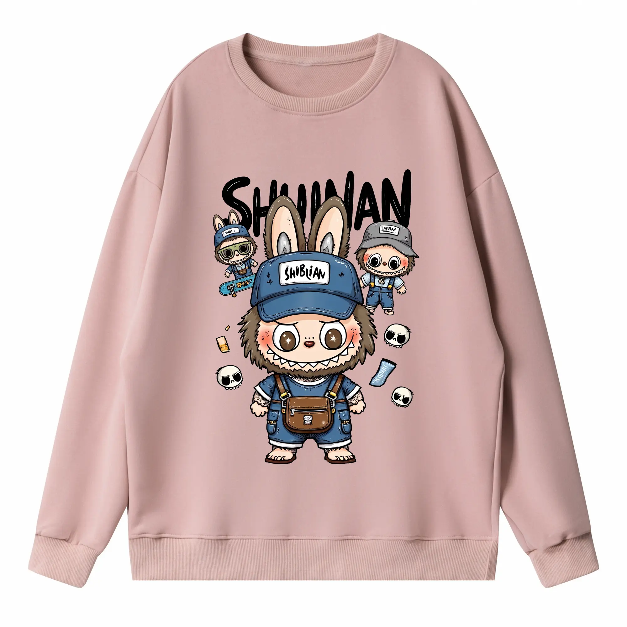 ラブブ グッズ ジモモ - 高品質 クルーネック スウェット ・ コットン59% ポリエステル41% ・ ユニセックス 長袖 トレーナー ・ カジュアル デイリー スポーツ 散歩用